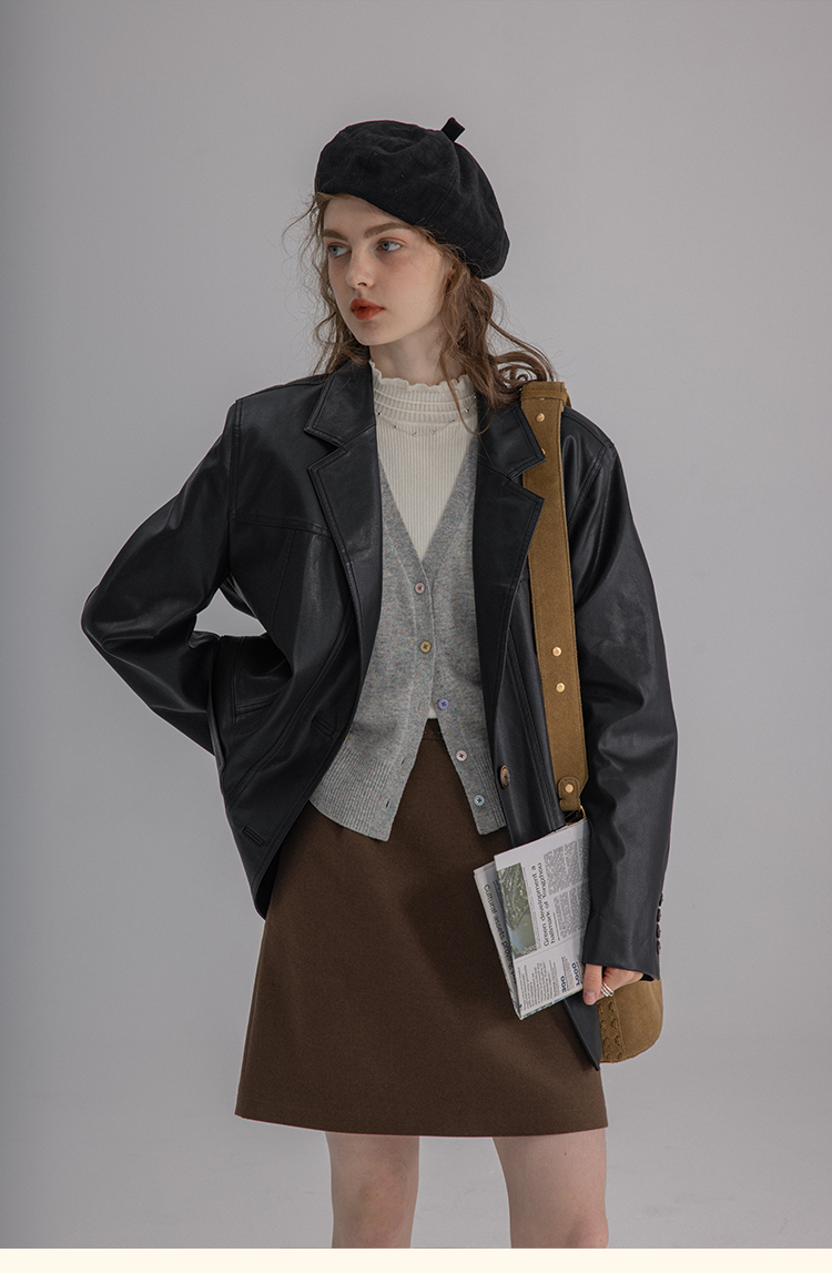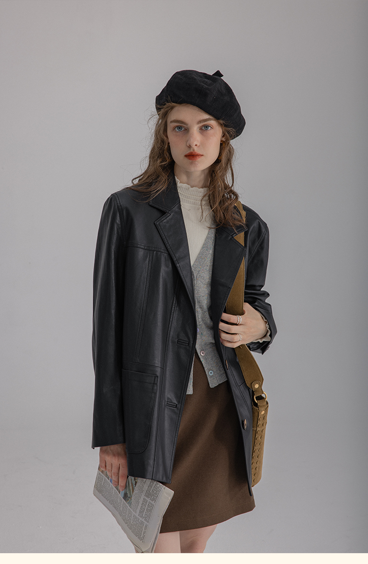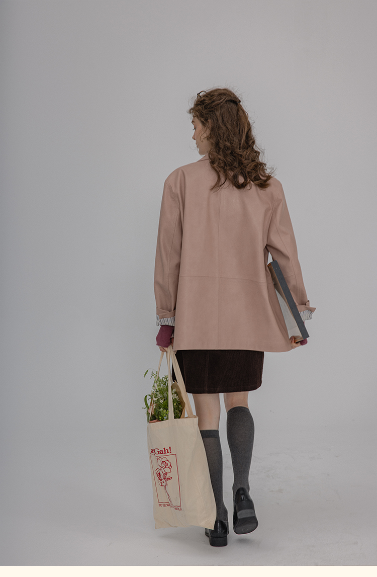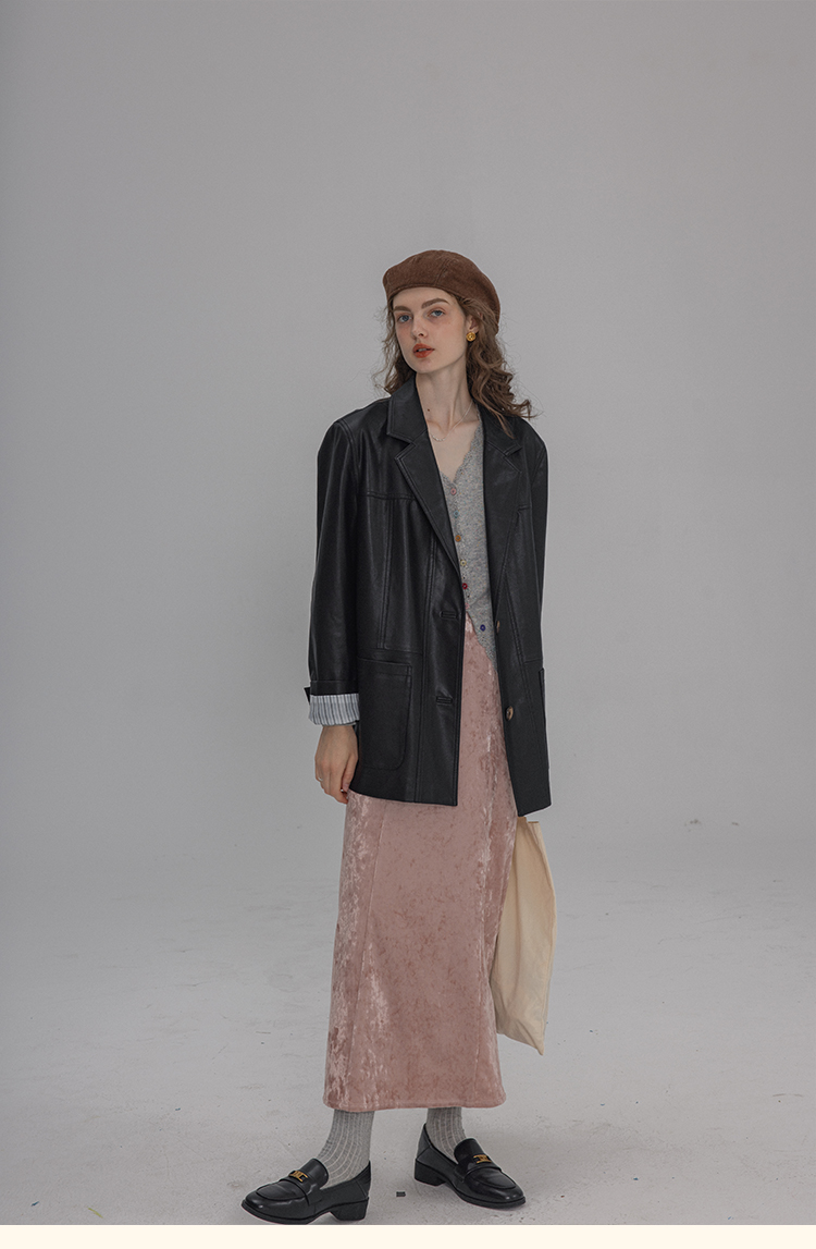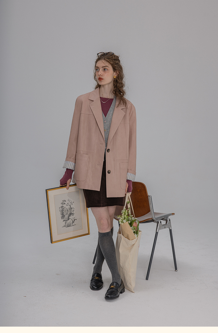 Dailyart “Black Pink-B” Matte Texture Suit Collar Eco-Friendly Leather Jacket