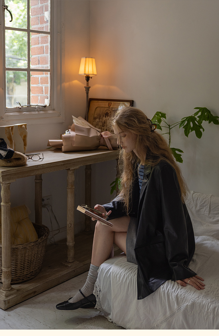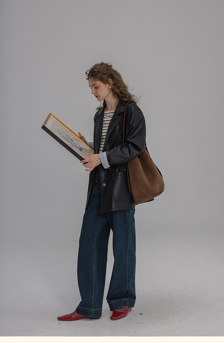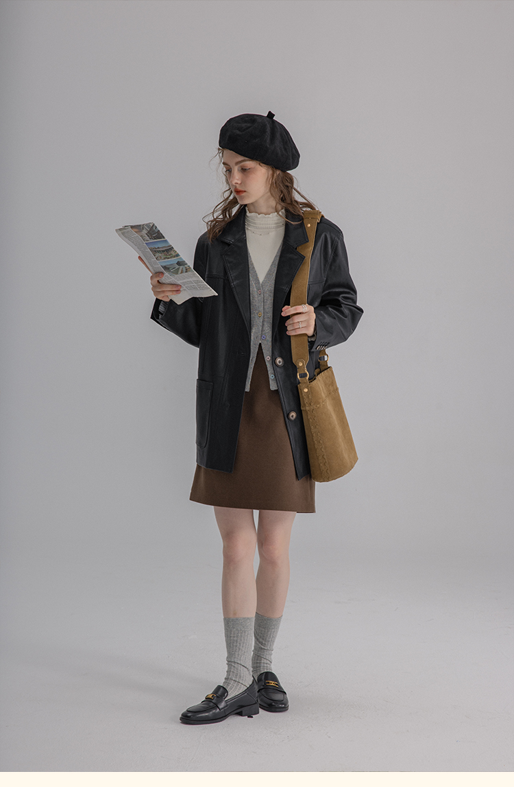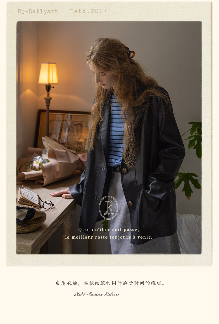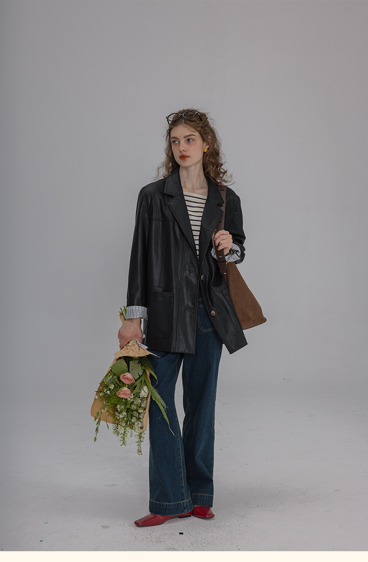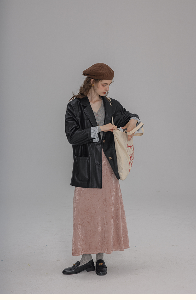 Dailyart “Black Pink-B” Matte Texture Suit Collar Eco-Friendly Leather Jacket