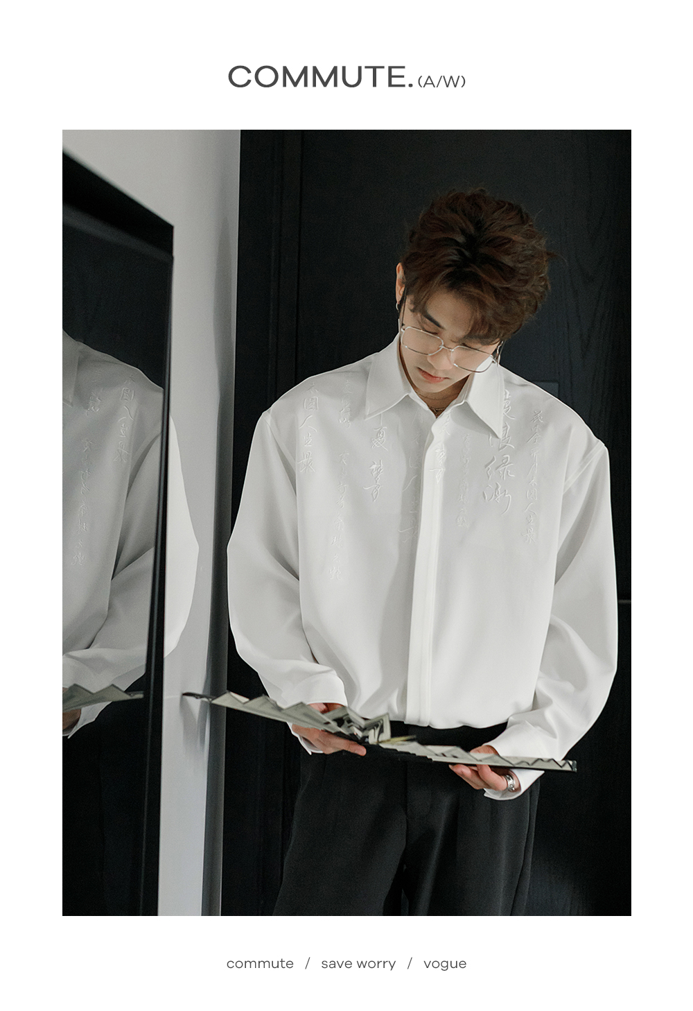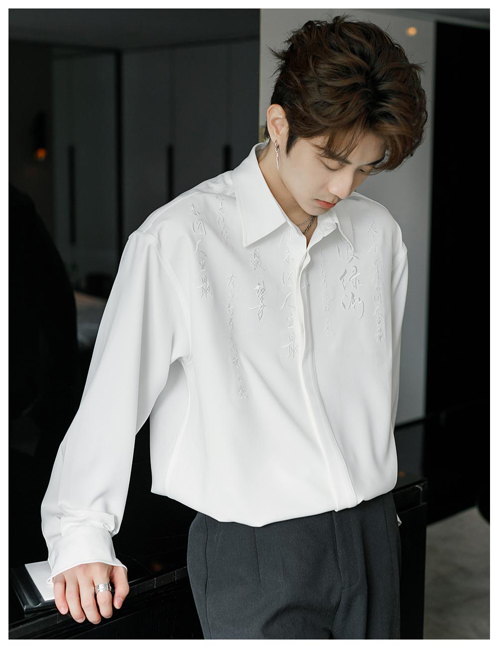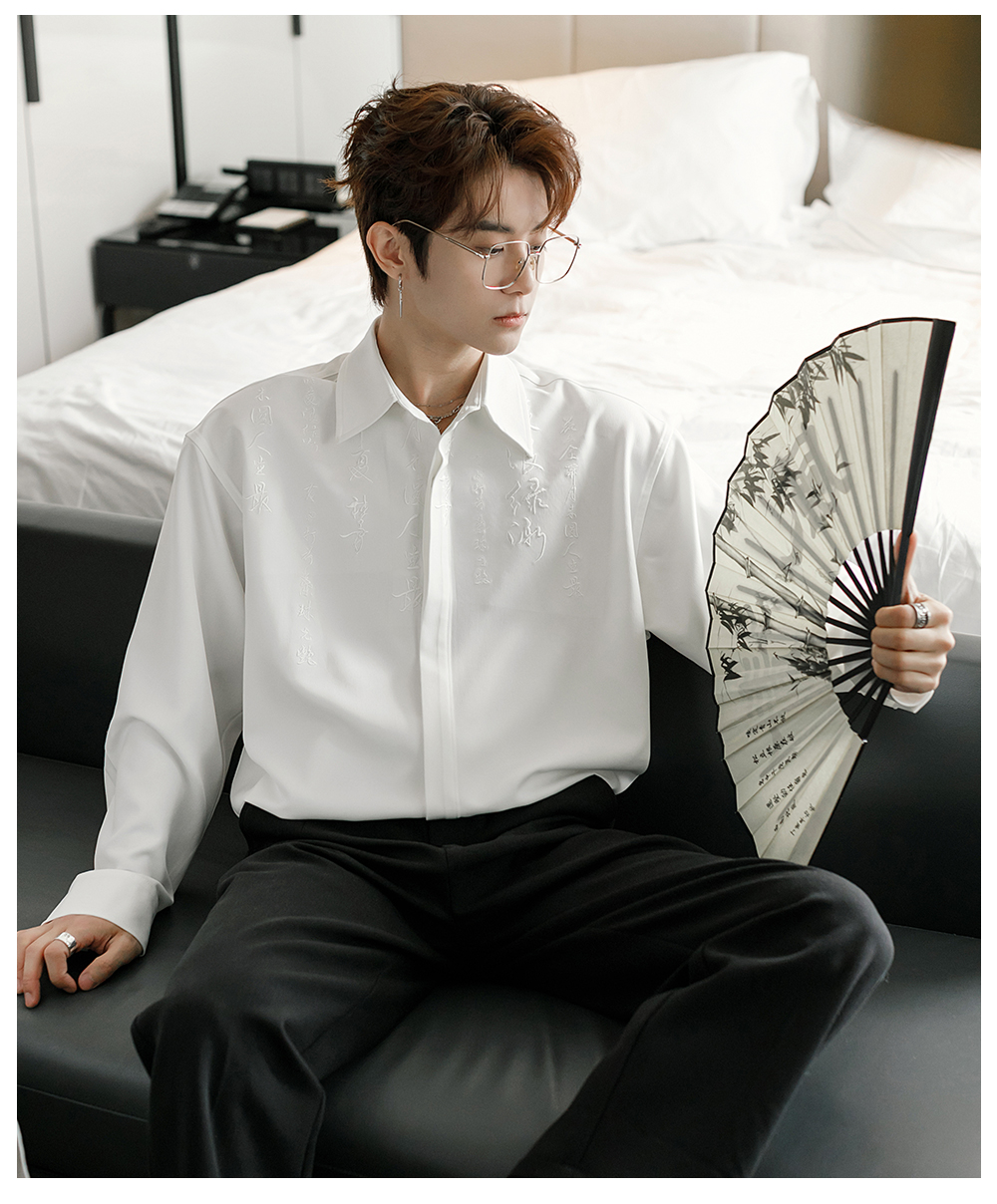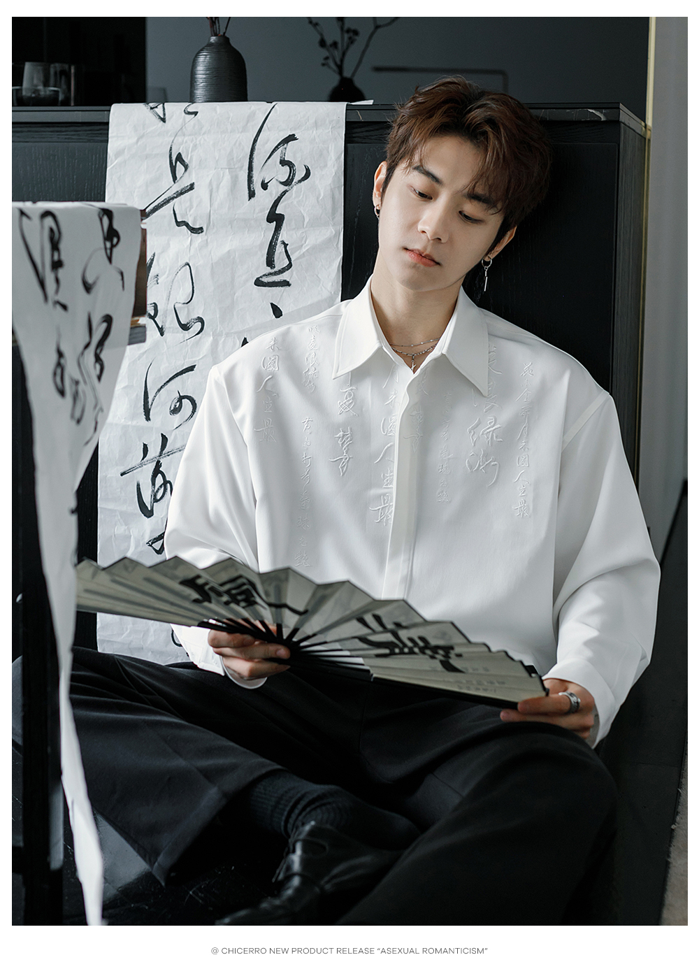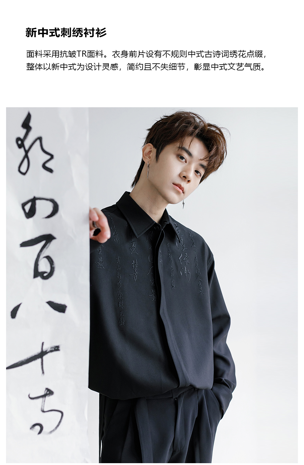 Chicerro Sicilian Men's Spring Clothing, Men's National Style New Chinese Style Men's Clothing, Embroidered Design Black Shirt with Long Sleeves