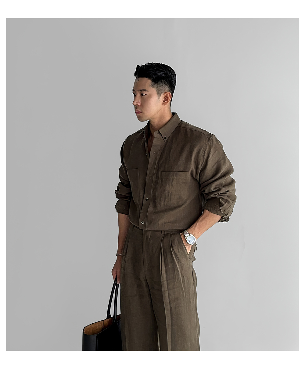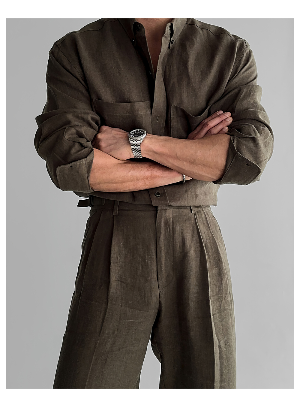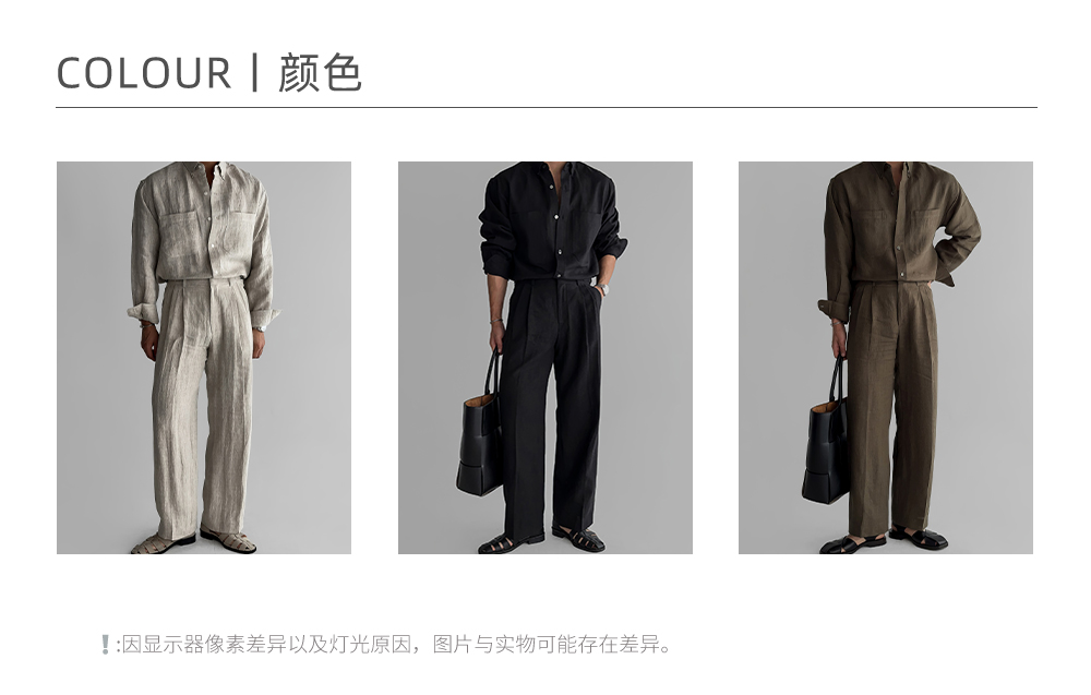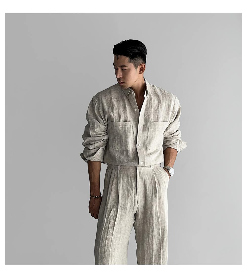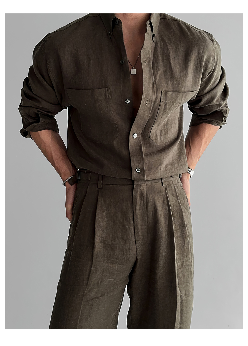 Black Linen Long-Sleeved Sun Protection Shirt Suit for Men, Autumn Korean Style, Lightweight and Breathable Shirt, Straight-Leg Casual Trousers