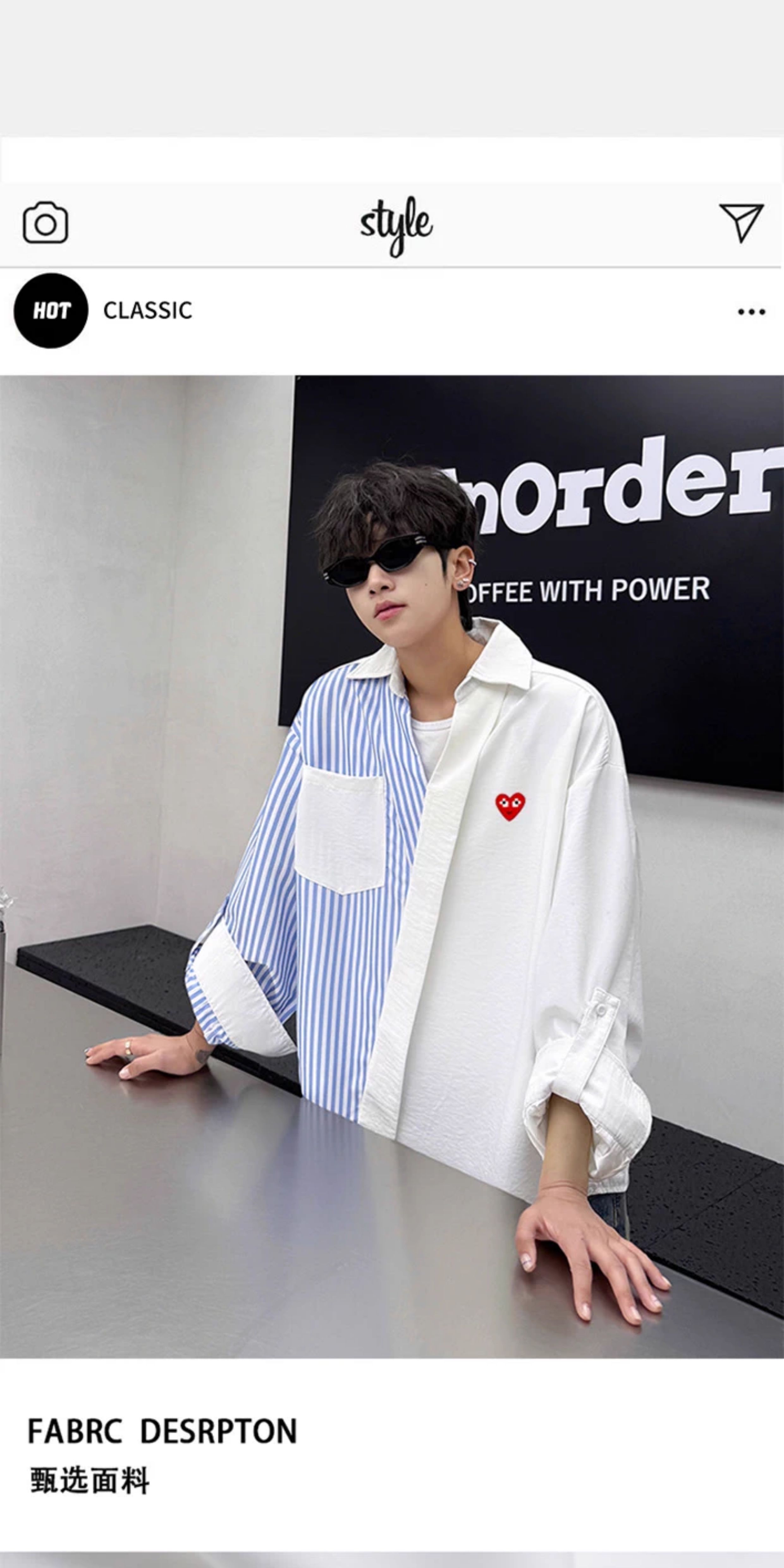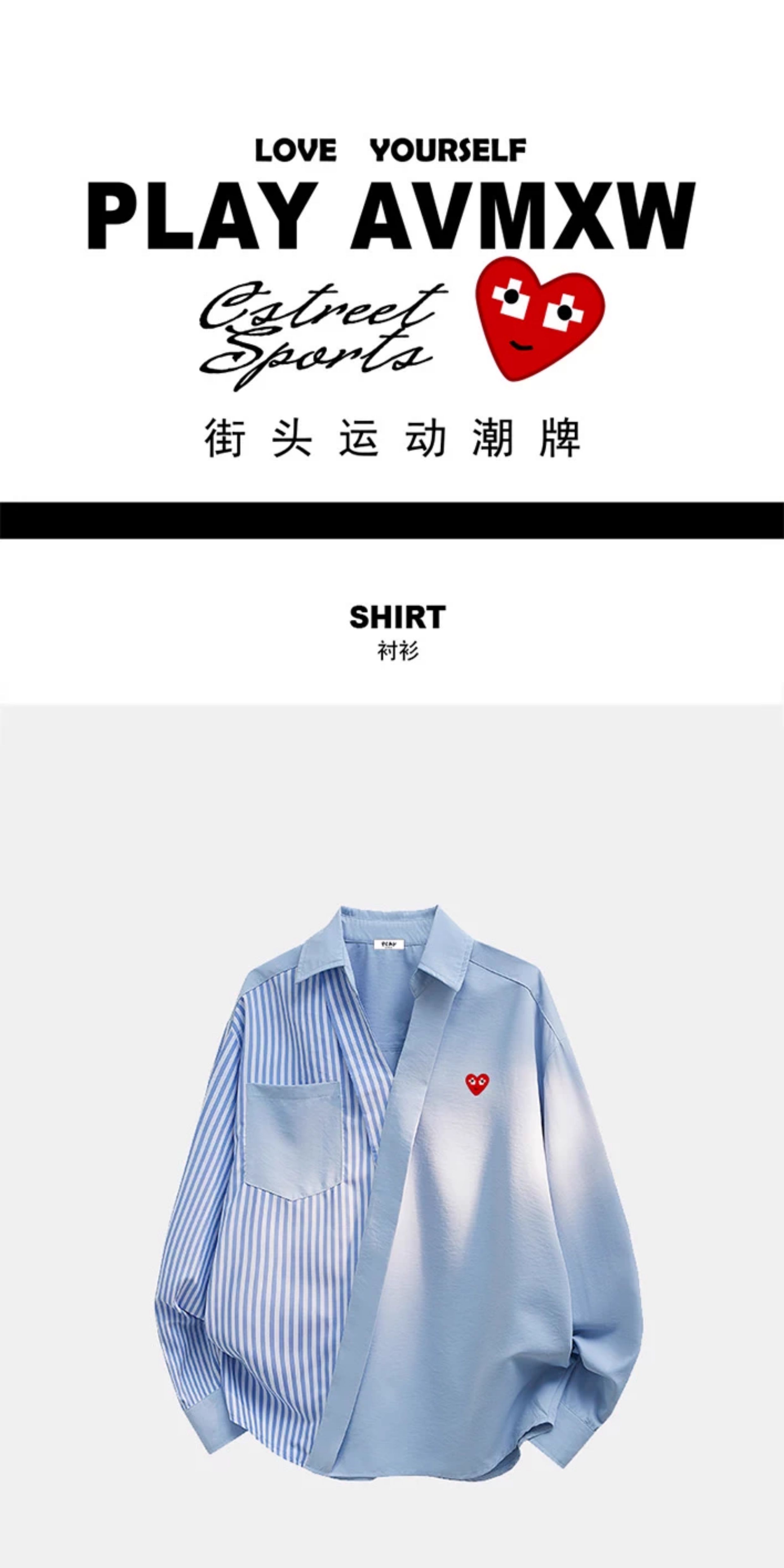 Play Avmxw Official Long-Sleeved Shirt Autumn and Winter New Couple Style Trendy Brand Fashion Patchwork Striped Top