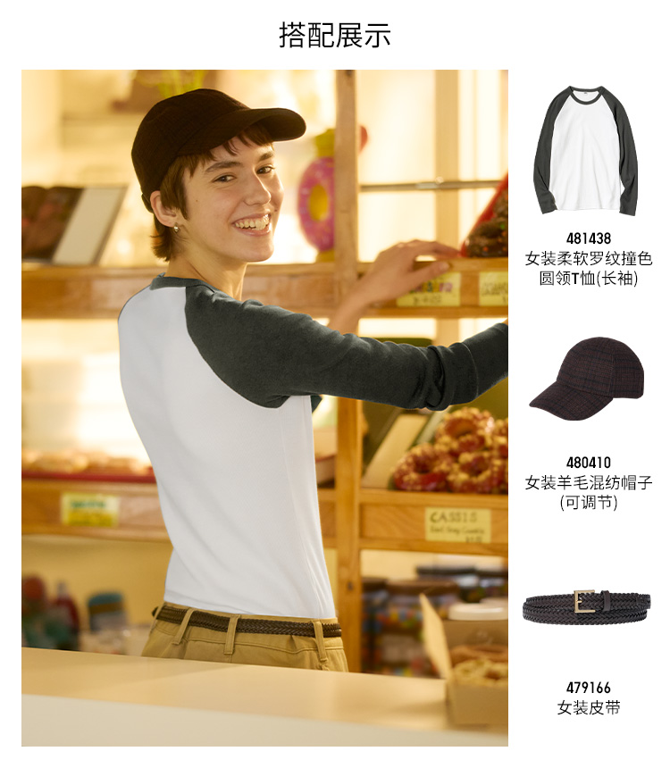 Uniqlo Women's Soft Ribbed Color-Blocked Crew Neck T-Shirt/Long Sleeve Raglan Sleeve Inner Layer 25 Autumn/Winter New Style 481438
