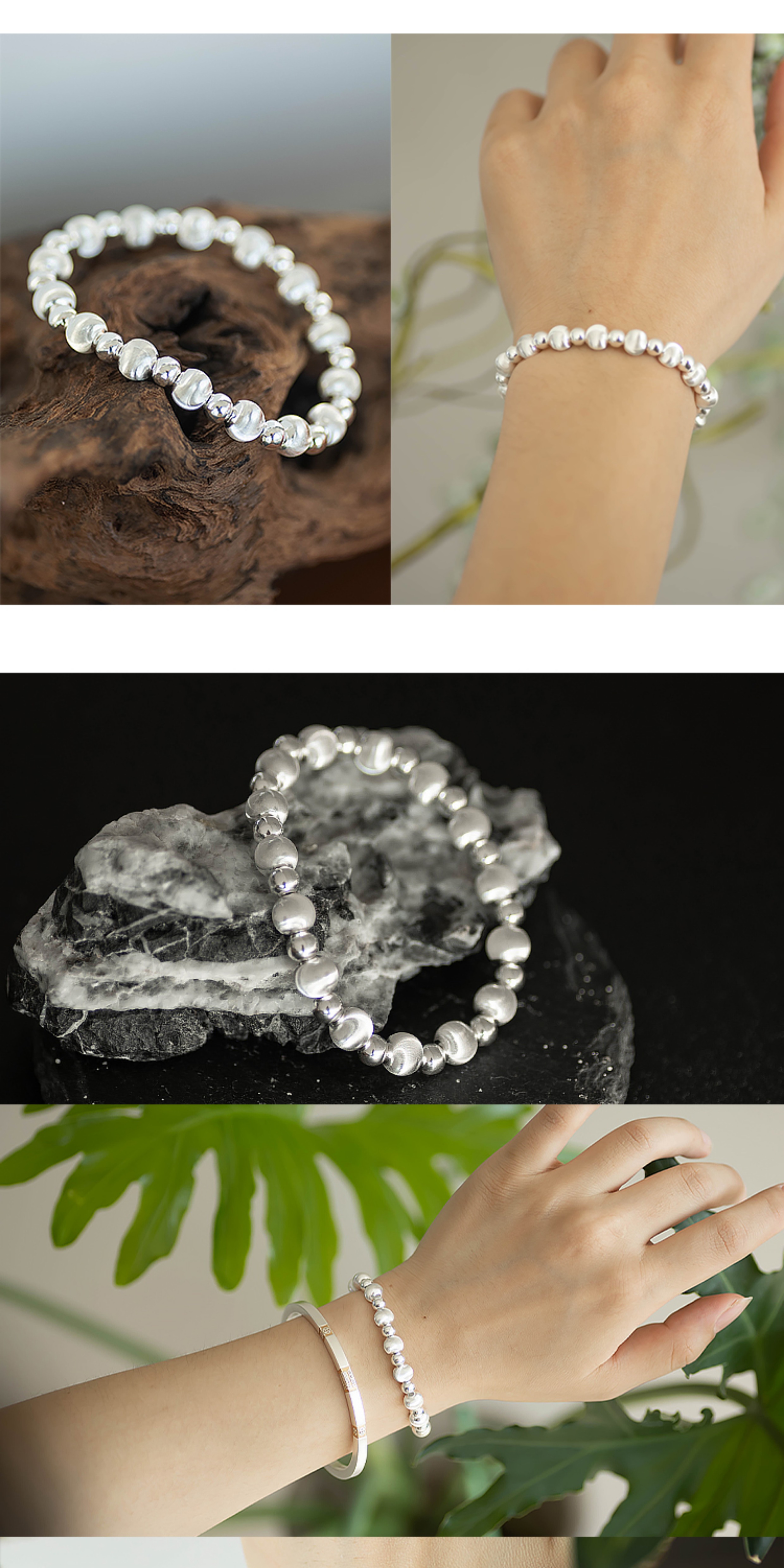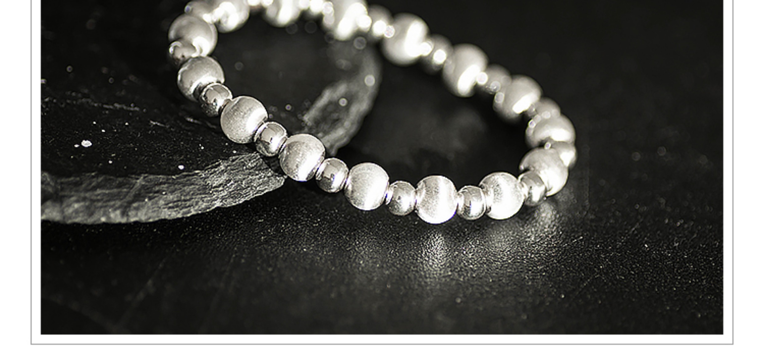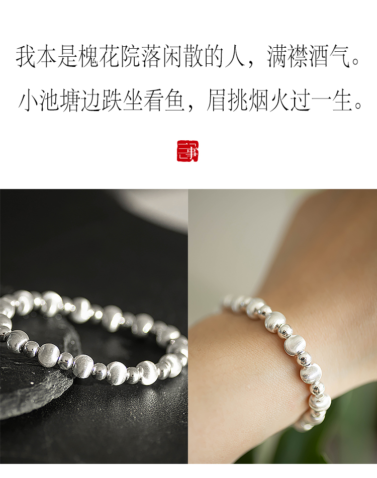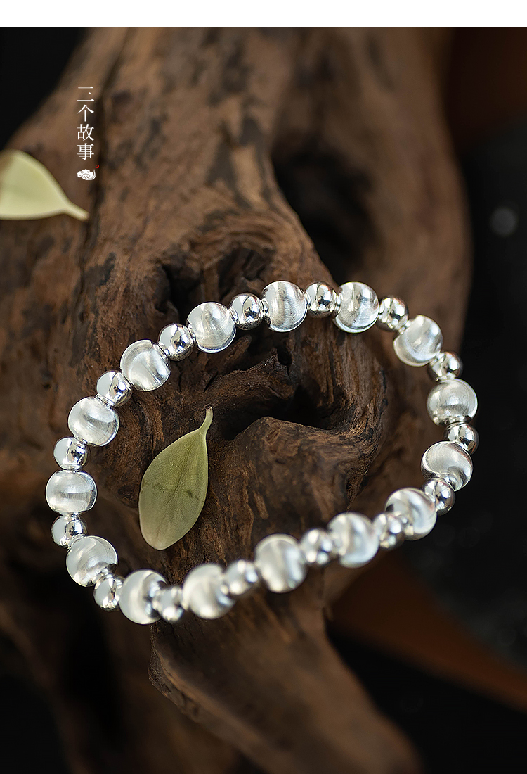 Renzhao Pure Silver 999.9 Cat's Eye Brushed Silver Bead Bracelet 17g High-End Bracelet Light Luxury Simple Fortune Bead