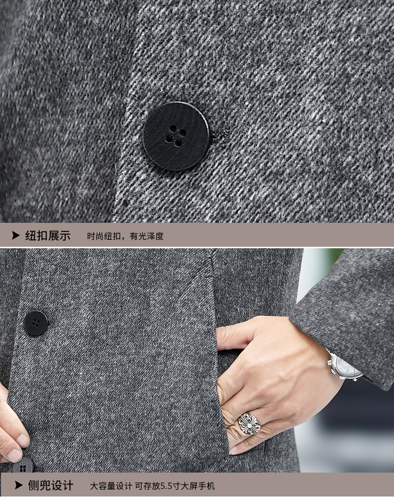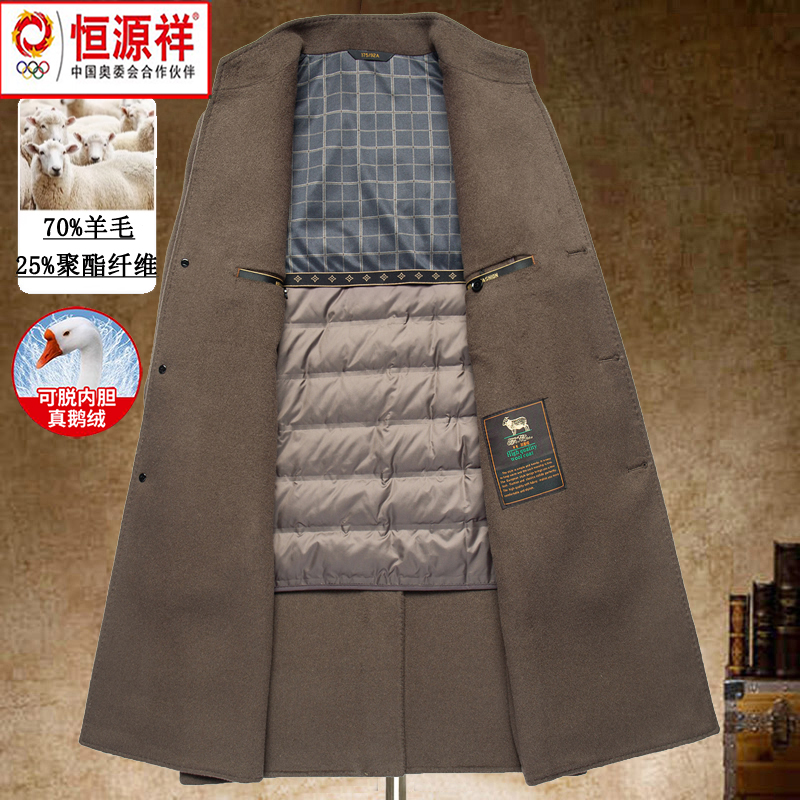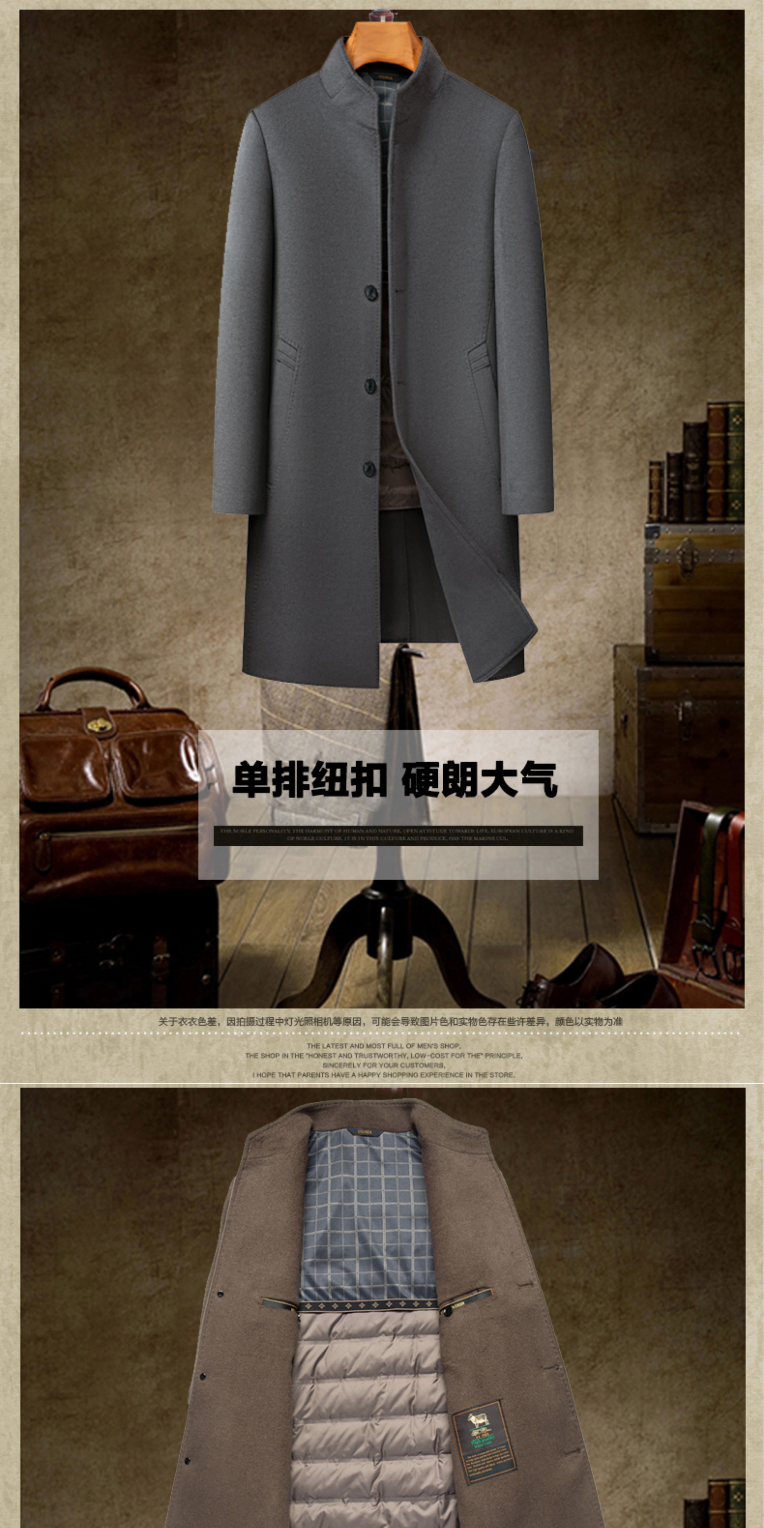 Pierre Cardin Double-Sided Wool Coat for Men, Stand Collar, Mid-Length, Winter Thickened Woolen Coat with down Lining and Cashmere