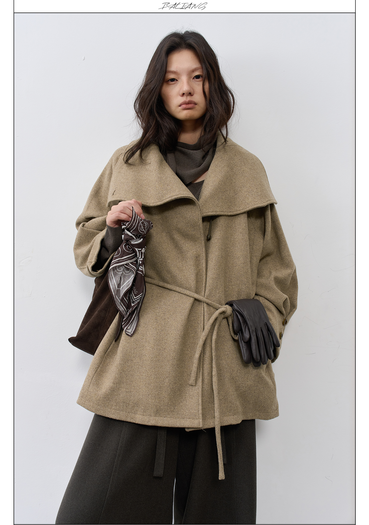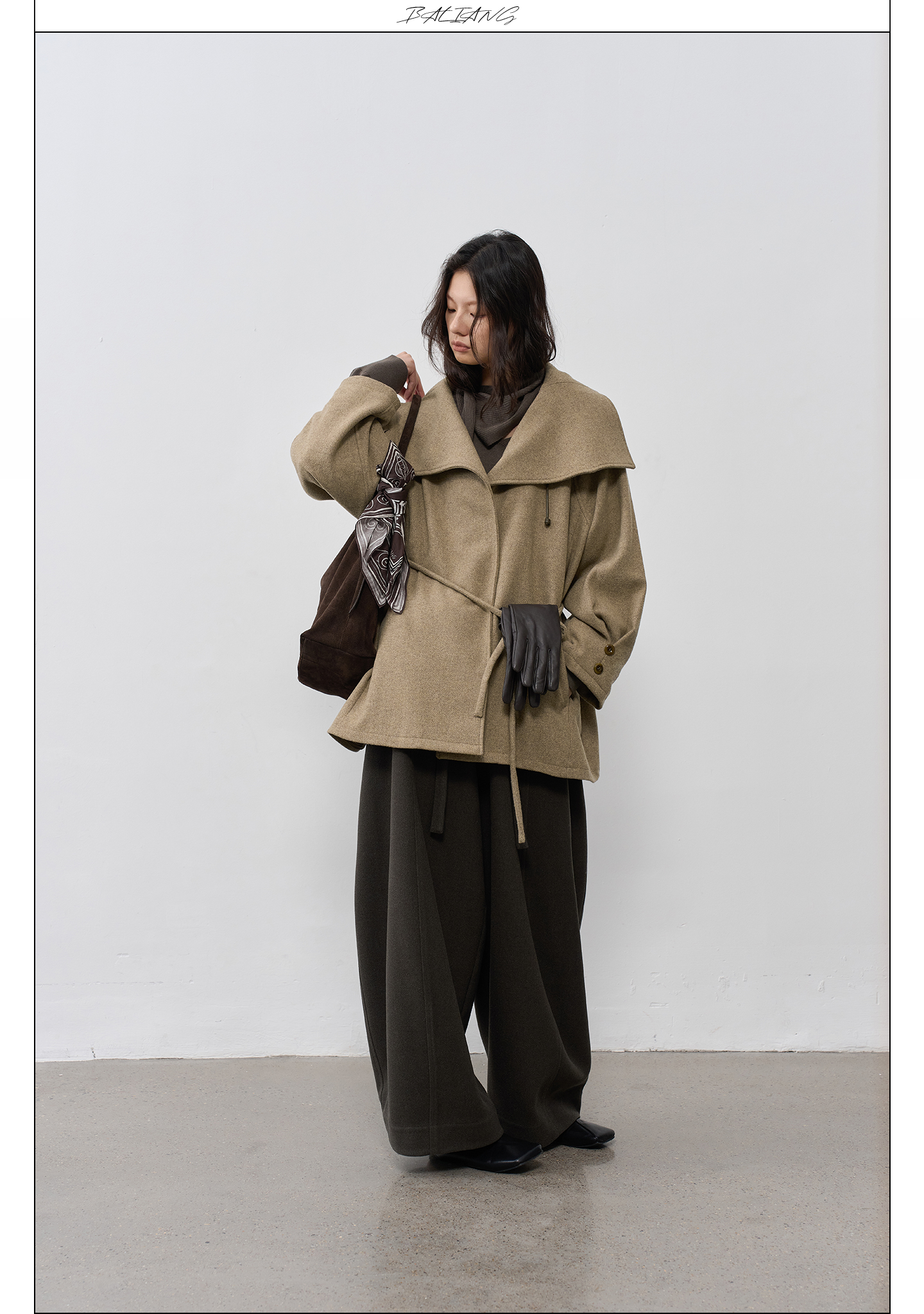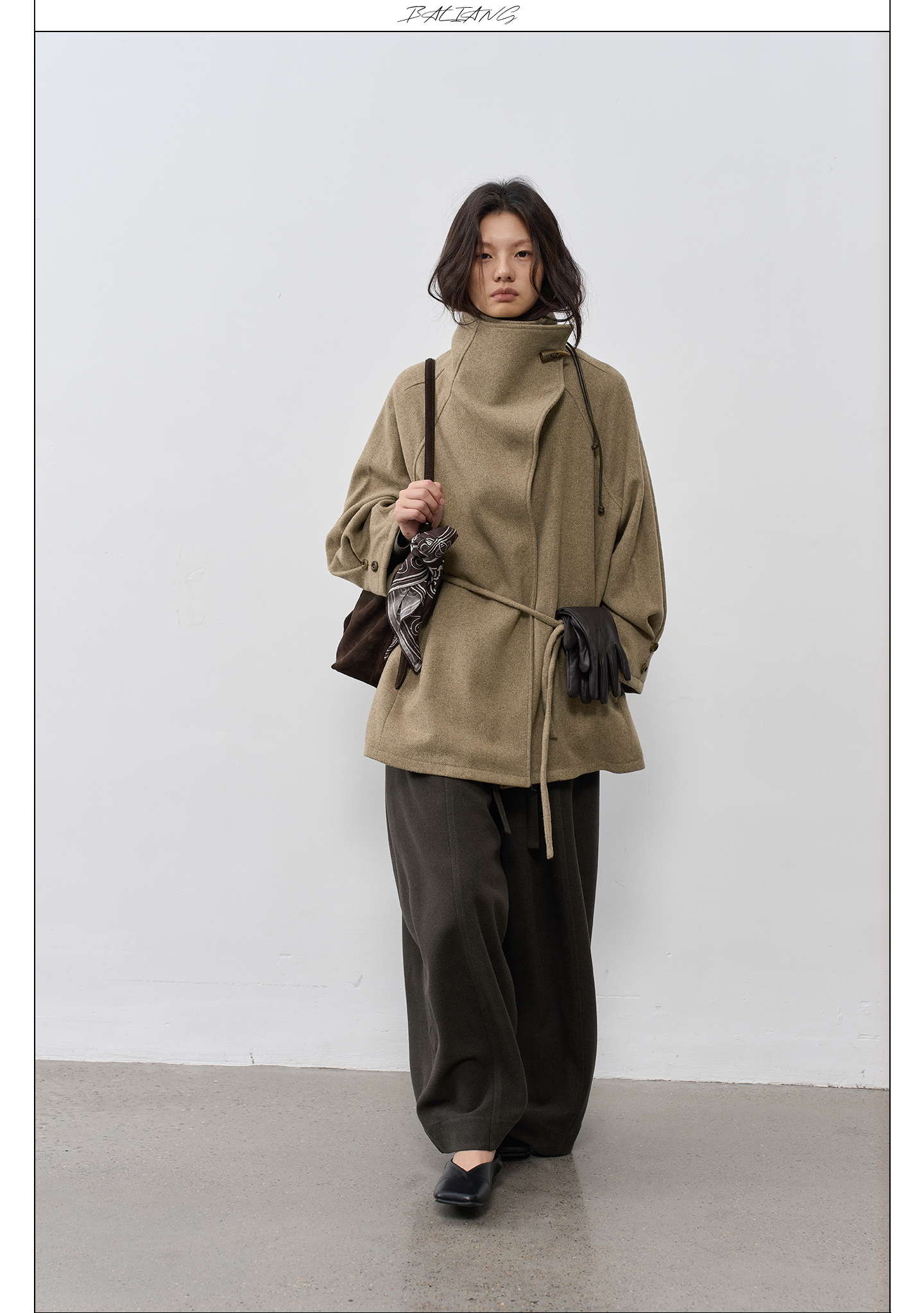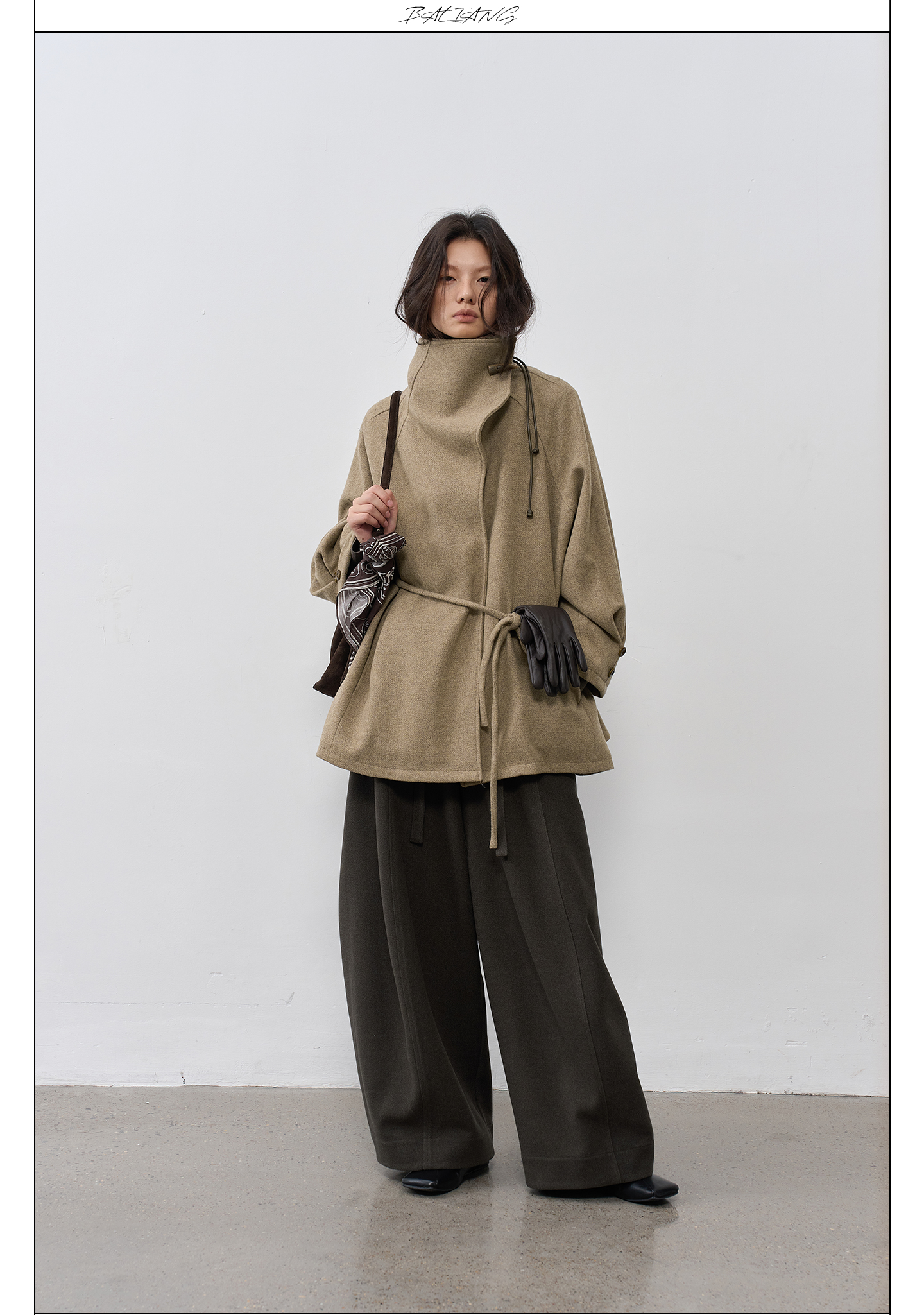 Baliang「捌樕」 Rin'Bitter' Mid-Length Toggle Button Braided Rope Stacked Collar Woolen Coat