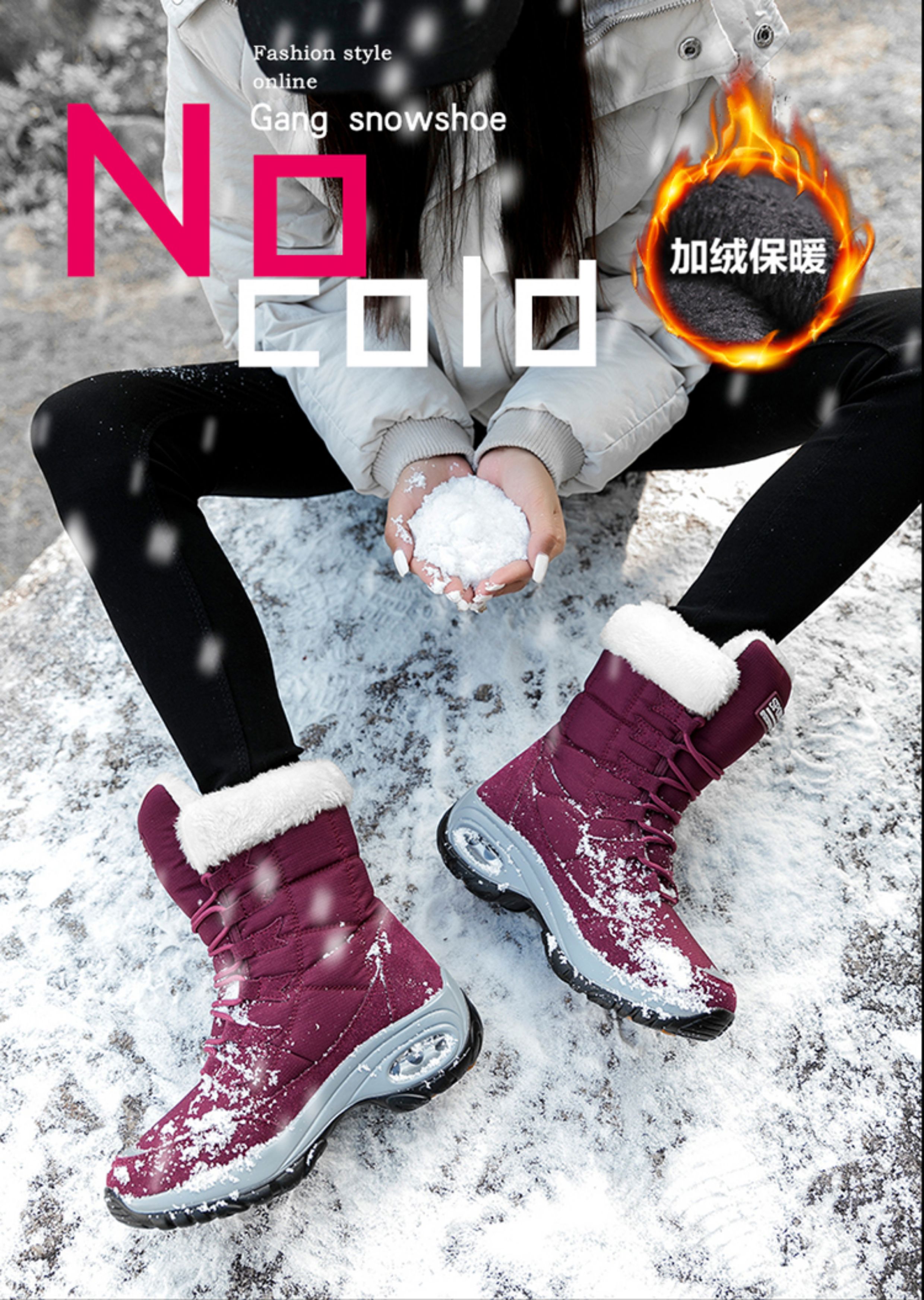 Winter Outdoor Snow Boots for Women, Waterproof and Non-Slip, Suitable for Northeast Travel, Thickened High-Top Cotton Shoes, Large Size Mid-Calf Cotton Boots for Women