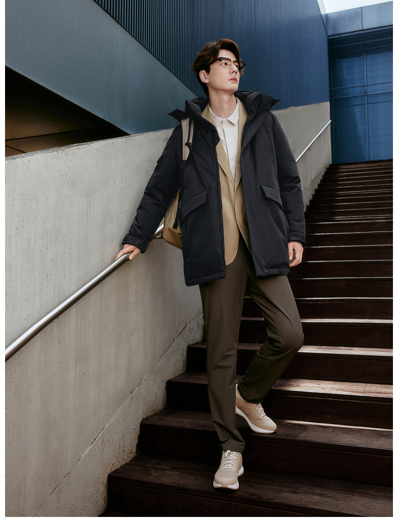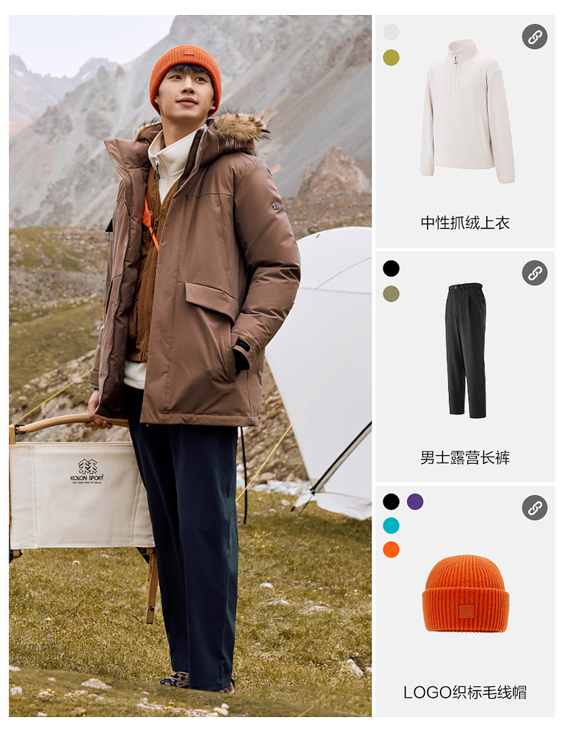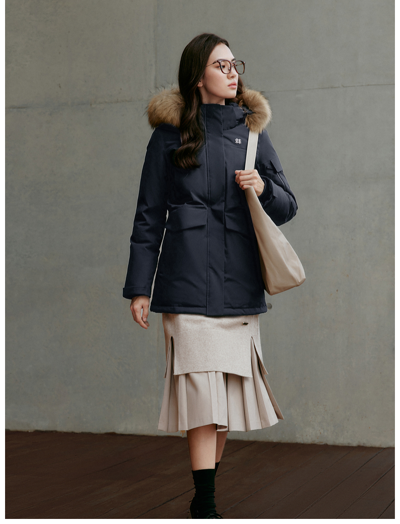 Kolon Sport Kolon Goose down Jacket Waterproof, Windproof and Breathable Men's and Women's Medium-Weight Fur Collar down Jacket