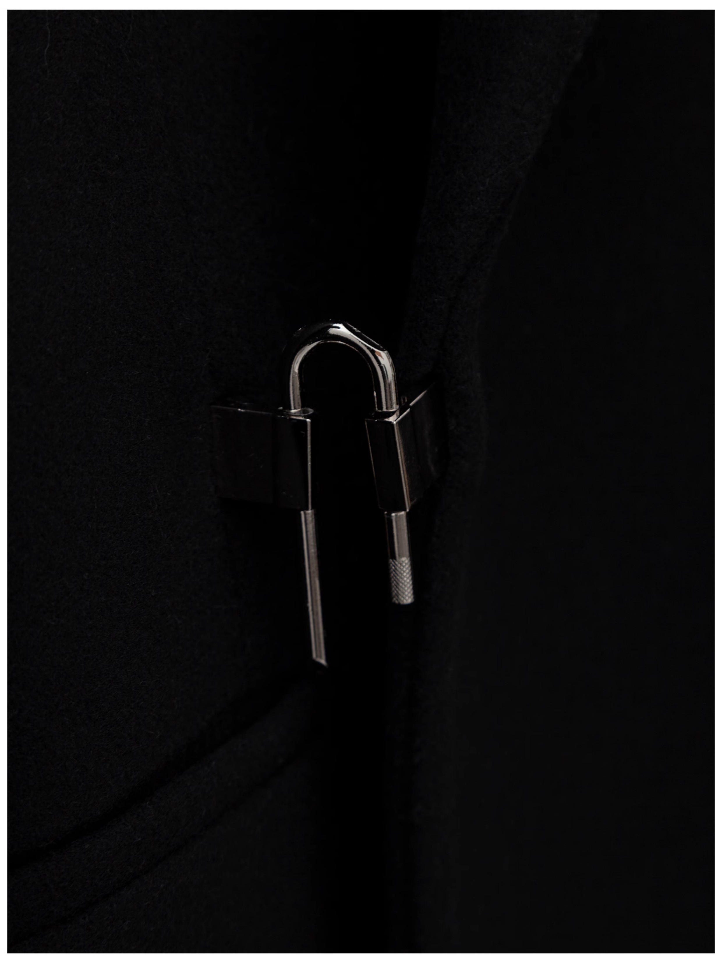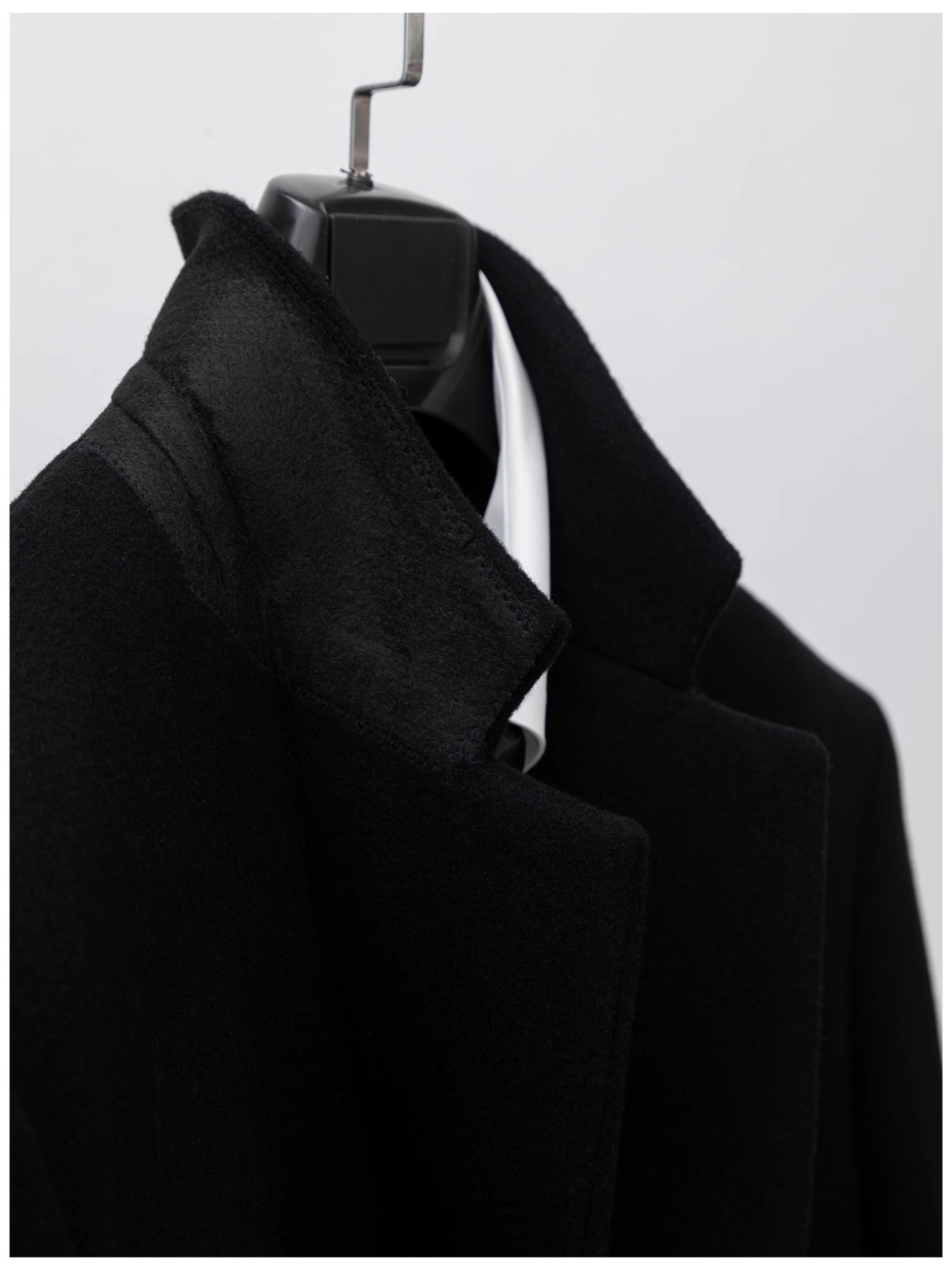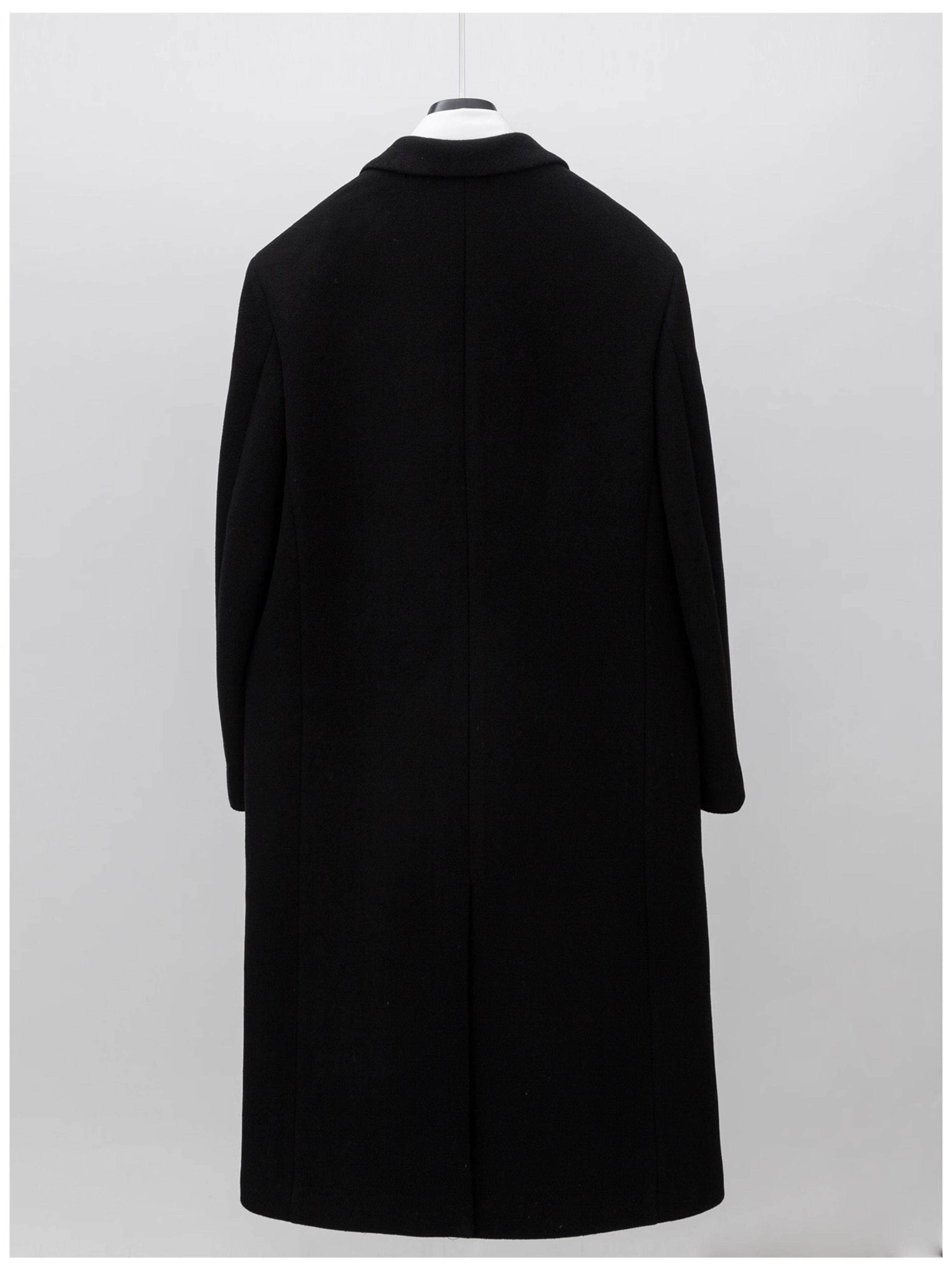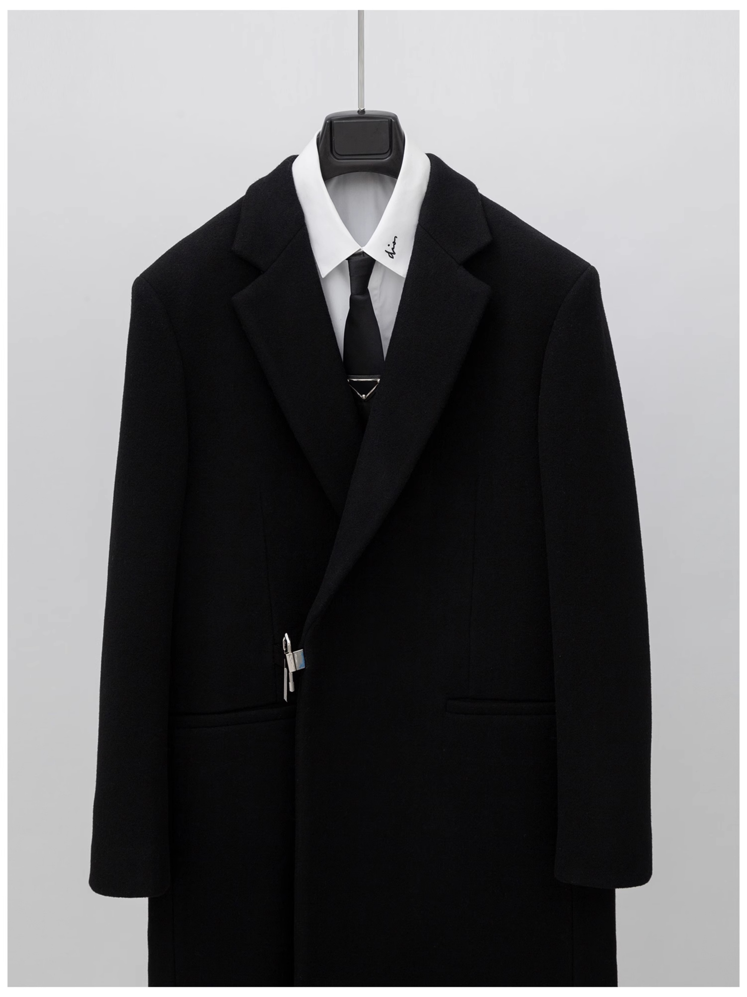 Dyne Studio High-Quality Black Wool Long Coat with Clasp, Unisex Jacket for Men 8959