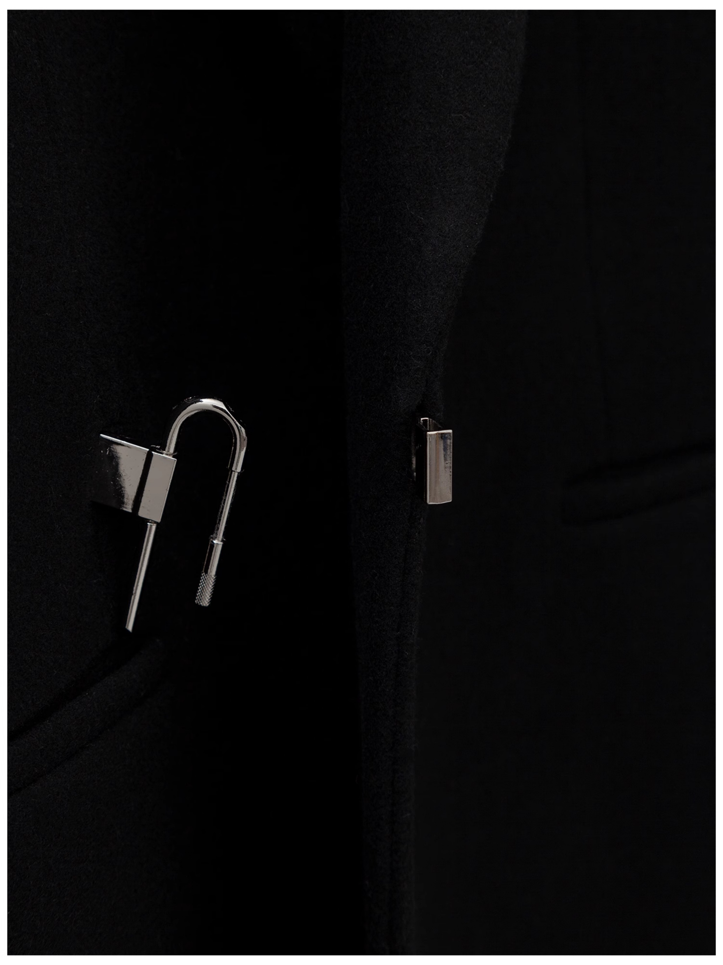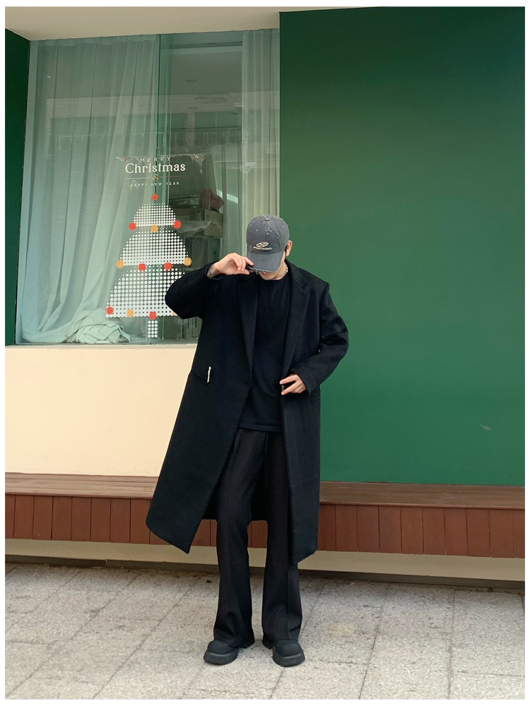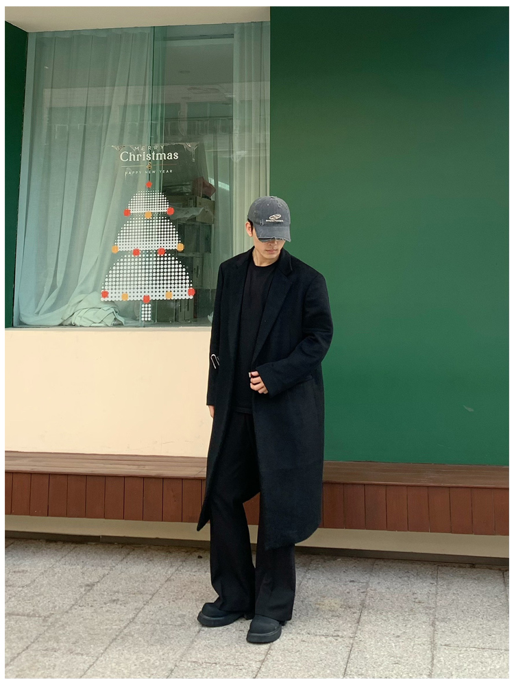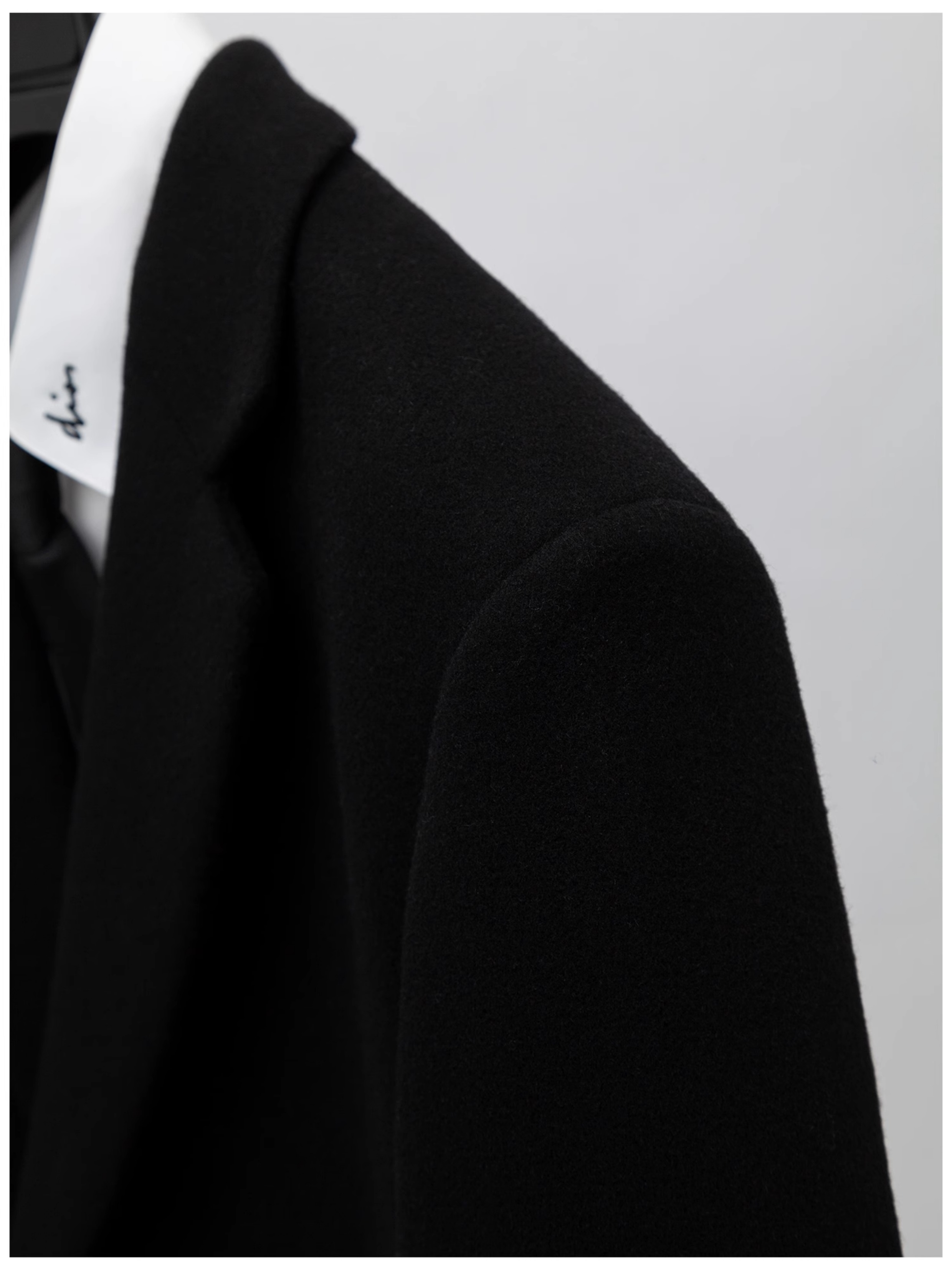 Dyne Studio High-Quality Black Wool Long Coat with Clasp, Unisex Jacket for Men 8959