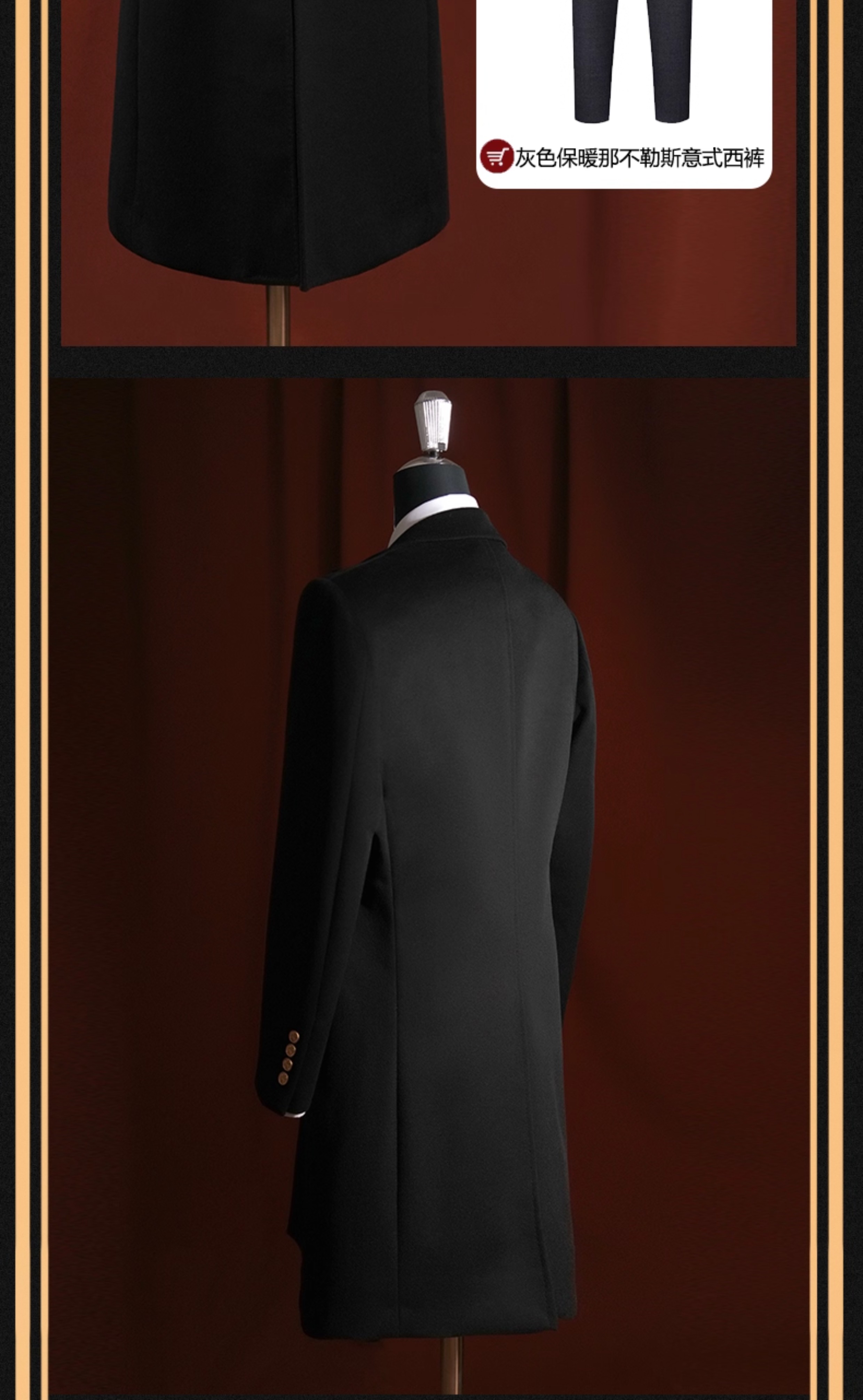 [Contains 30% Cashmere] Autumn and Winter Wool and Cashmere Blend Men's Slim-Fit Chester Woolen Coat, Mid-Length Style for Men