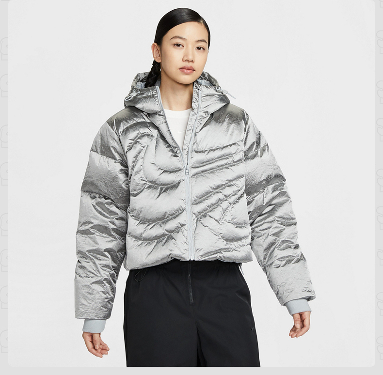 Nike Women's Loose Warm down Jacket 25 Winter New Silver Hooded Jacket Ib2004-095