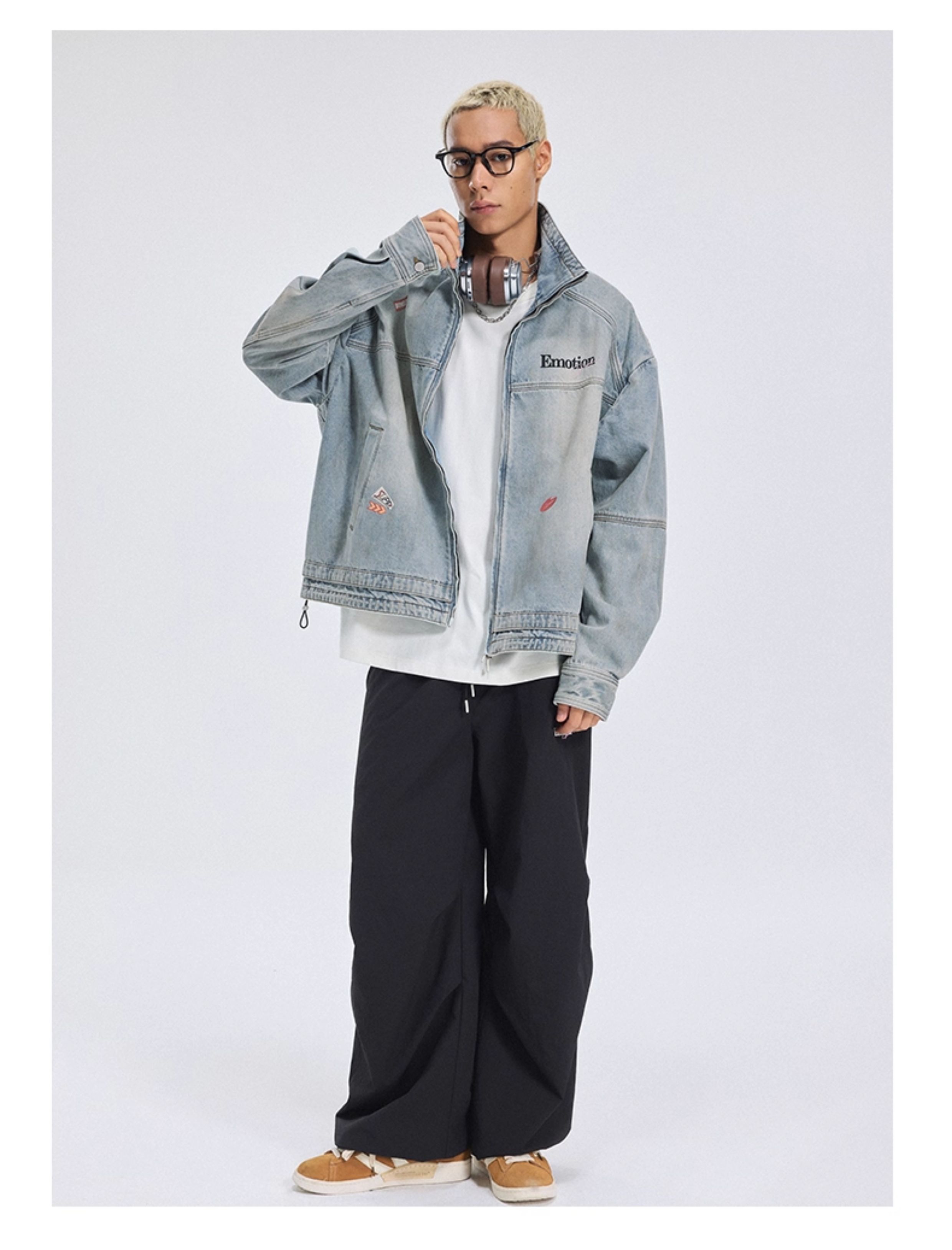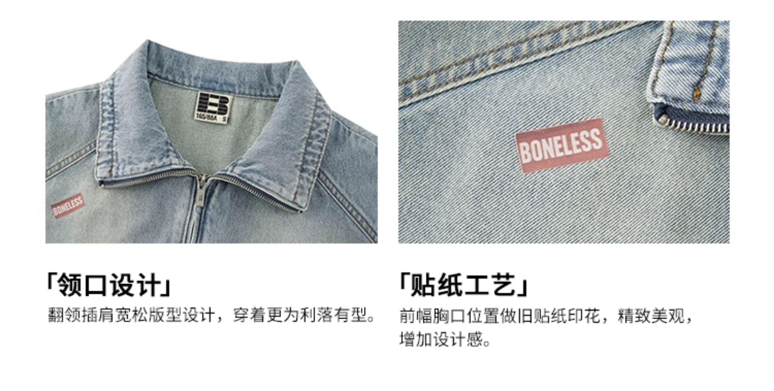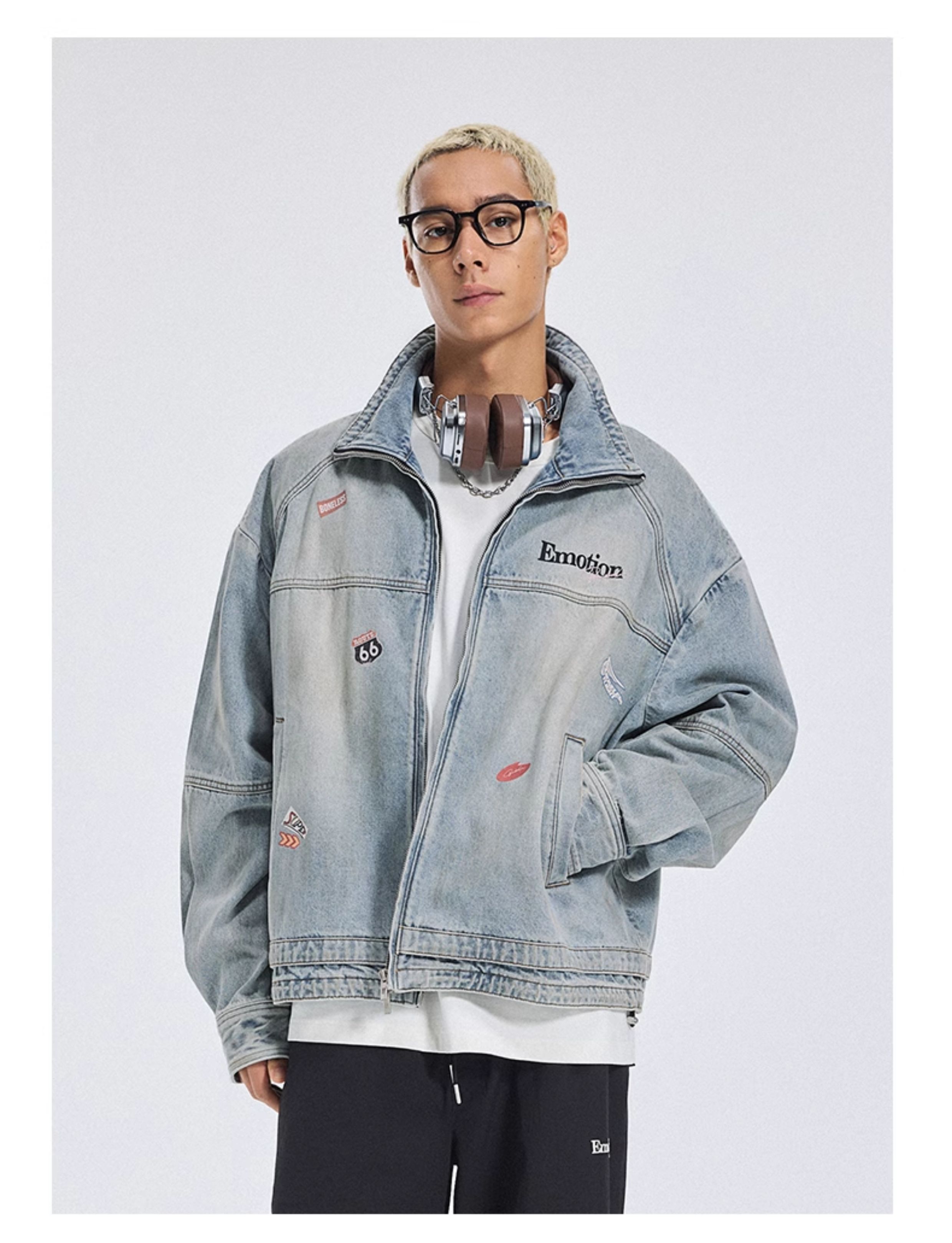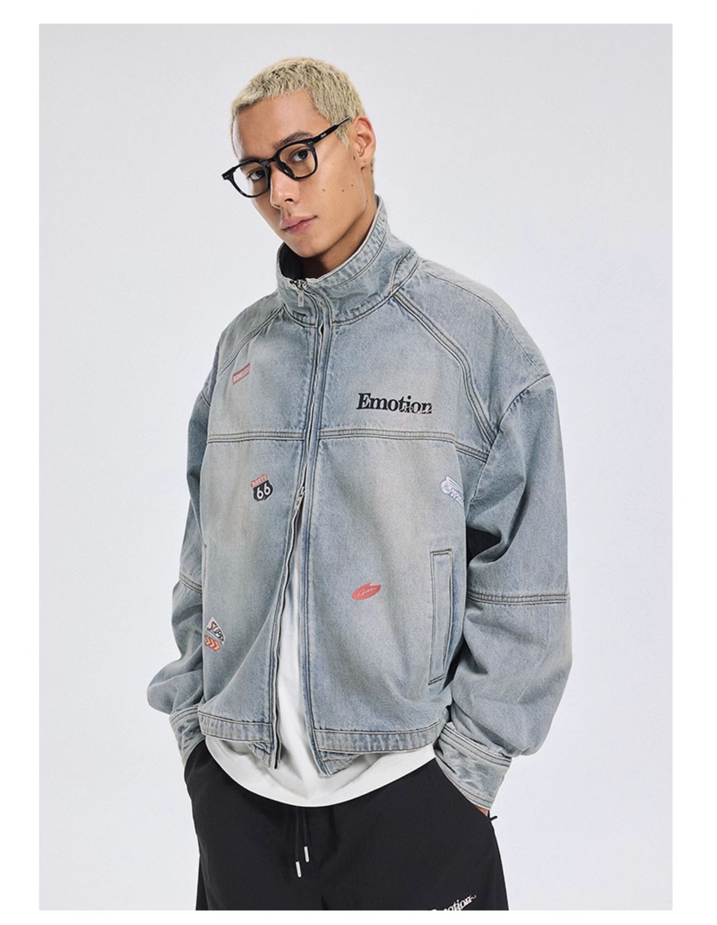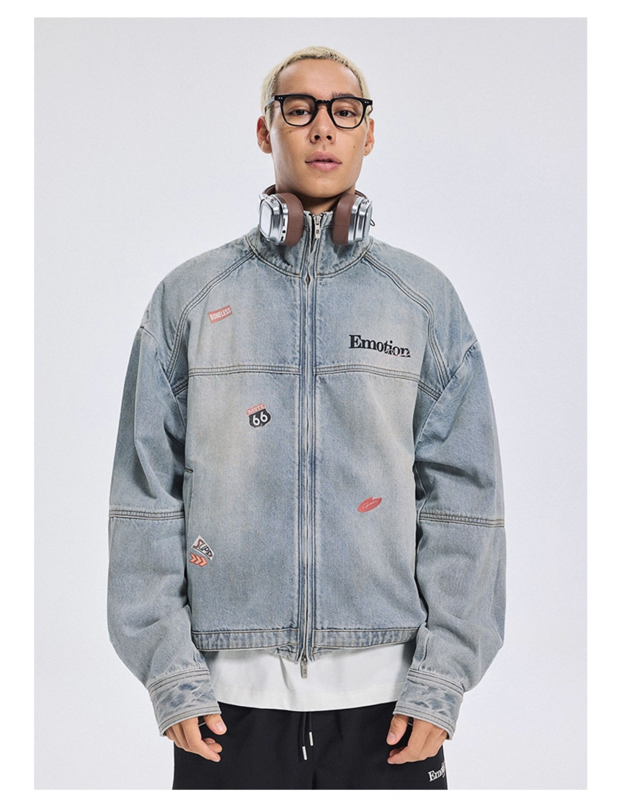 【Emo Disassembly Bureau】Boneless Fun Graphic Vintage Denim Jacket Loose Lapel Streetwear Coat Autumn