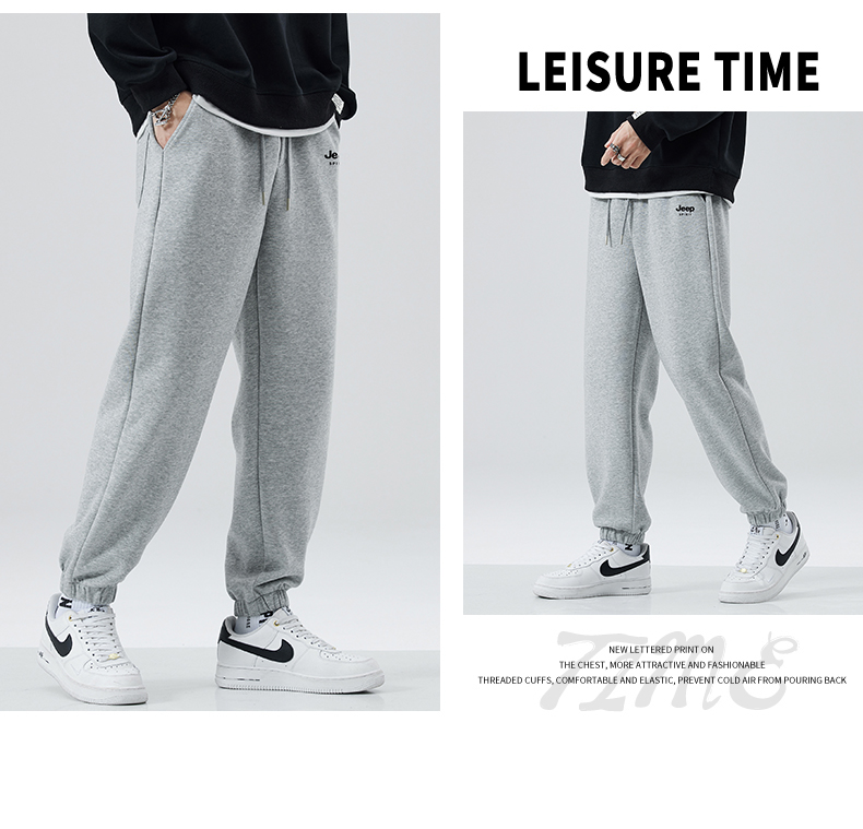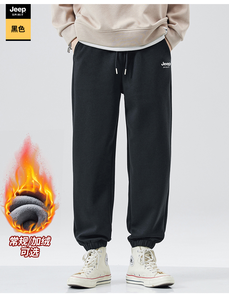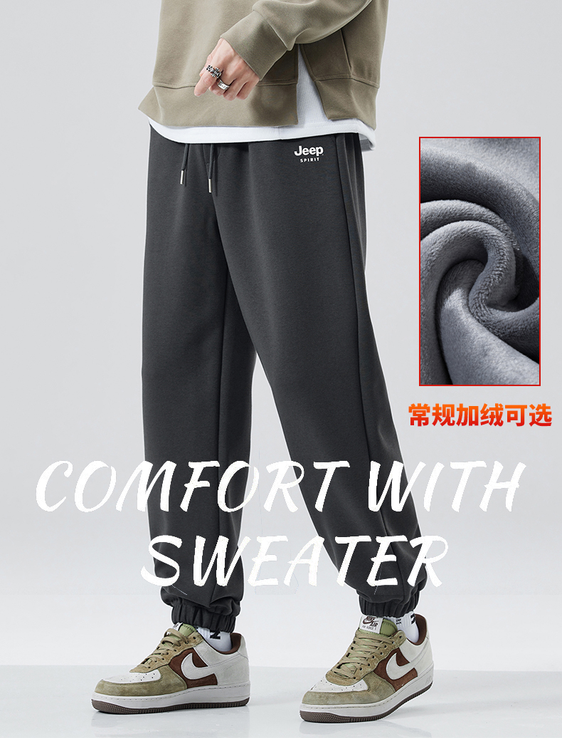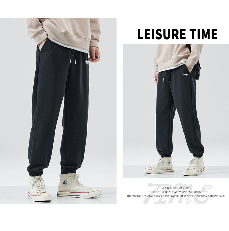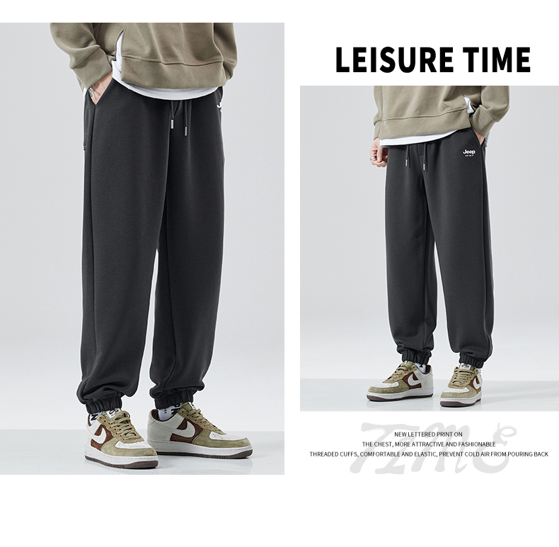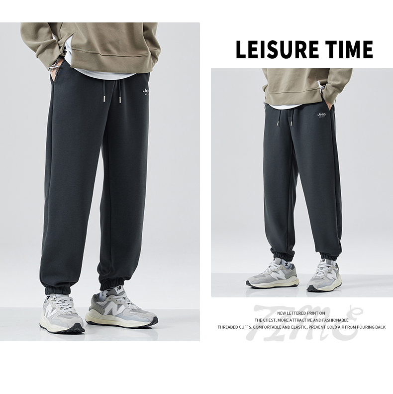 Jeep Autumn and Winter Loose Jogger Sweatpants for Men 2025 New Fleece-Lined Thick Knit Sports Casual Long Pants