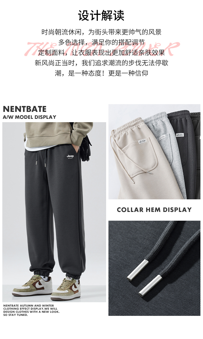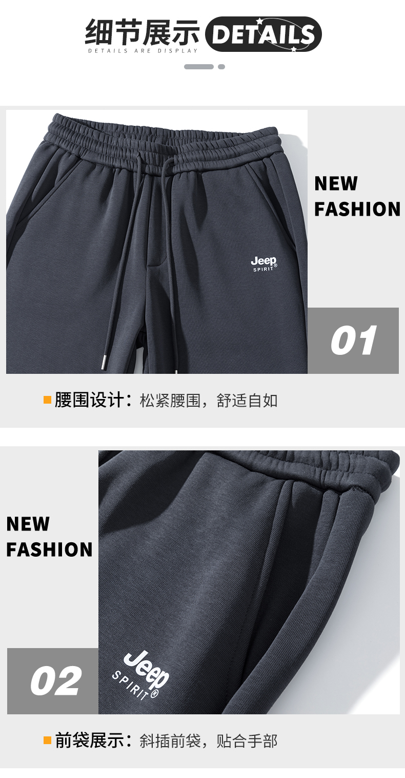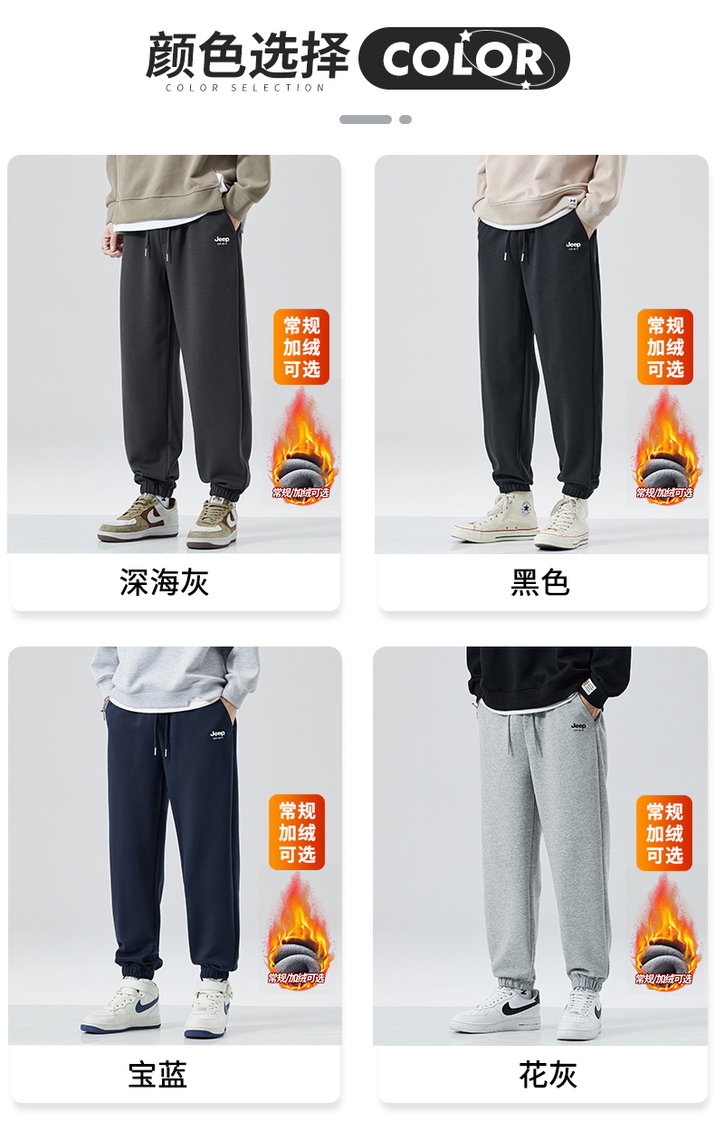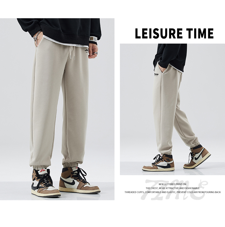 Jeep Autumn and Winter Loose Jogger Sweatpants for Men 2025 New Fleece-Lined Thick Knit Sports Casual Long Pants