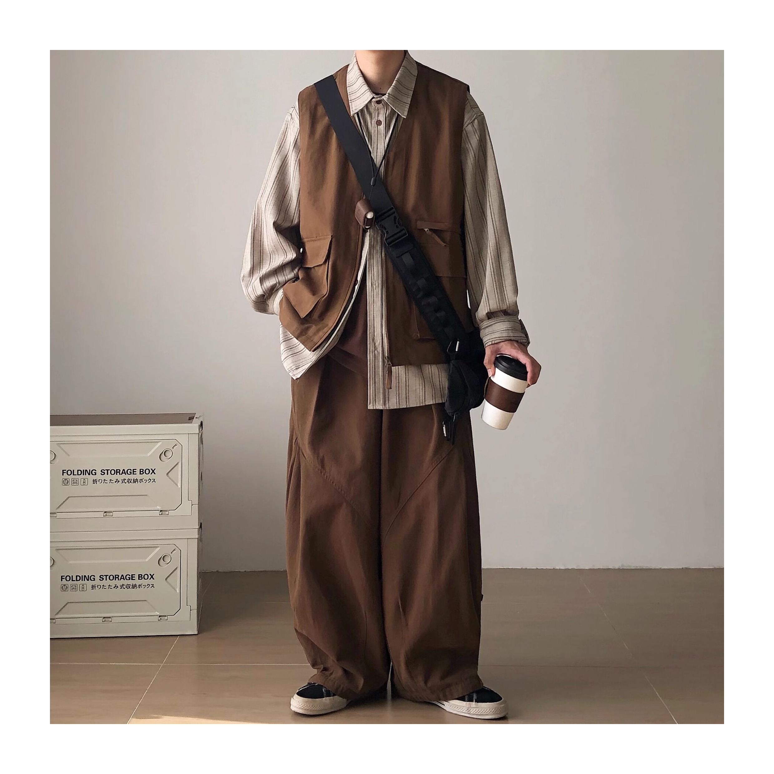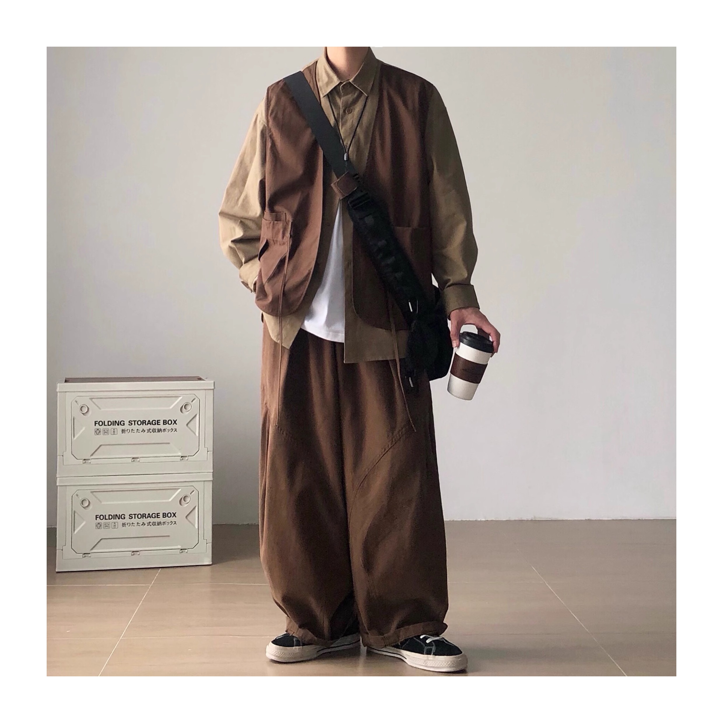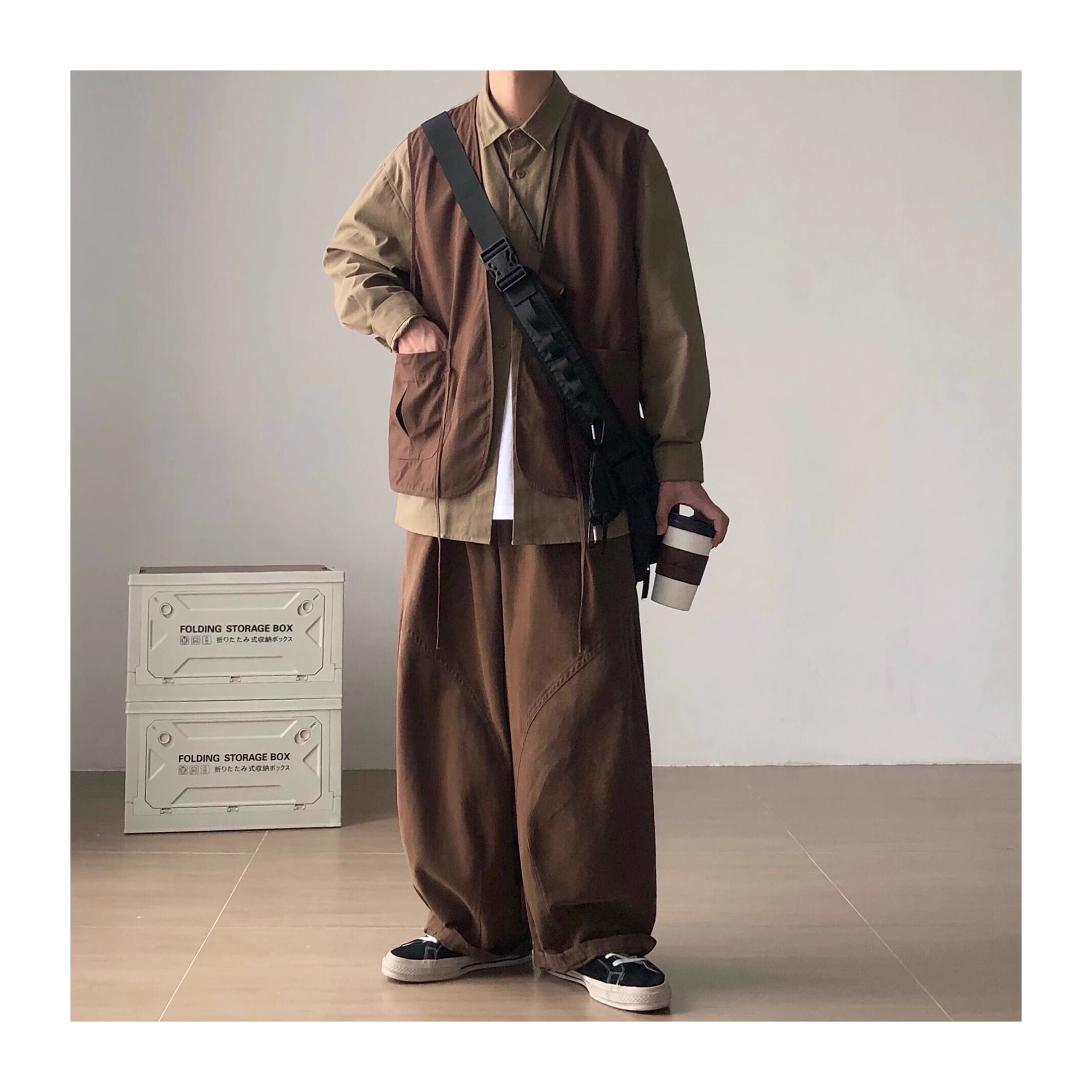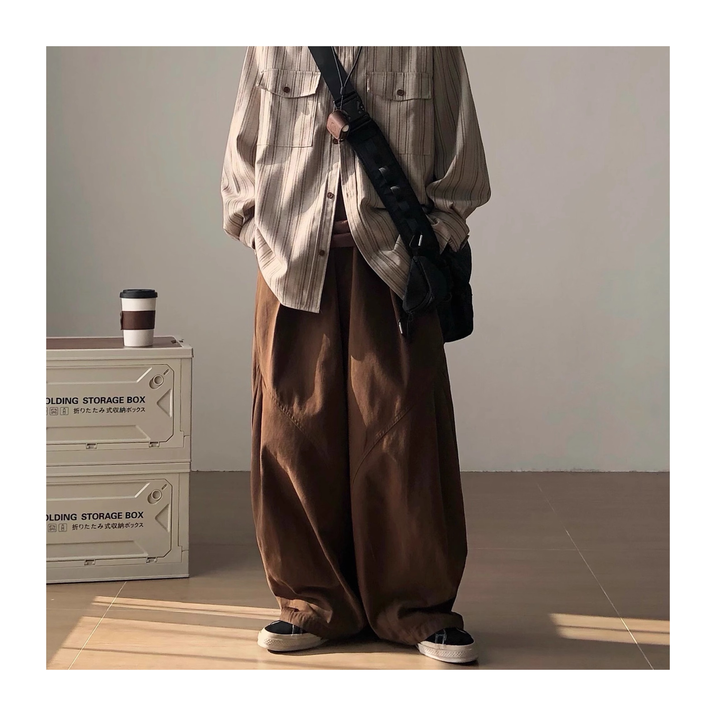 Richman Japanese Style Coffee-Colored Loose Wide-Leg Cargo Pants for Men, Spring and Autumn American Retro Casual Pants