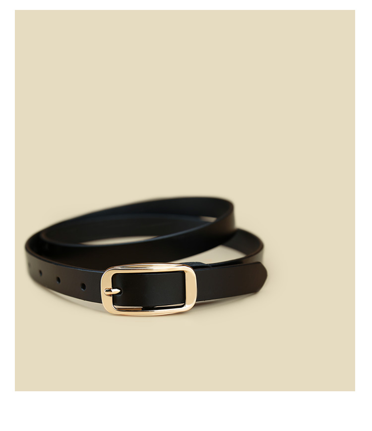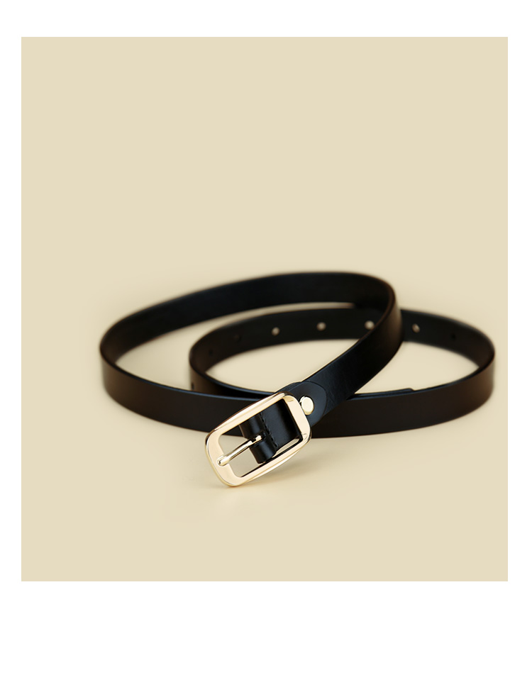 Stephenchow Women's Belt Genuine Leather Top Layer Cowhide Black Versatile Thin Belt Suitable for Dresses and Jeans