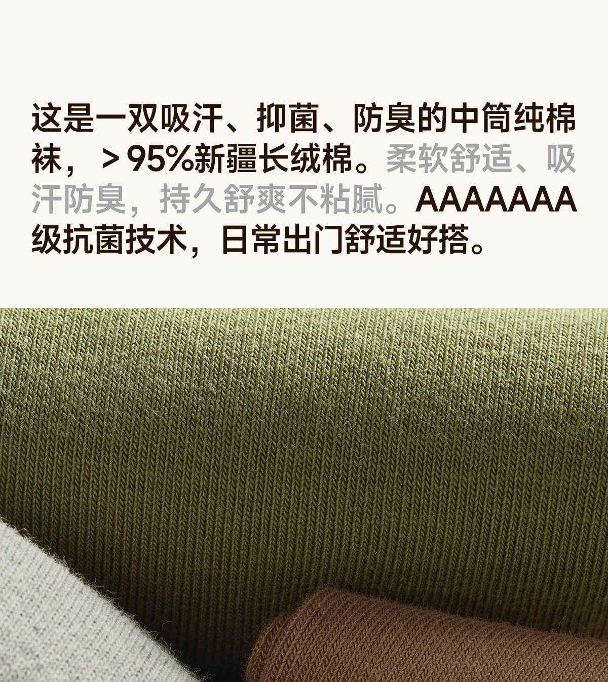 Pure Cotton Socks for Men, Autumn and Winter Thickened Mid-Calf Socks, 7A Antibacterial, Deodorant, Sweat-Absorbent, Sports Black Spring Style Long Socks