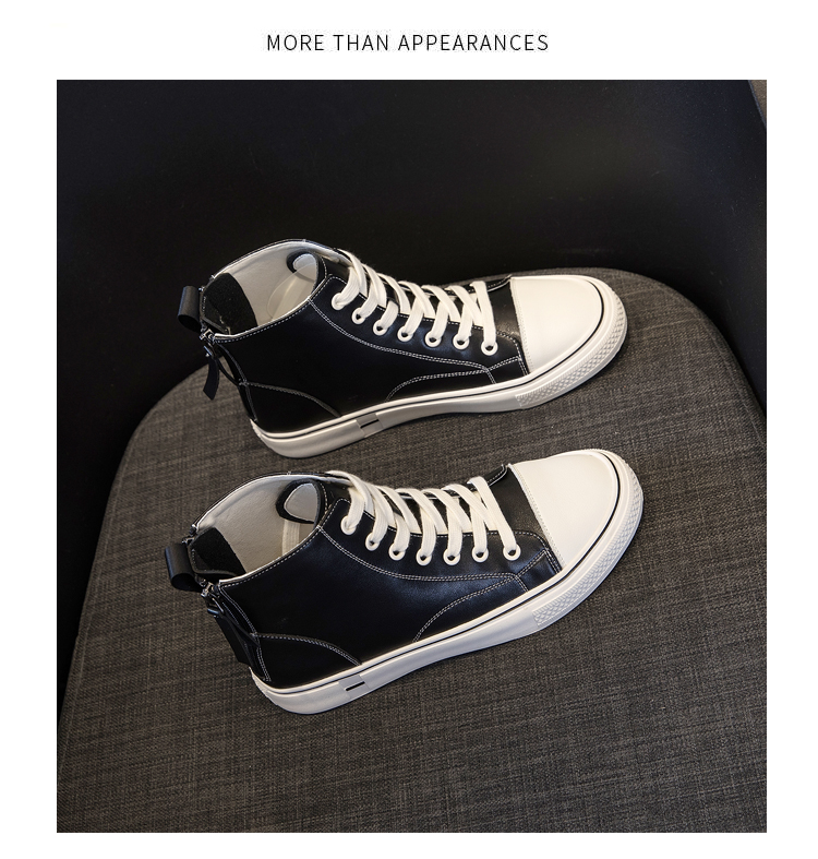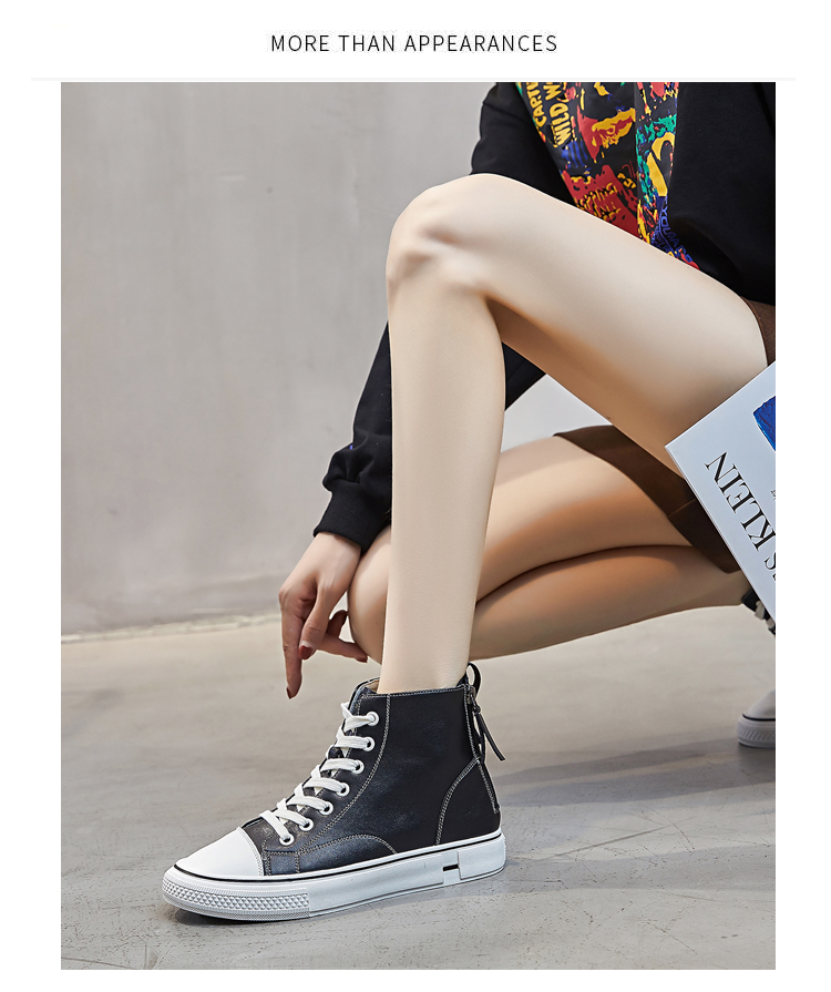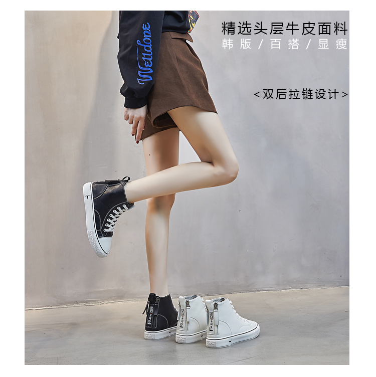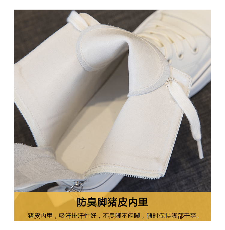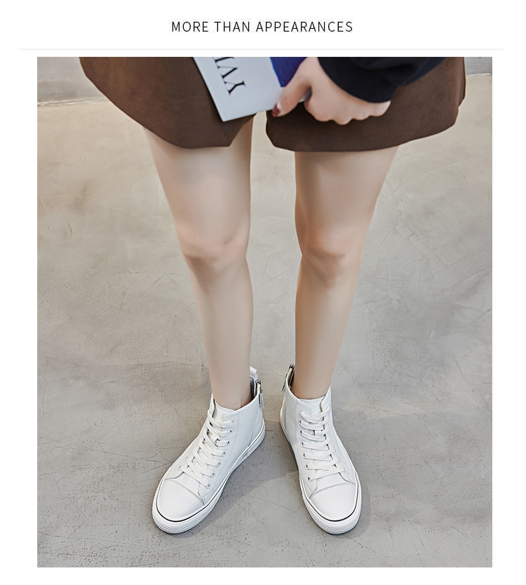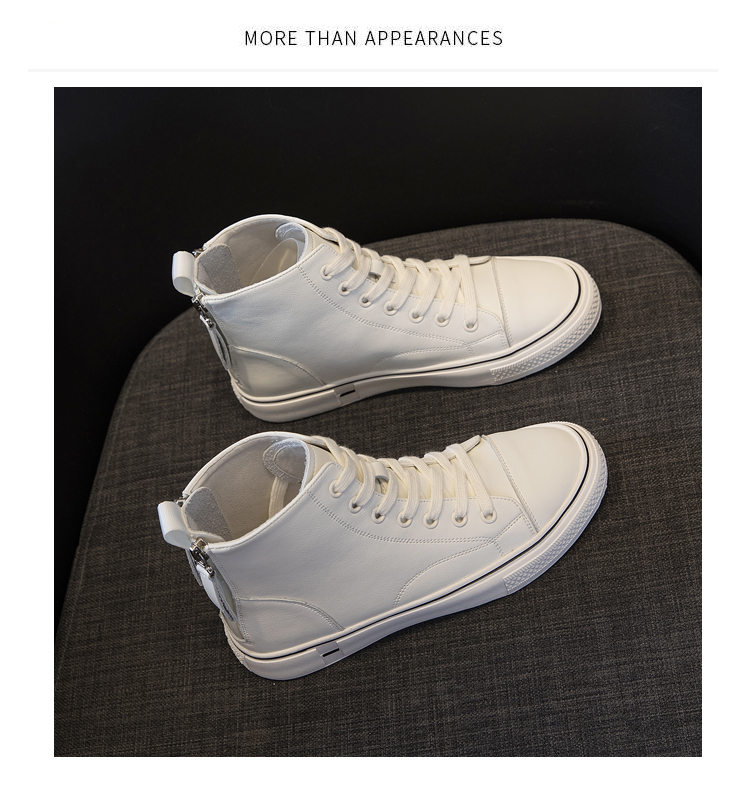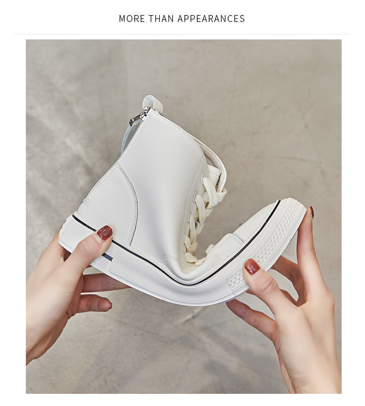 Genuine Leather High-Top White Sneakers for Women, Popular in Autumn and Winter 2025, Fleece-Lined Casual Flat Shoes, Large Size Women's Shoes 41 to 43