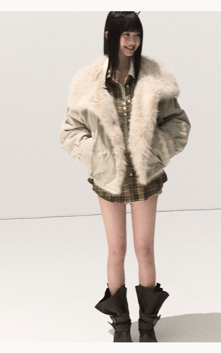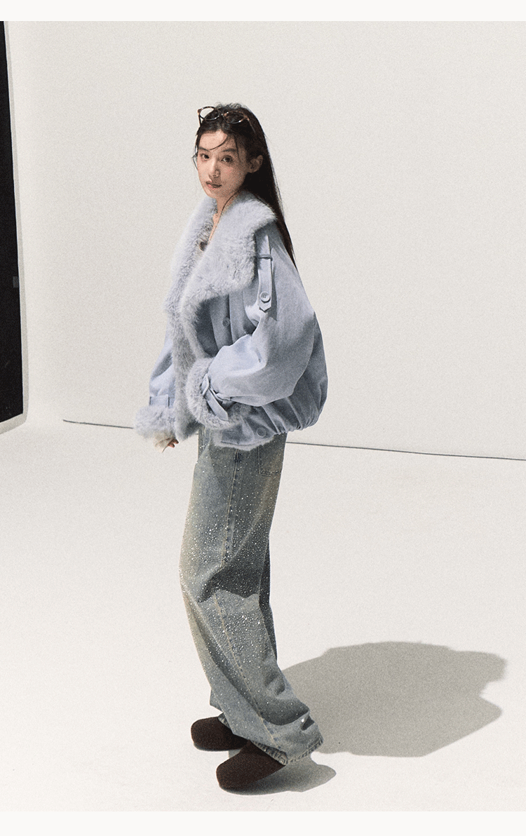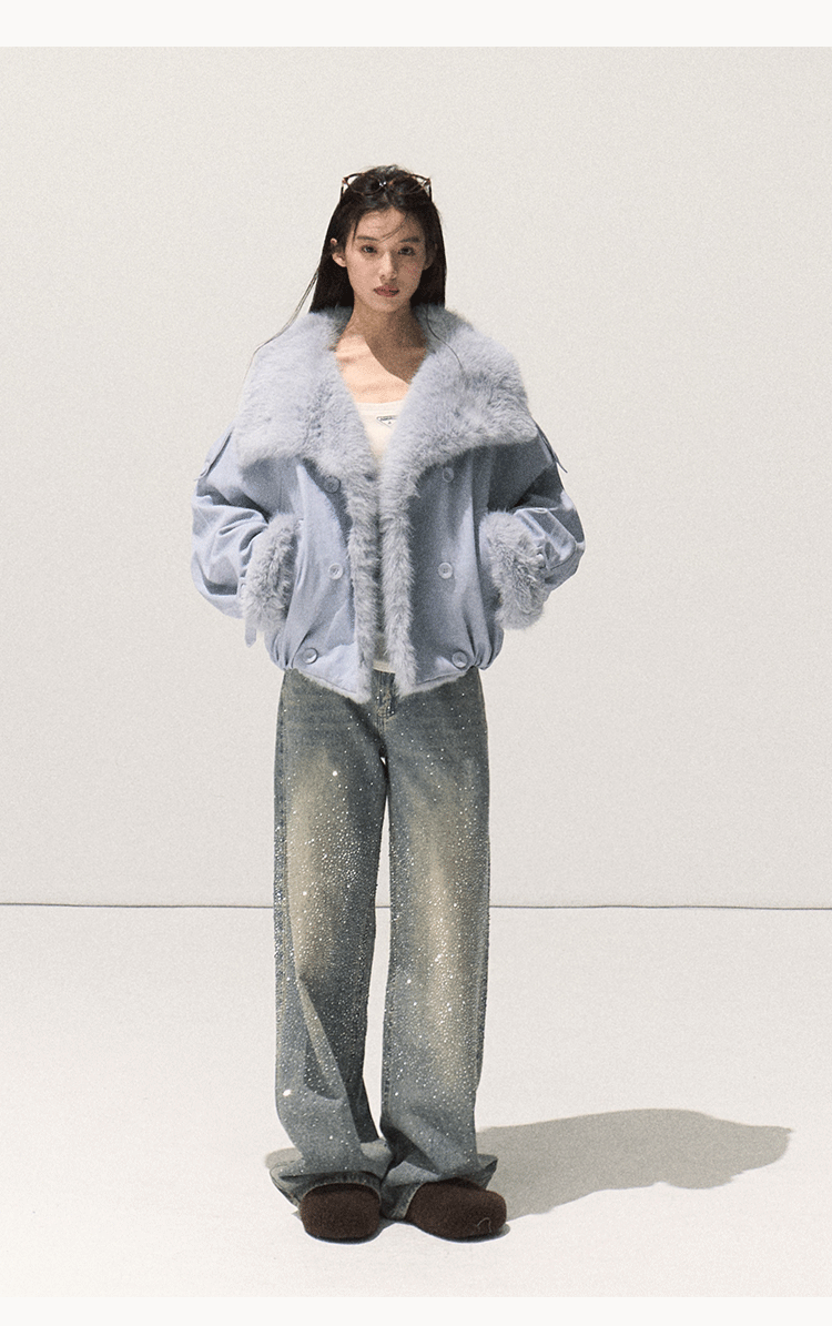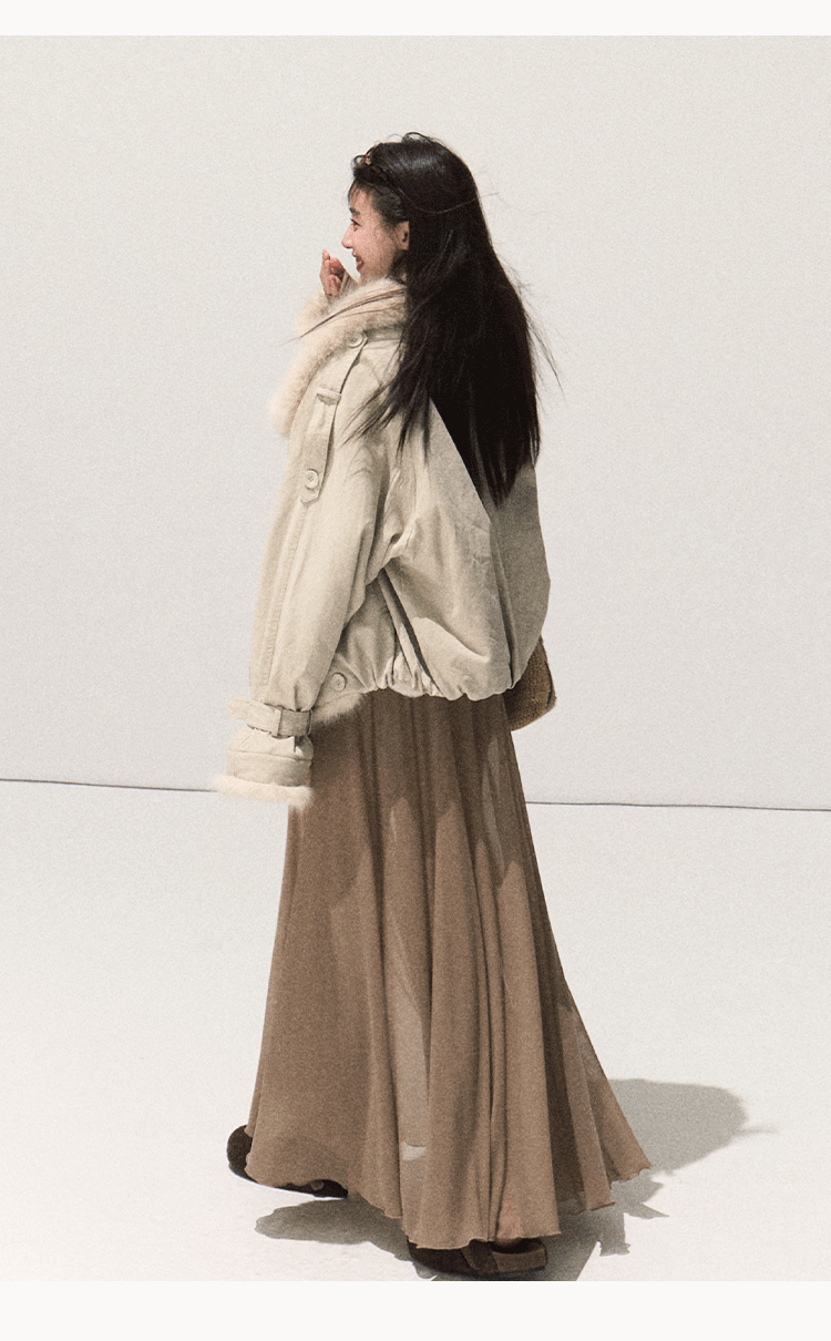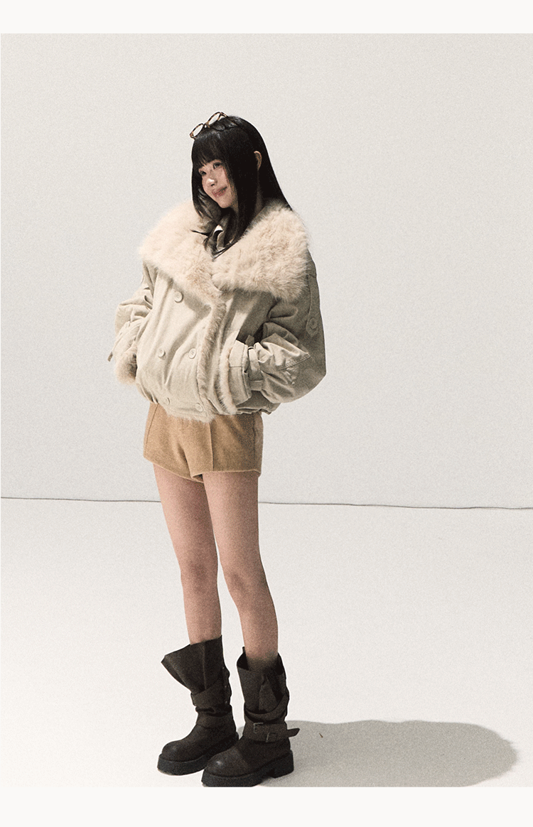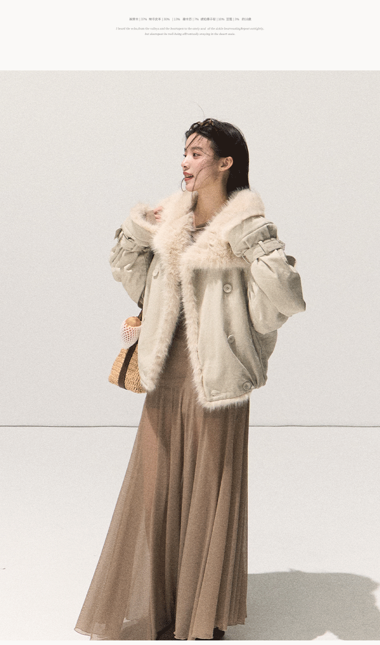 Oakmoo/ "One Night's Osmanthus Tree" Custom-Dyed Heavy-Duty Large Fur Collar Parka Winter Plush Short Thick Coat