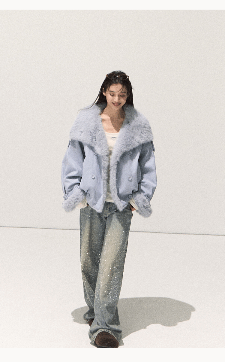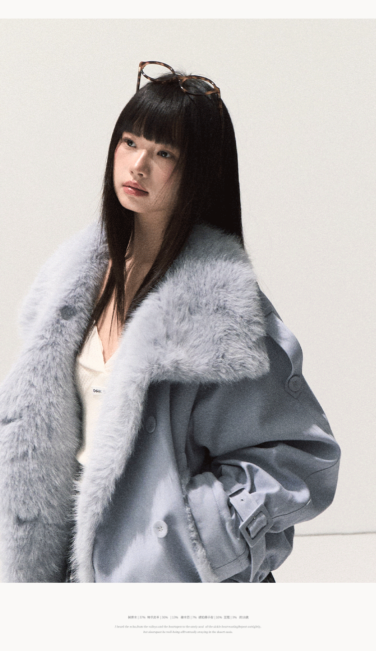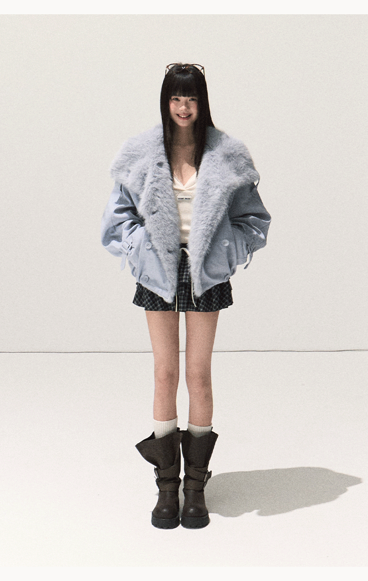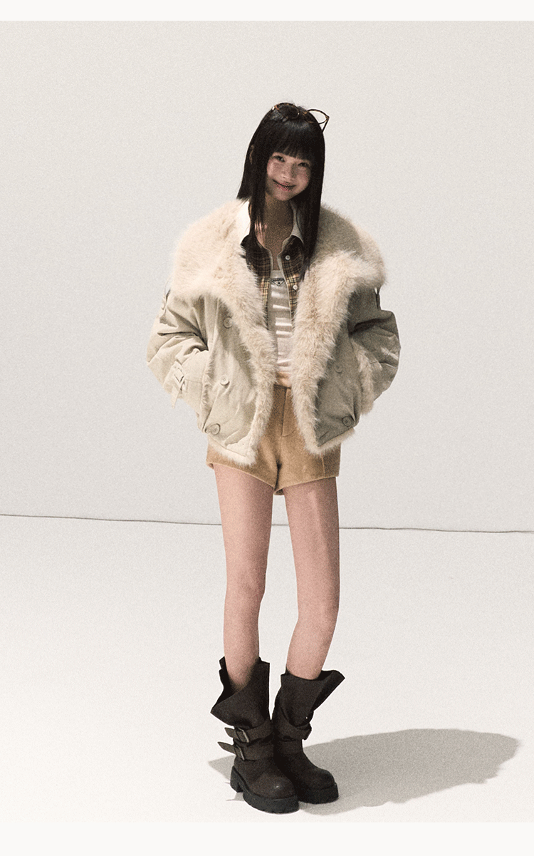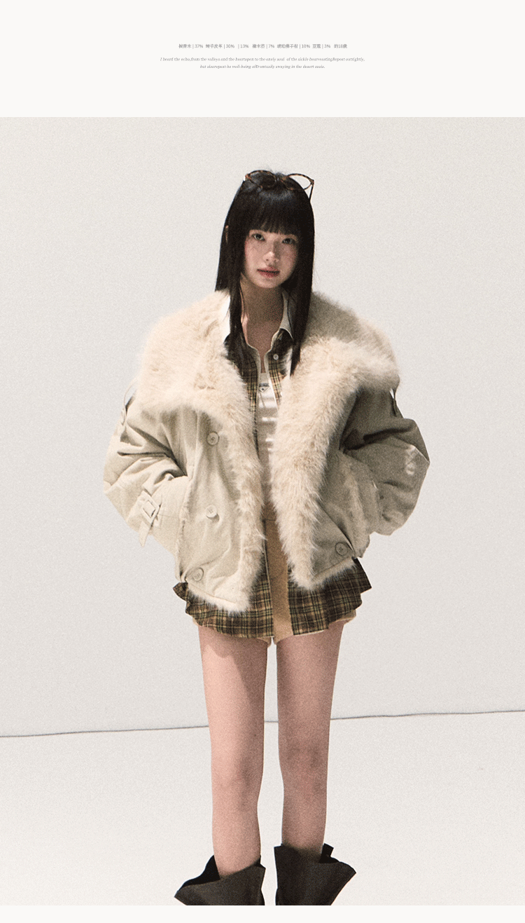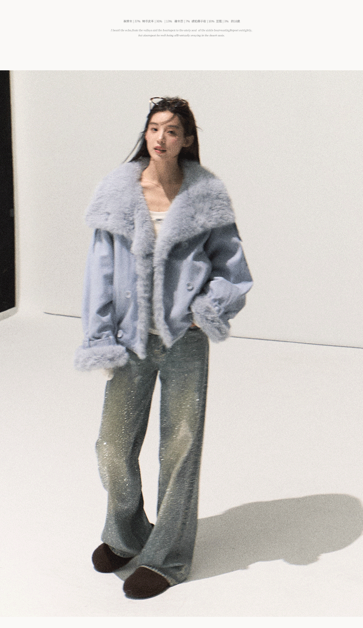 Oakmoo/ "One Night's Osmanthus Tree" Custom-Dyed Heavy-Duty Large Fur Collar Parka Winter Plush Short Thick Coat