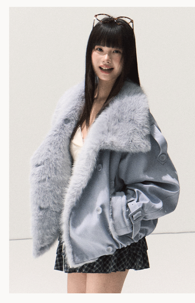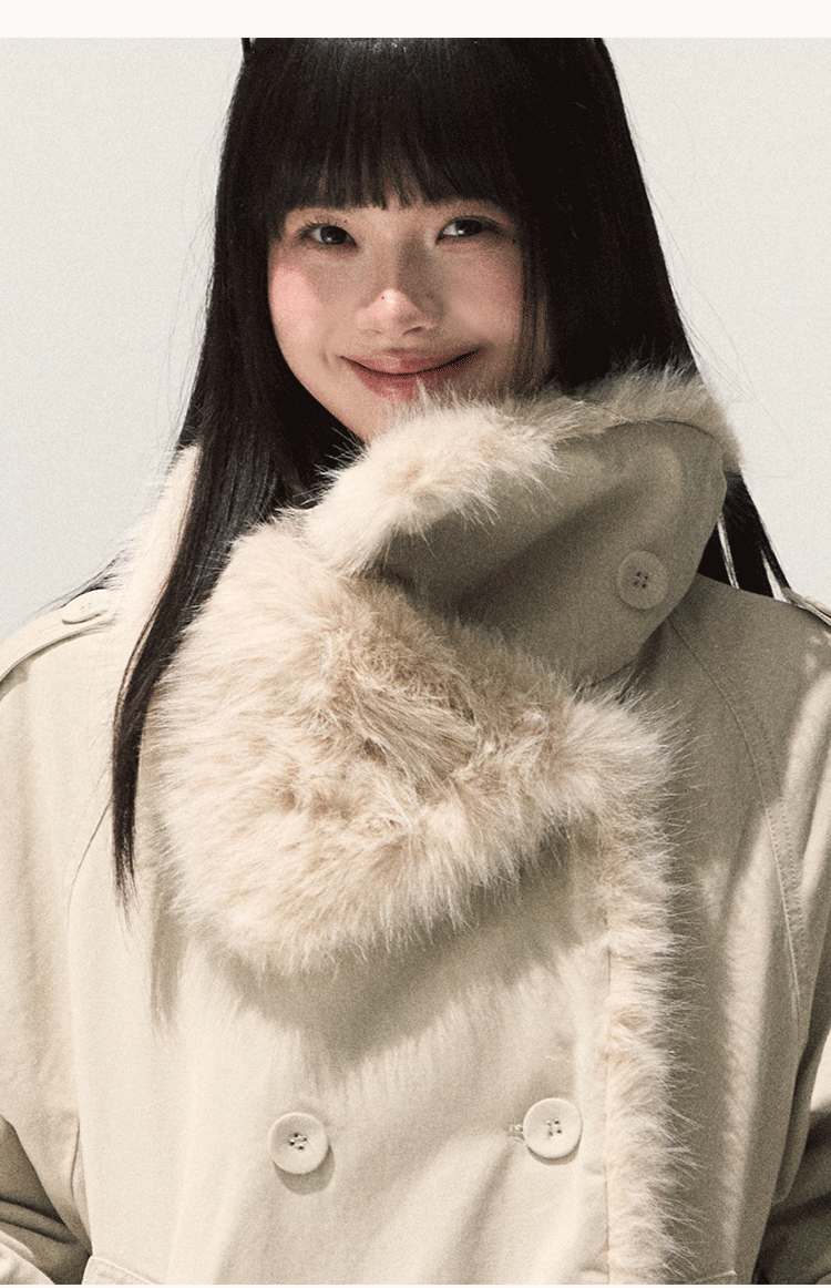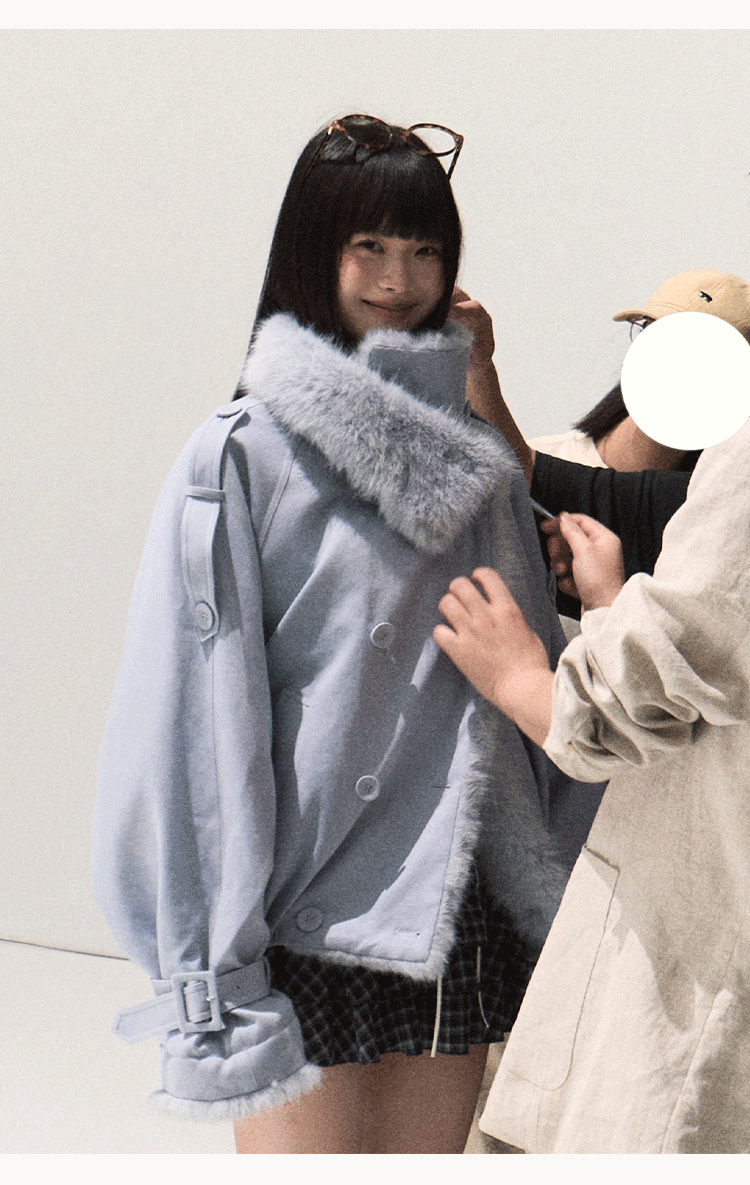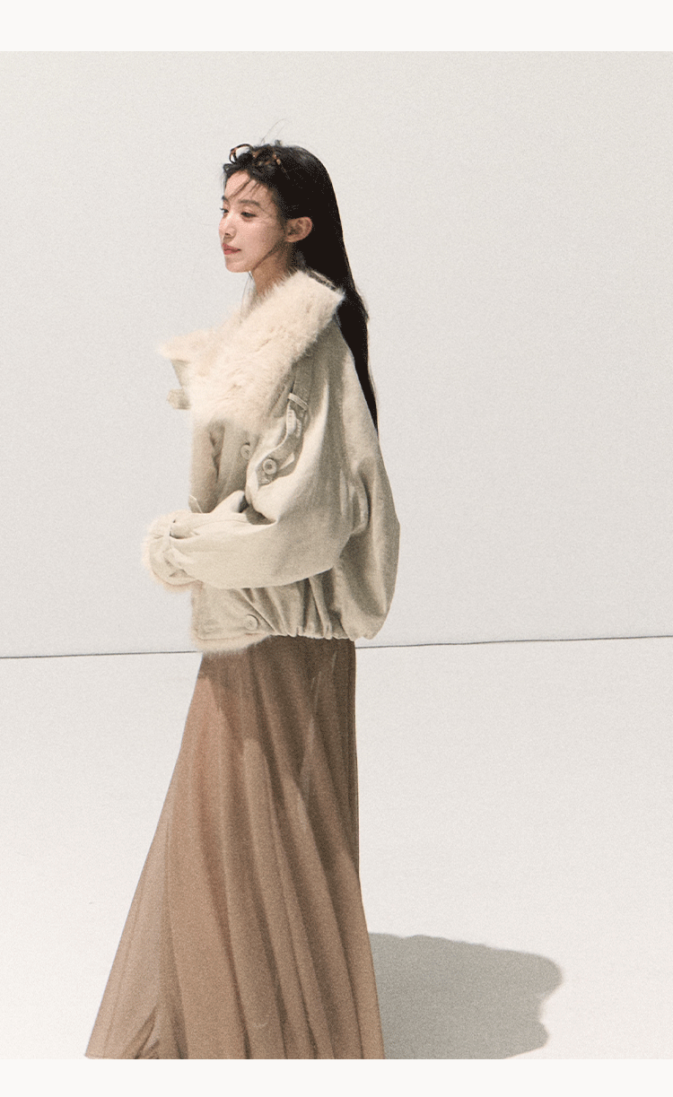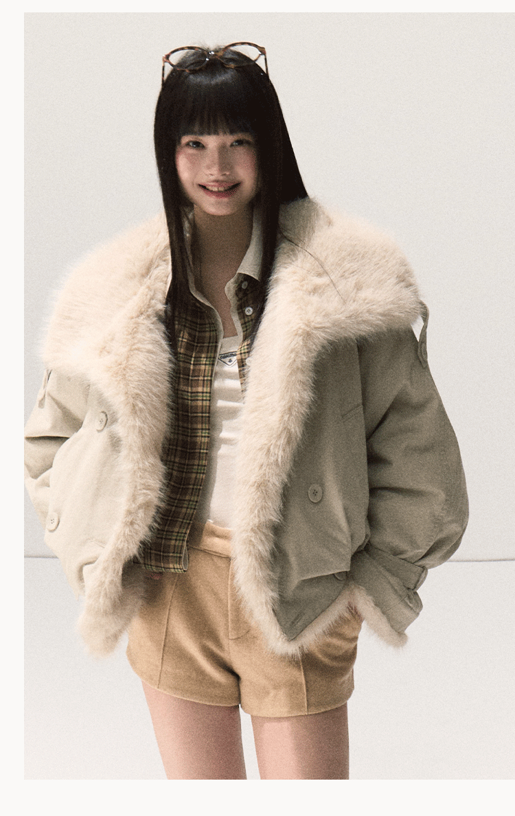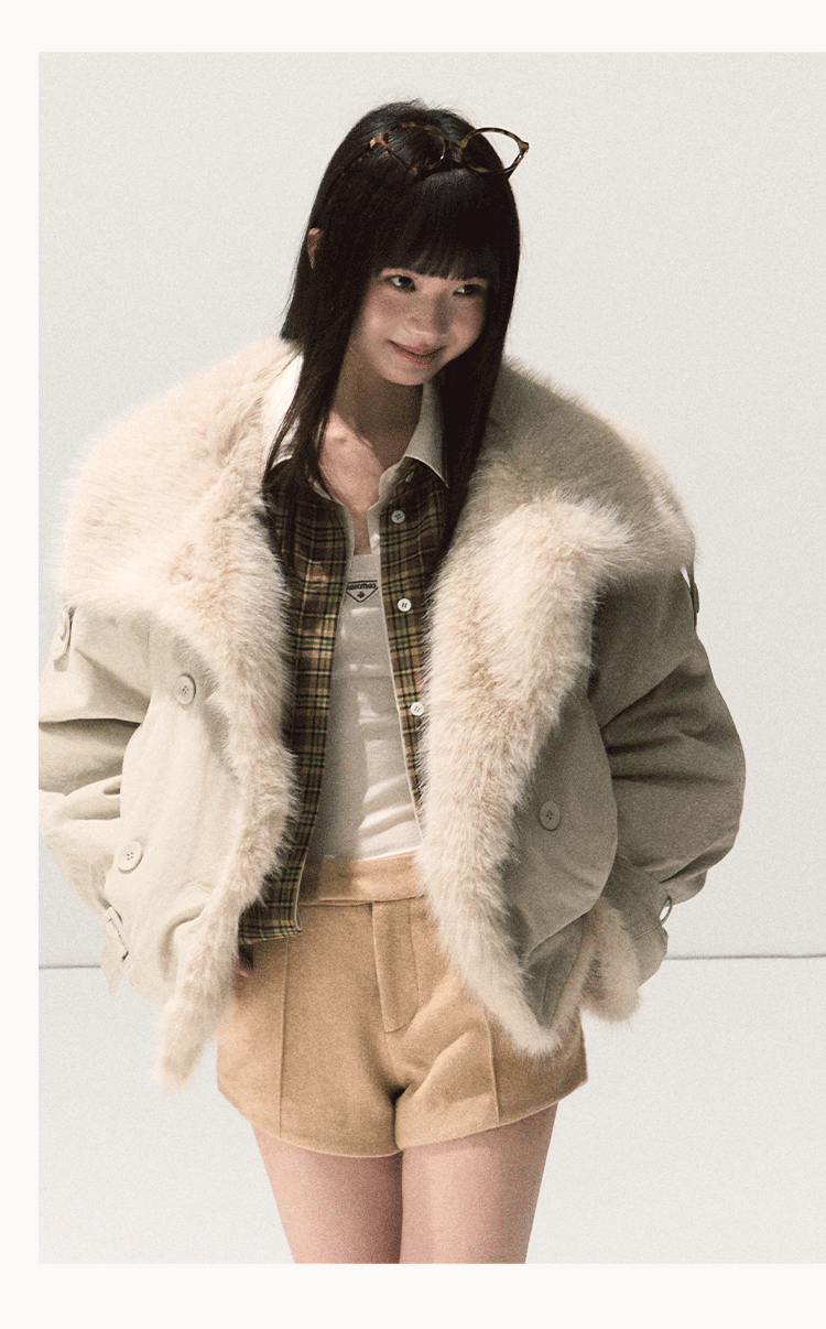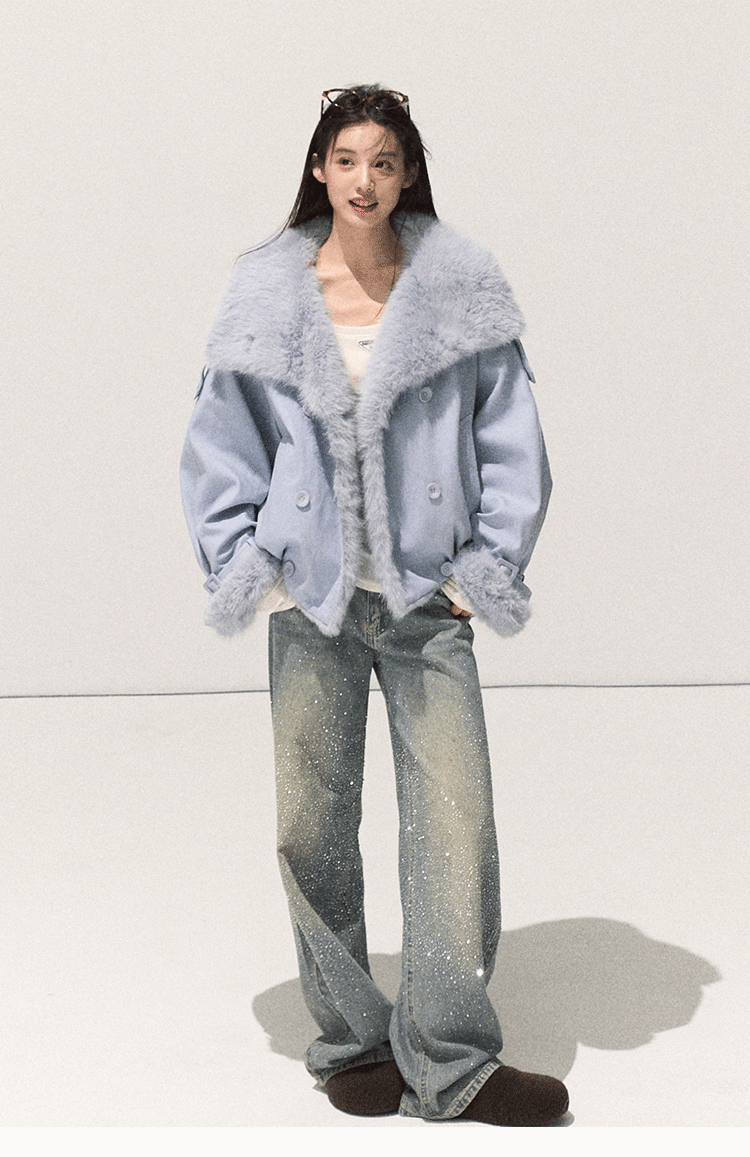 Oakmoo/ "One Night's Osmanthus Tree" Custom-Dyed Heavy-Duty Large Fur Collar Parka Winter Plush Short Thick Coat