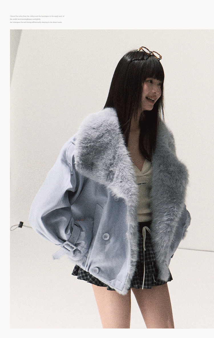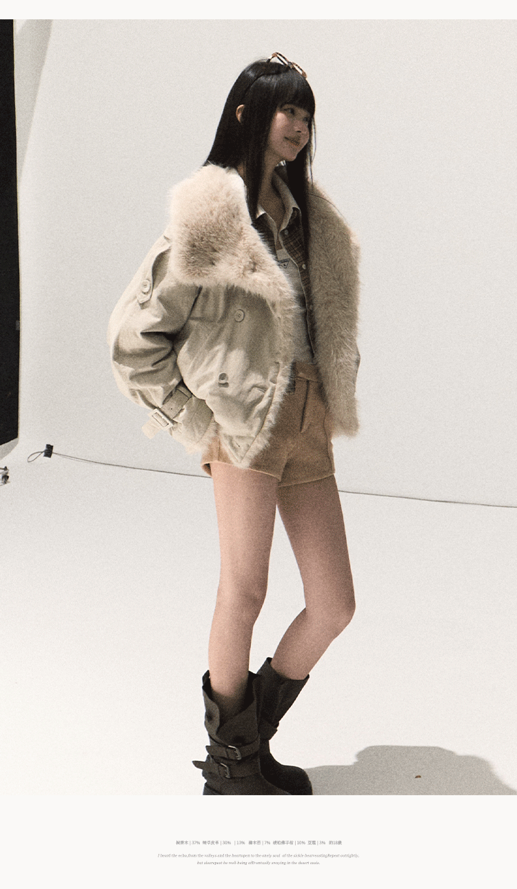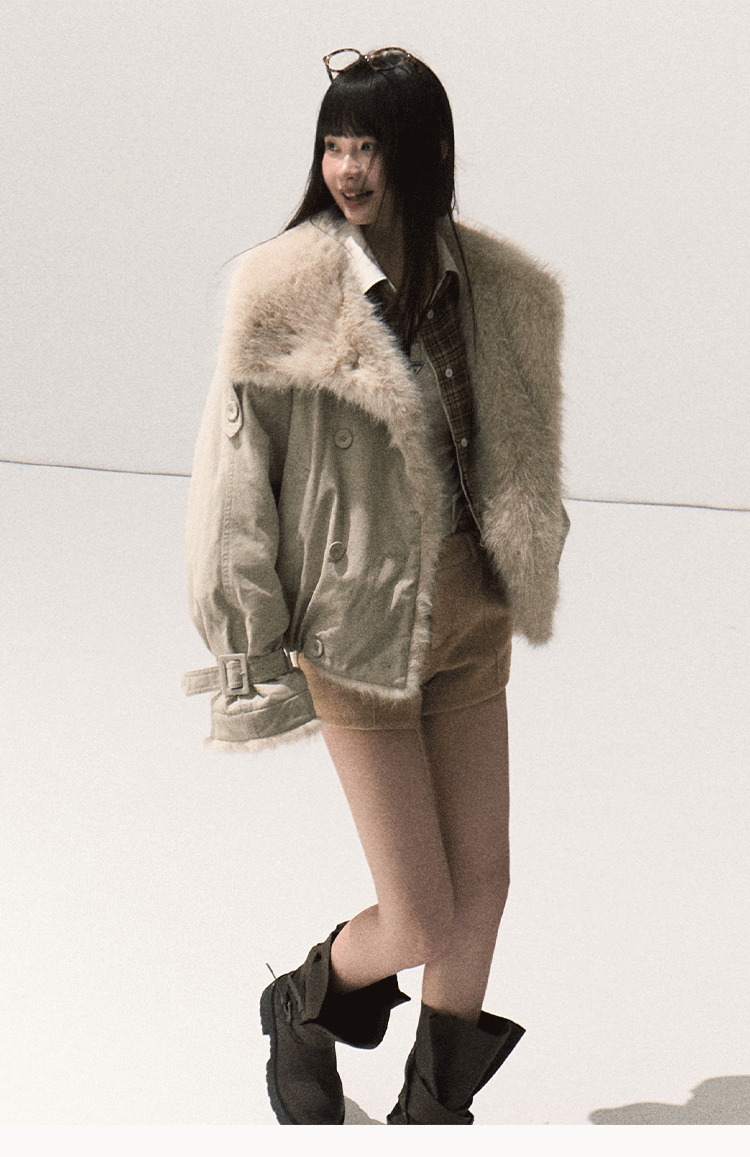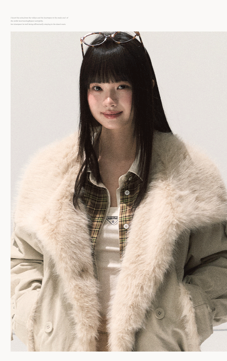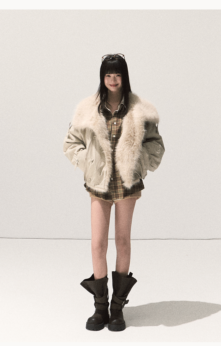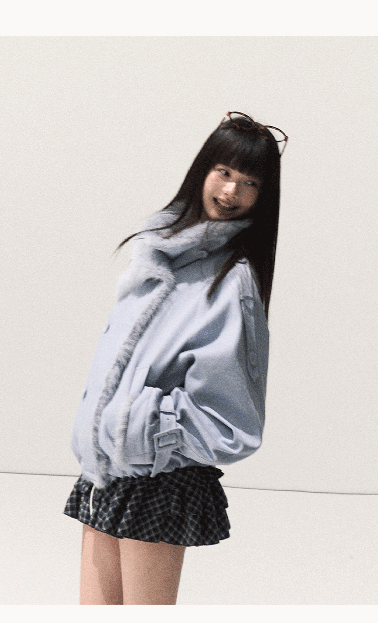 Oakmoo/ "One Night's Osmanthus Tree" Custom-Dyed Heavy-Duty Large Fur Collar Parka Winter Plush Short Thick Coat