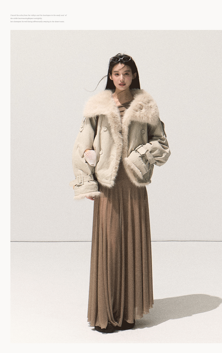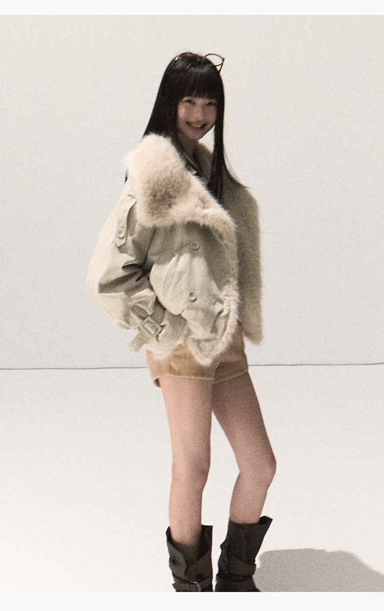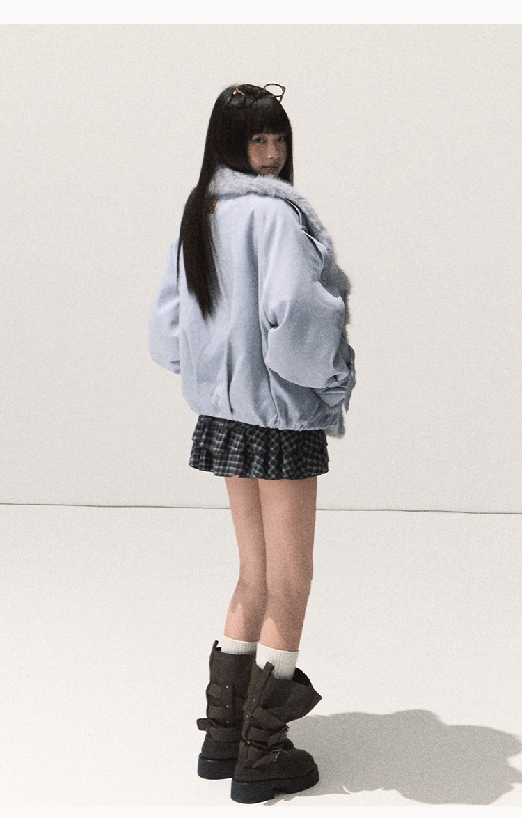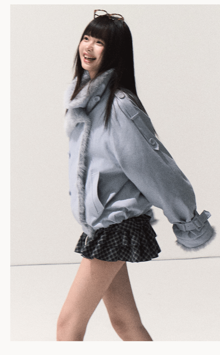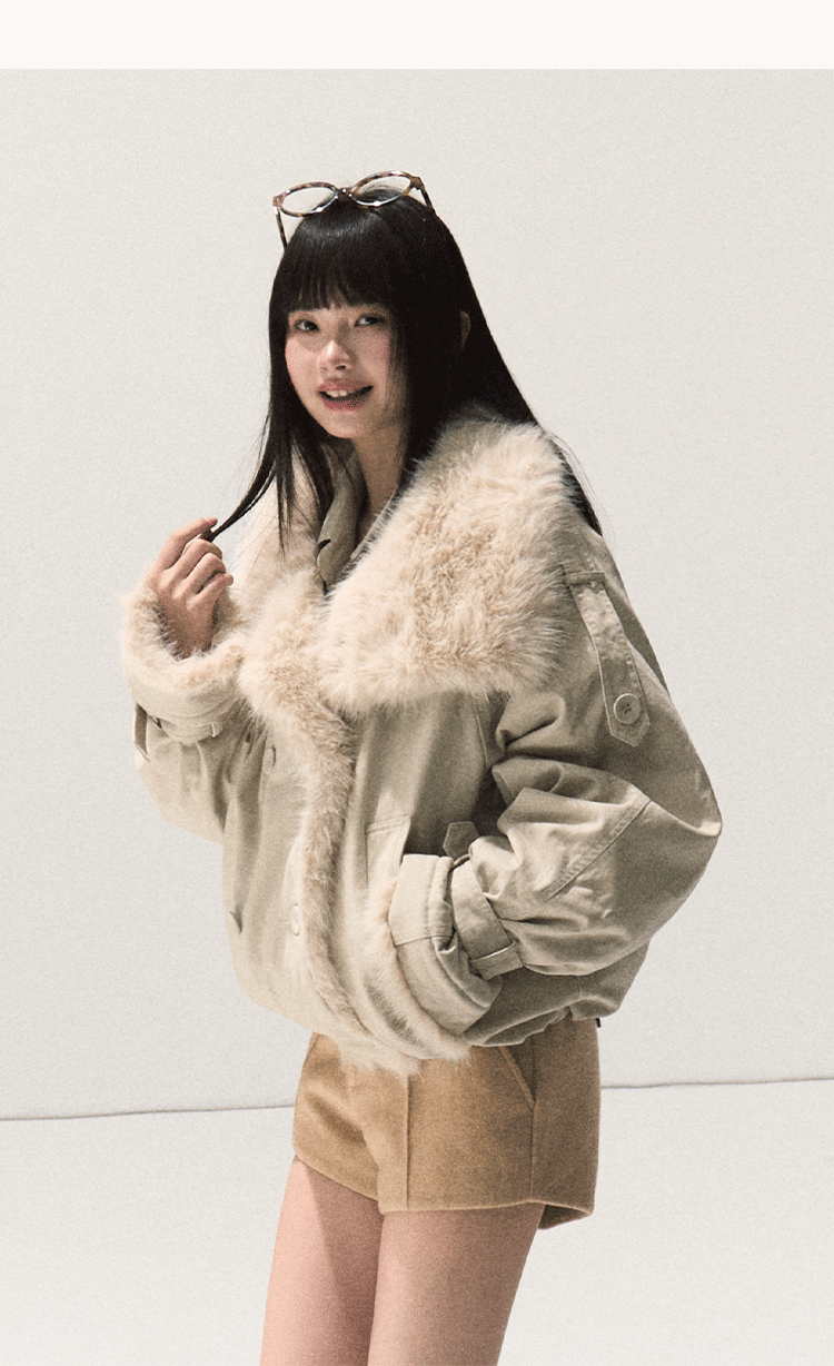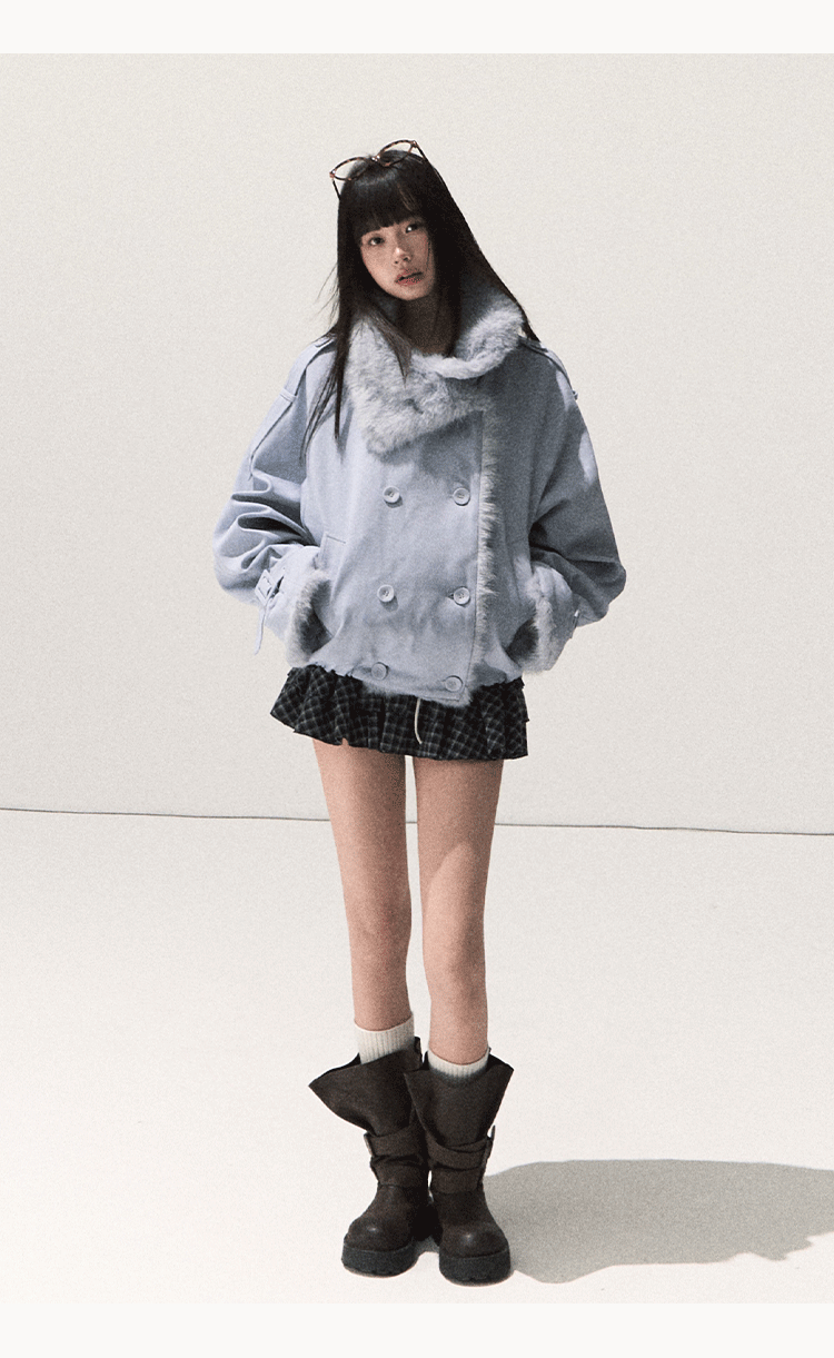 Oakmoo/ "One Night's Osmanthus Tree" Custom-Dyed Heavy-Duty Large Fur Collar Parka Winter Plush Short Thick Coat