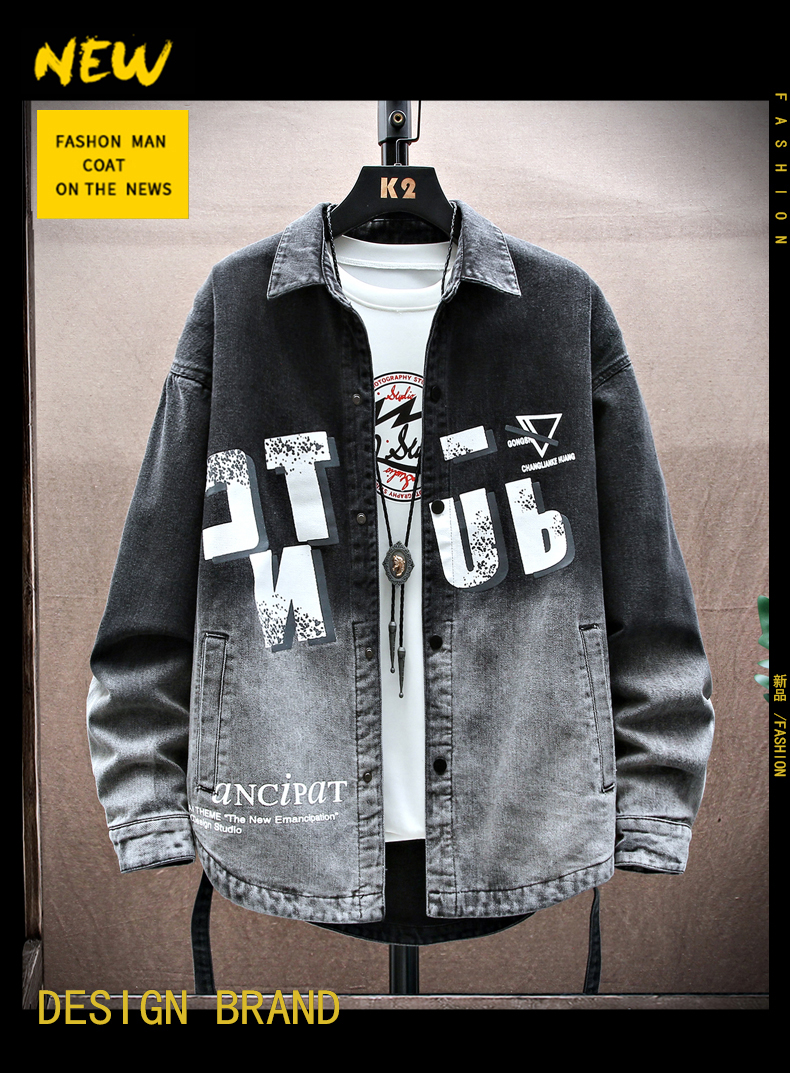 Teenagers 2025 New Spring and Autumn Denim Winter Fleece-Lined Jacket Men's Set with Student Trendy and Handsome Outfit