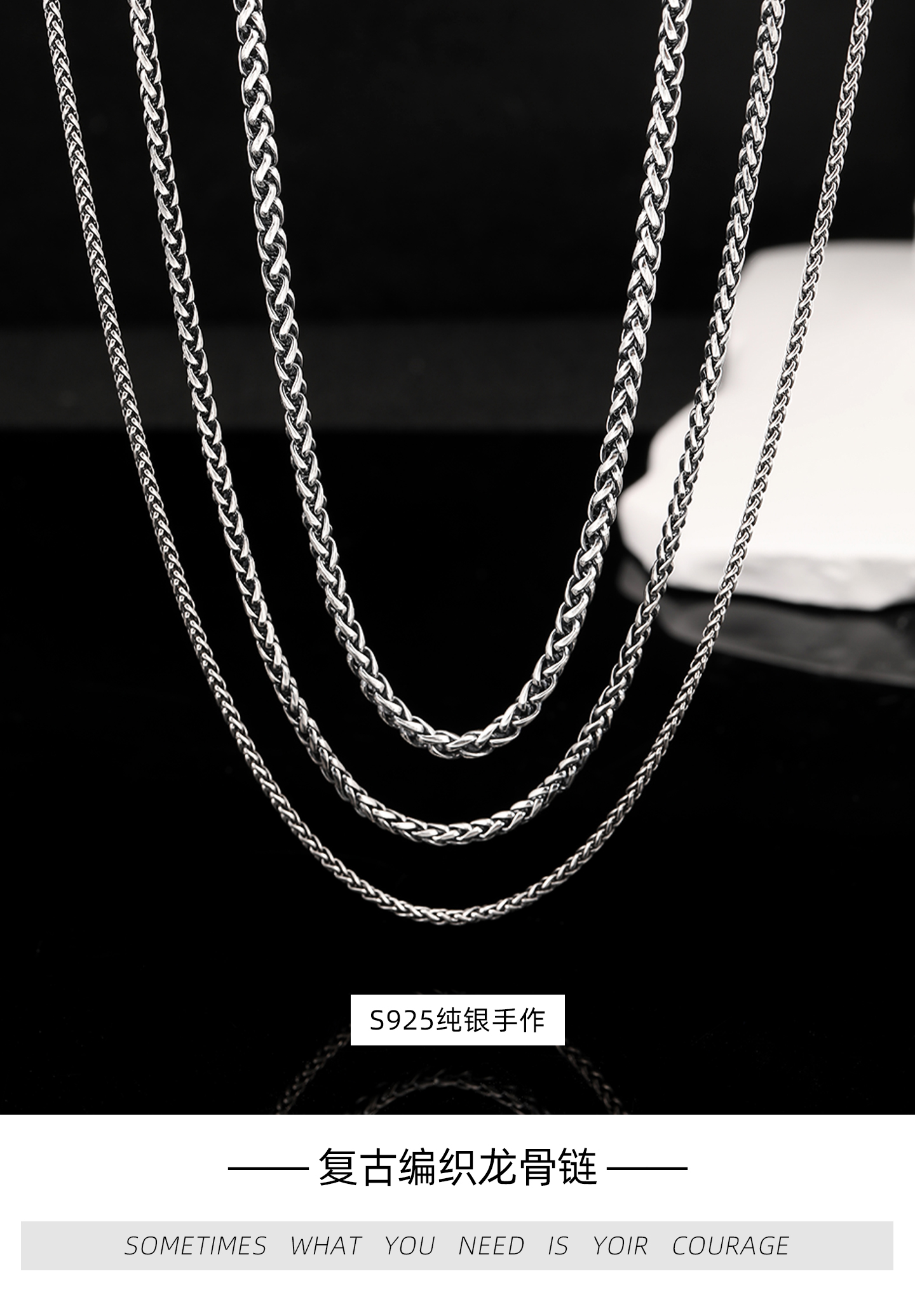 Men's Single-Layer Thick Necklace, Heavy-Duty 4mm Dragon Bone Chain, All-Over 925 Sterling Silver, Vintage Distressed Chopard Chain, Bare Chain, Plain Chain