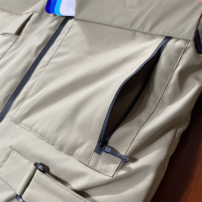 下摆两侧拉链双袋 手臂单个磁吸扣口袋