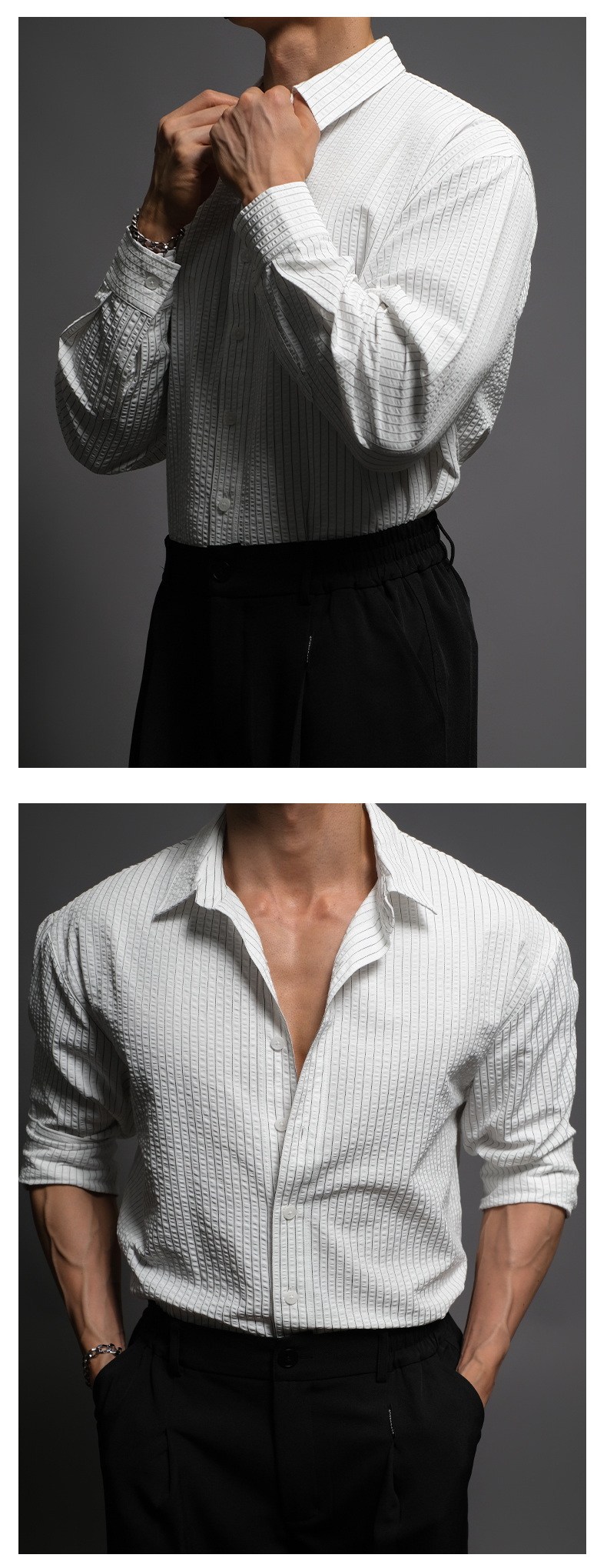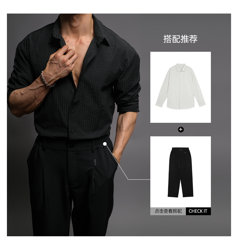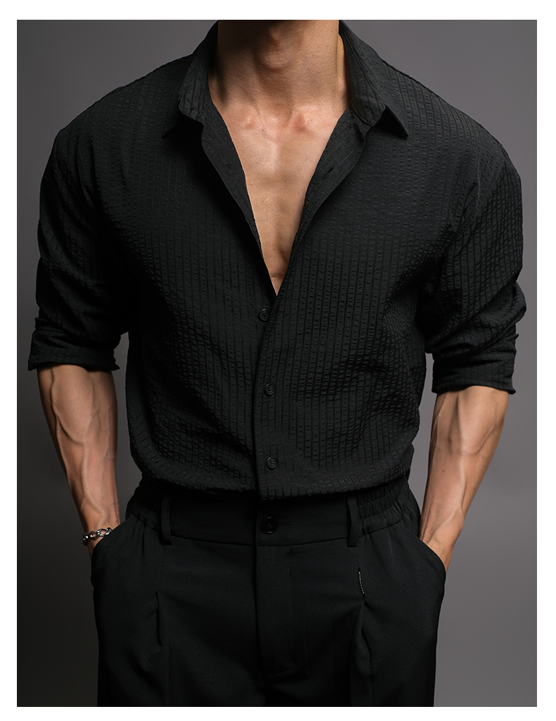 Seersucker Bd Fitness Station Old Money Style White Long-Sleeve Workout Shirt Men's Black Casual Italian-Style Shirt Men