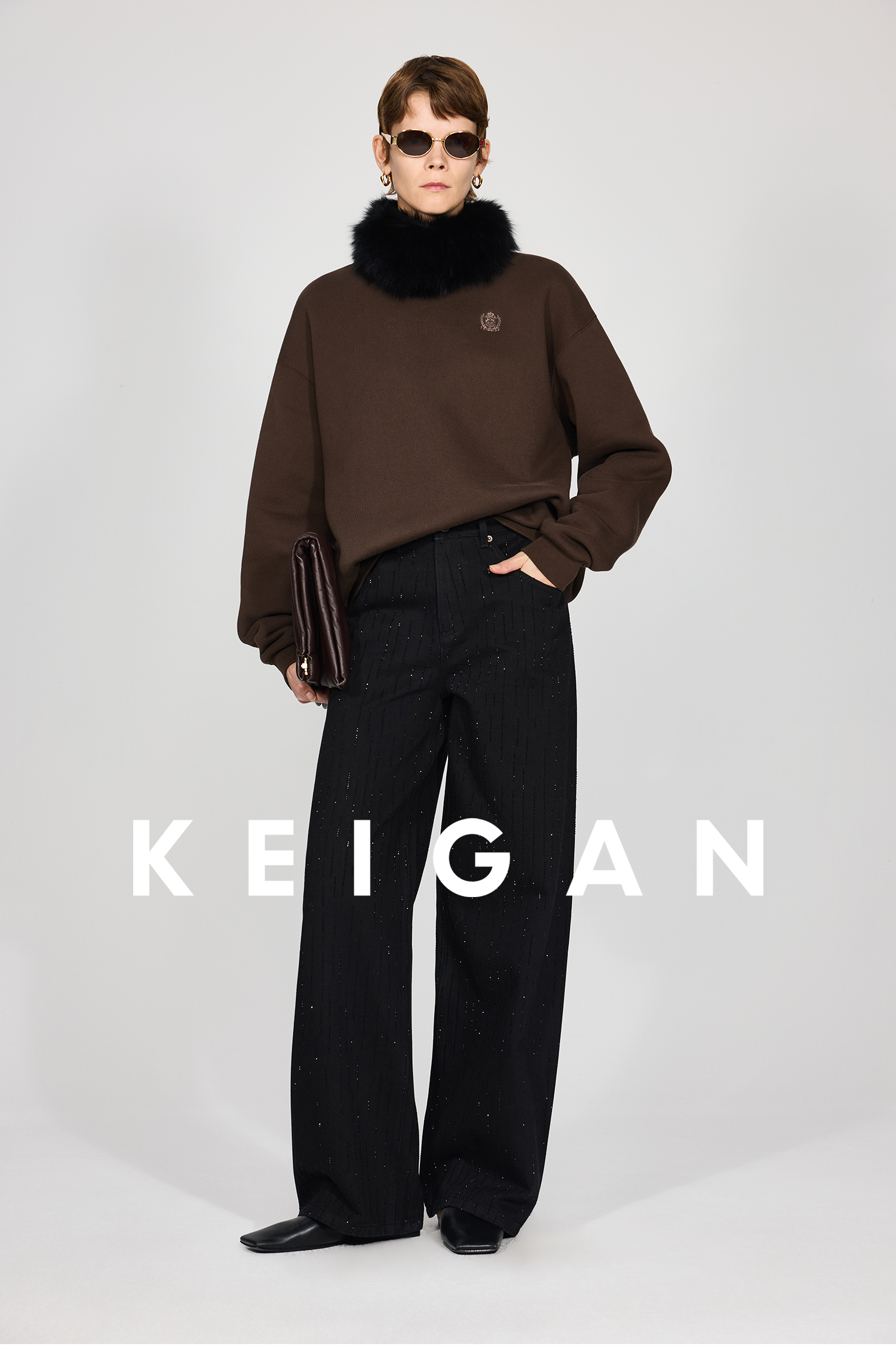 High-End/Chic European Imported Sparkling Rhinestone Modern Mid-Rise Straight Leg Meteor Shower Jeans