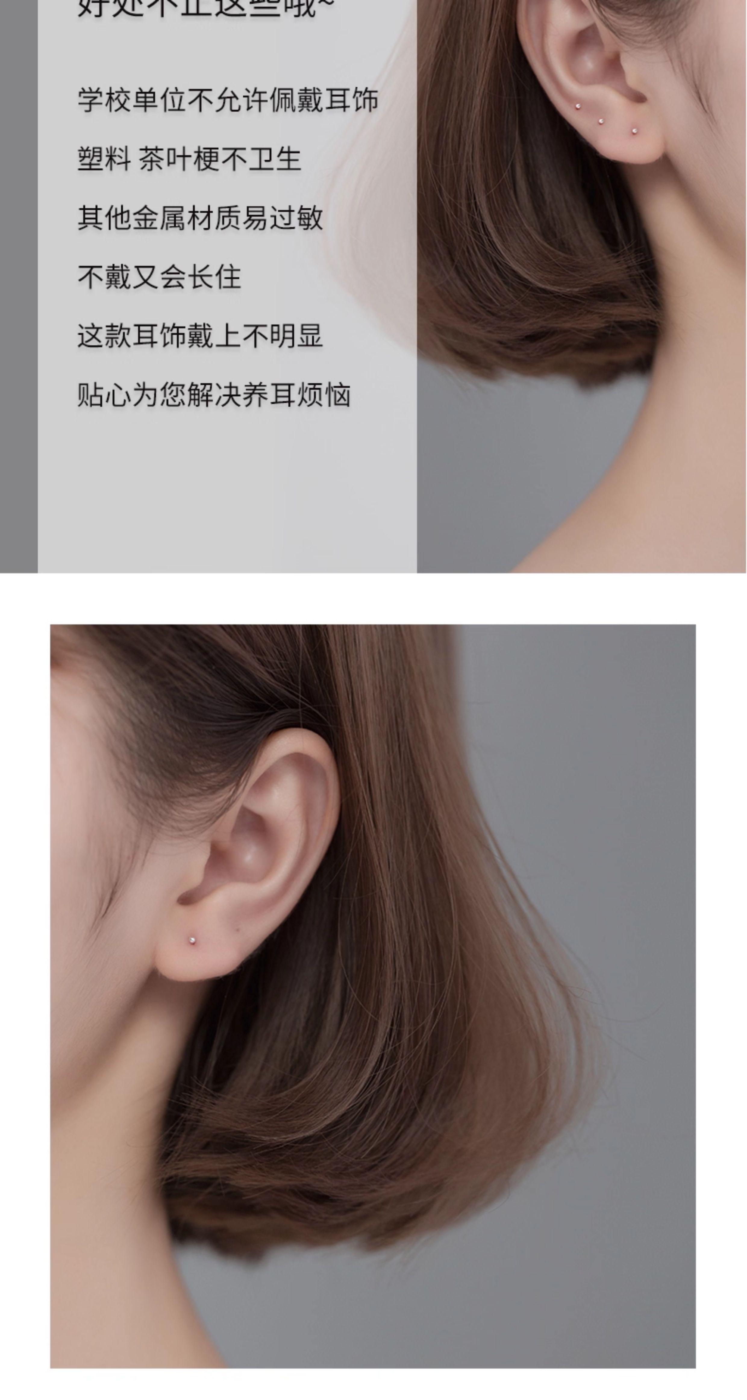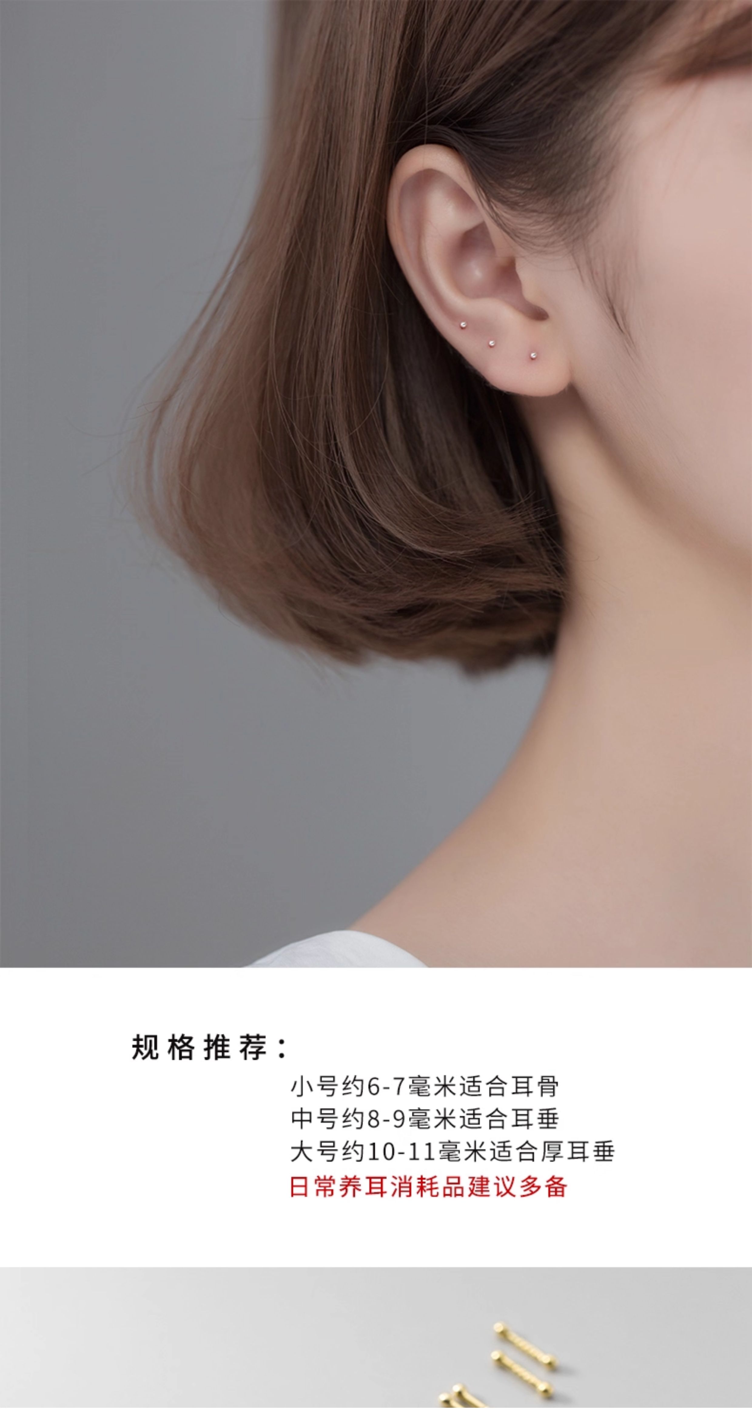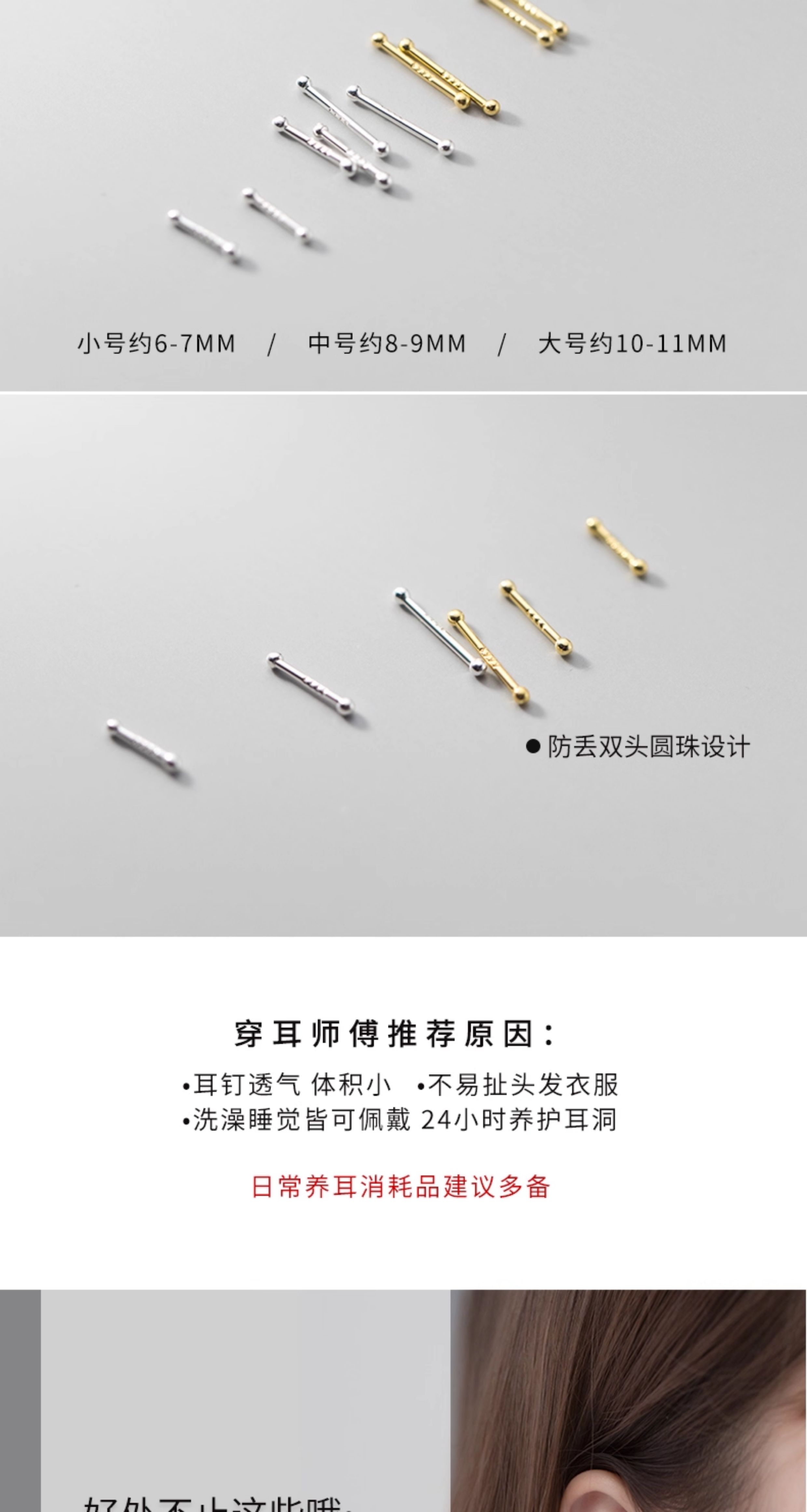 S999 Pure Silver Earrings for Women, Double-Ended Ear Studs, 2025 New Ear Piercing Studs, Ear Bone Studs, Sleep Without Removing, Mini Invisible Earrings