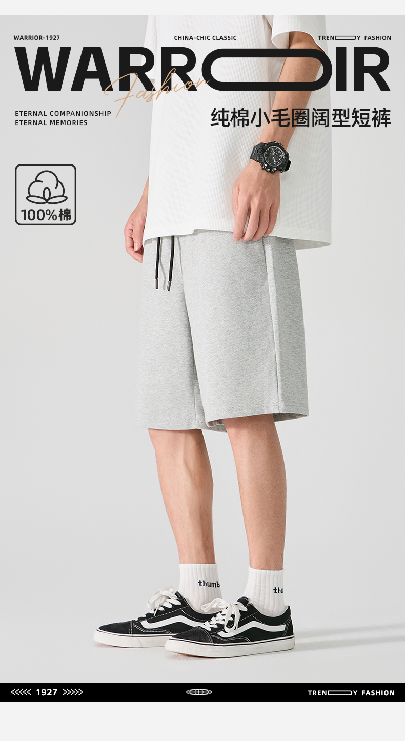 Pull-Back Pure Cotton Sports Shorts for Men, Summer Outerwear, Straight-Leg, Large Size Casual Pants, Men's American-Style Five-Point Shorts, Thin