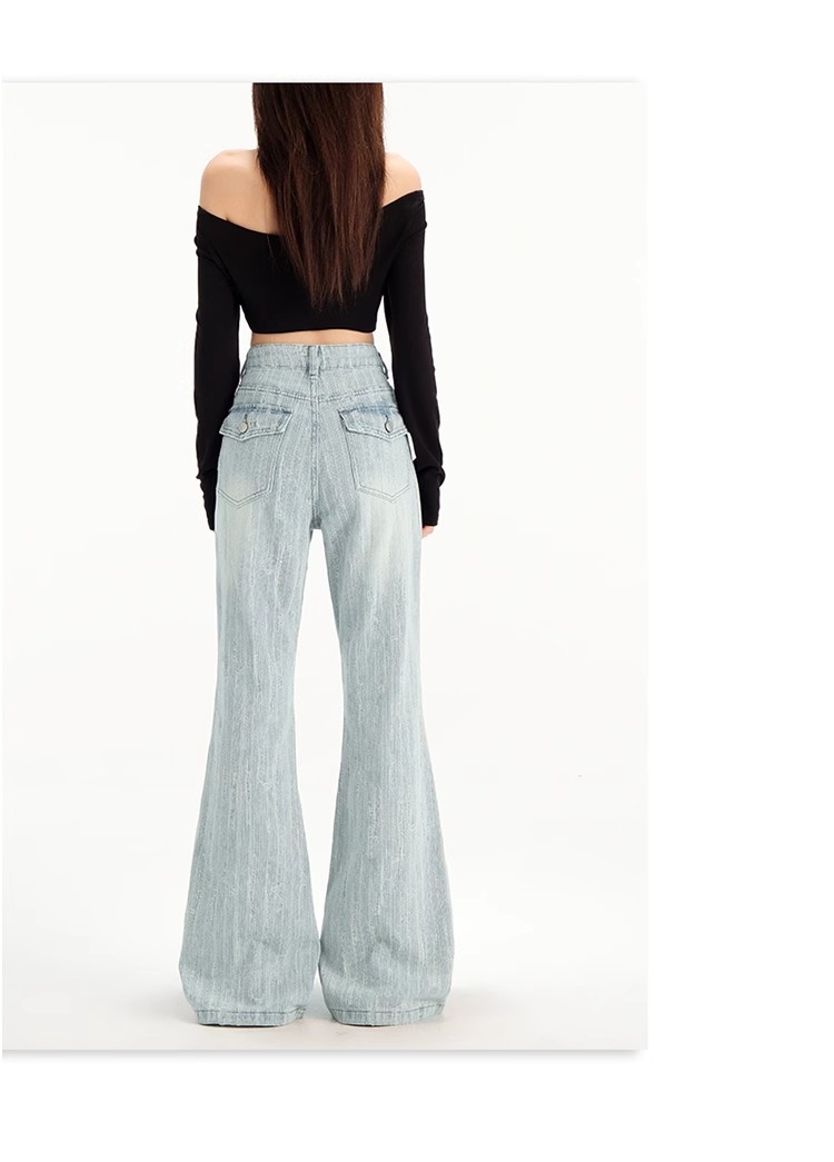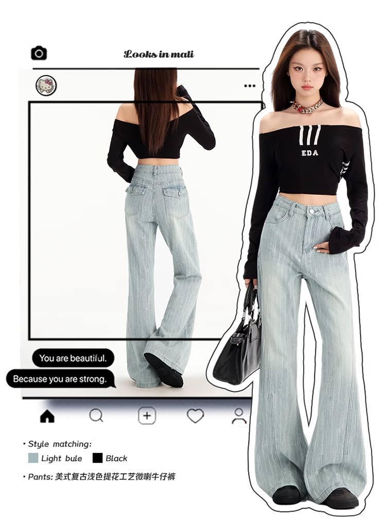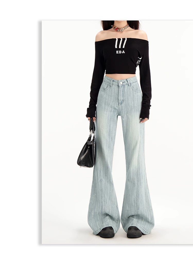Light-Colored Jacquard Flared Jeans for Women, Autumn and Winter 2025 New Style, High-Waisted, Non-Tight, Petite Bootcut Pants