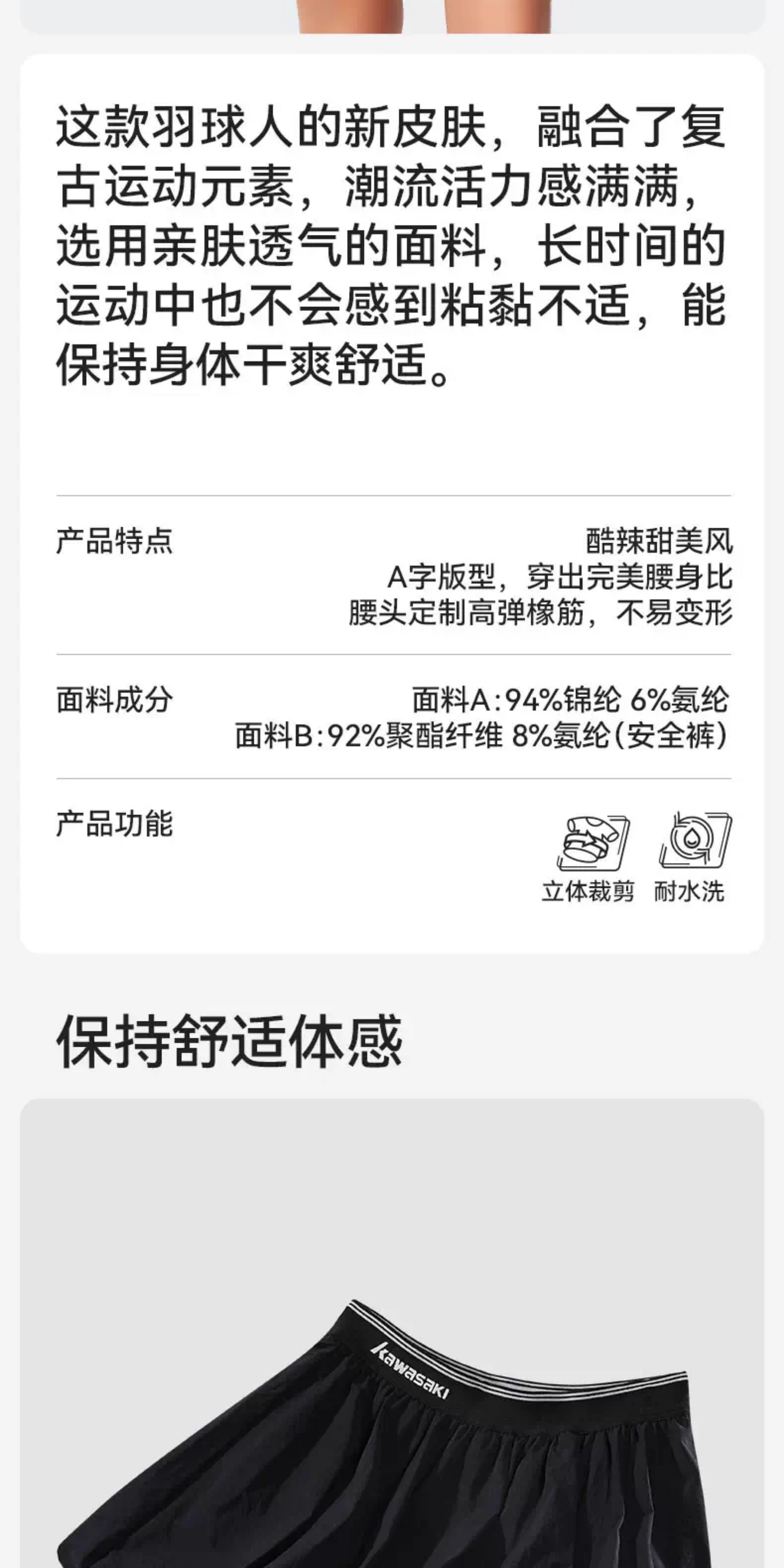 Kawasaki Small Waist Badminton Skirt Summer Women's Quick-Drying Breathable Casual Tennis Sports Skirt