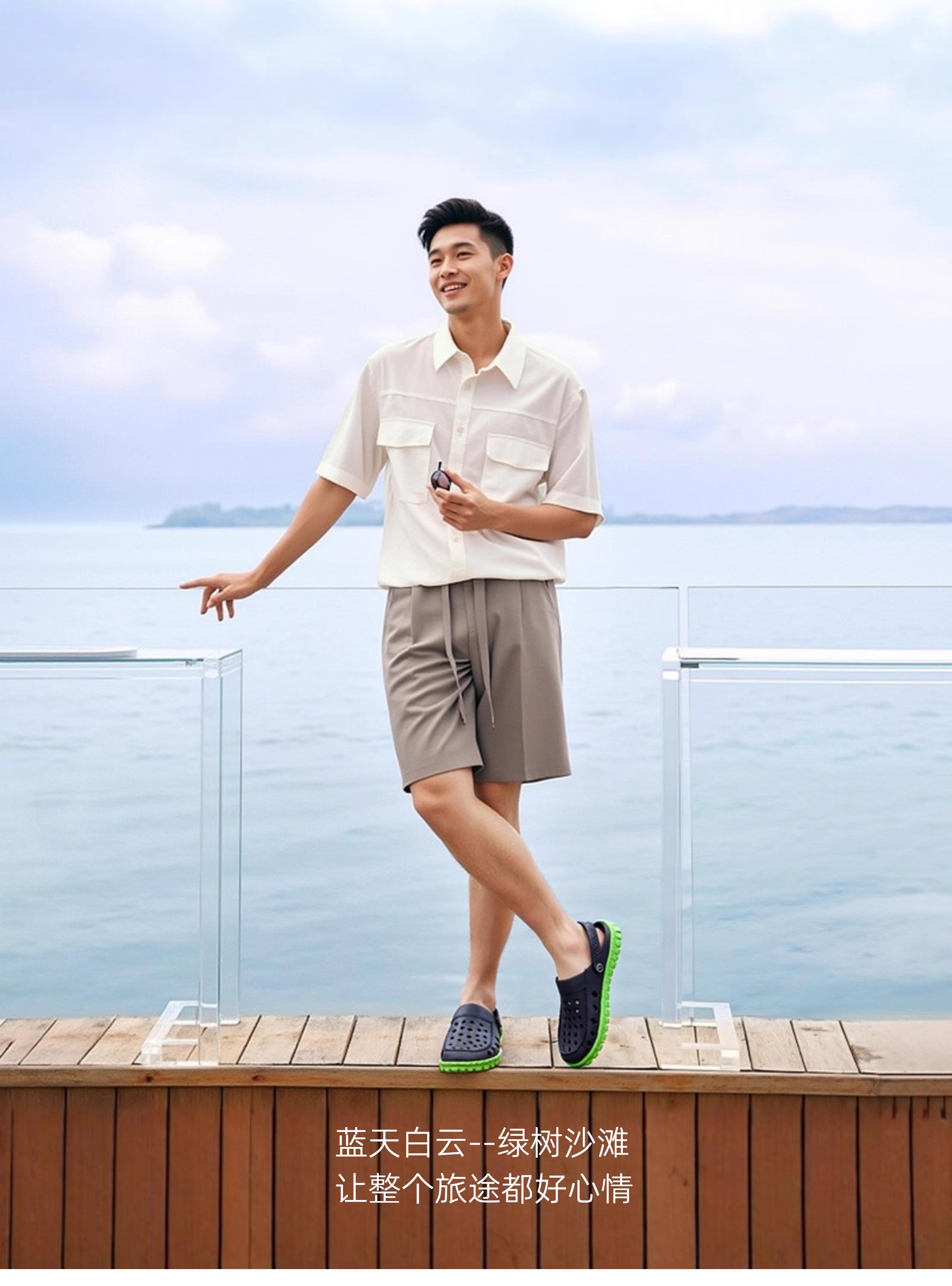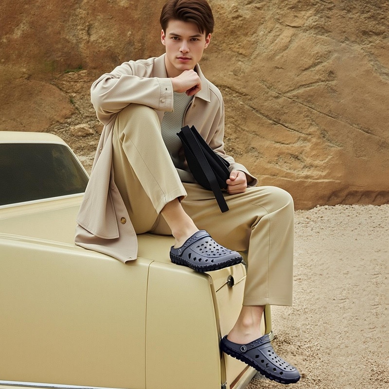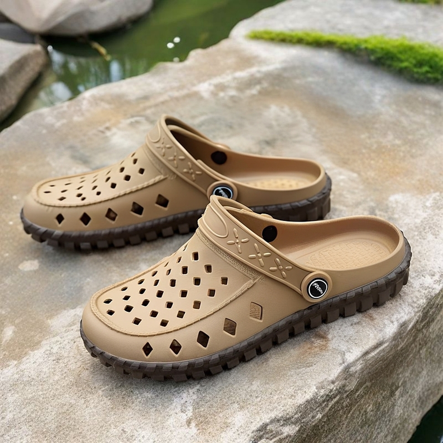 Original Imported Vietnamese Rubber Clogs for Men, Hainan Travel Beach Shoes, Size 46, Soft, Breathable, Non-Stinky