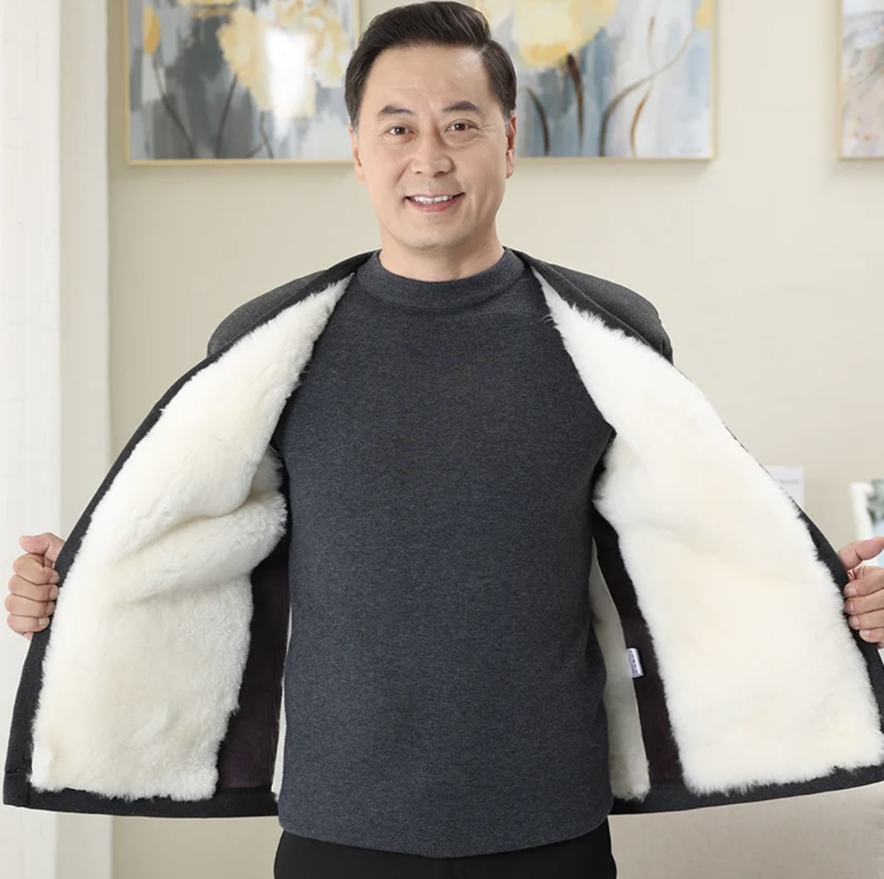New Wool-Lined Jacket for Middle-Aged and Elderly People, Fur-Lined Cotton Coat, Sheepskin Jacket, Short Cotton Jacket for Dad, Winter Cotton Clothing