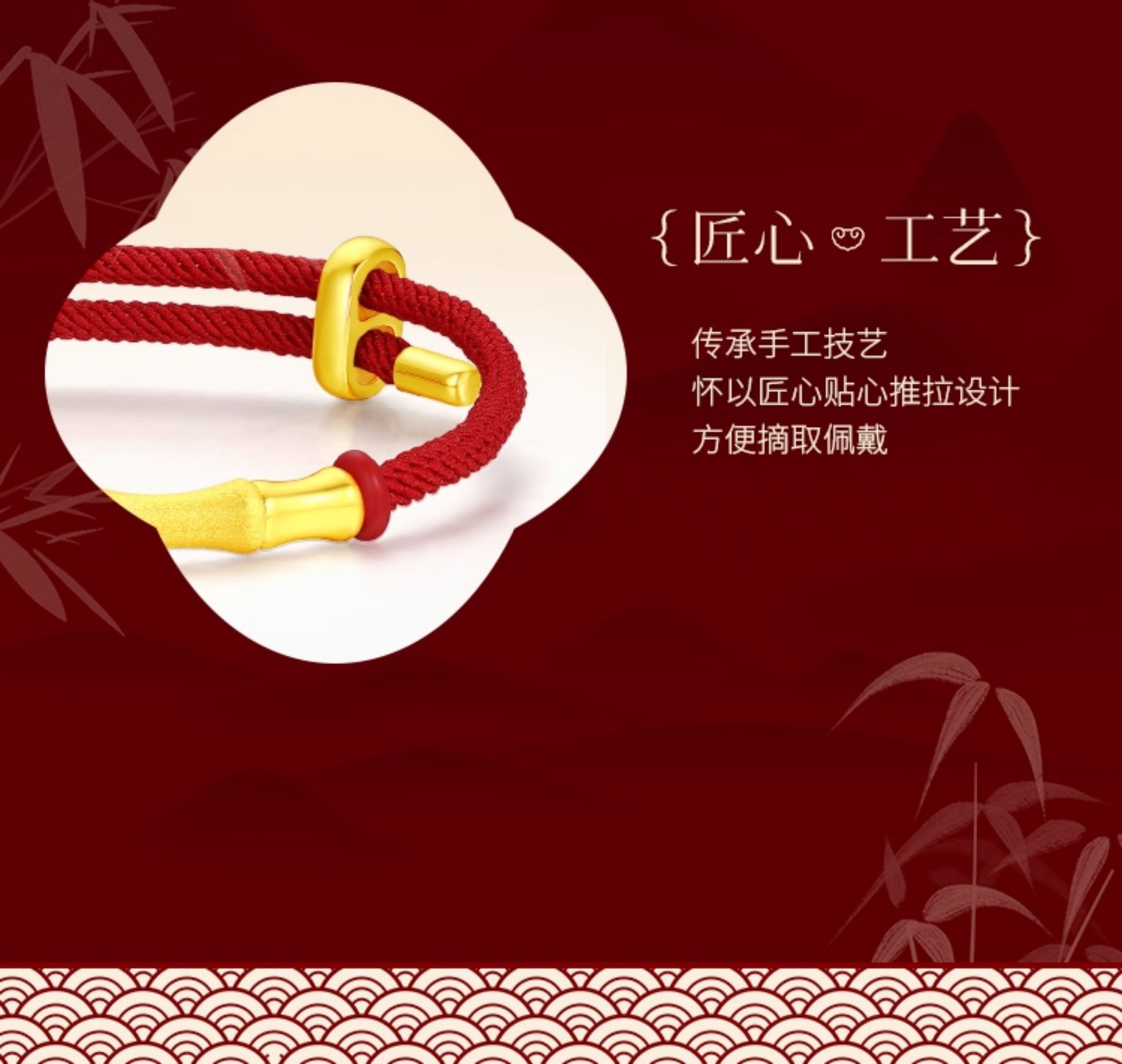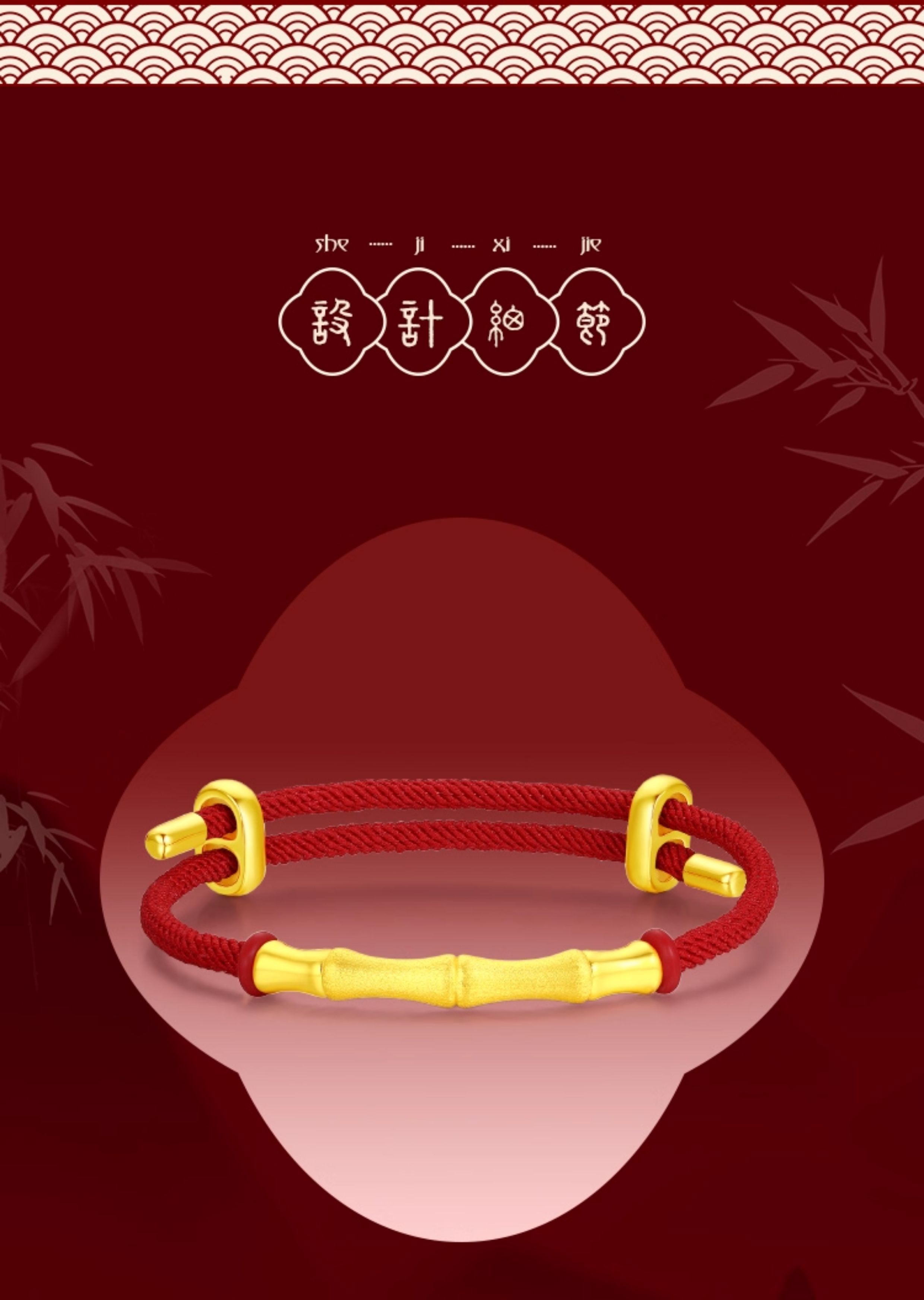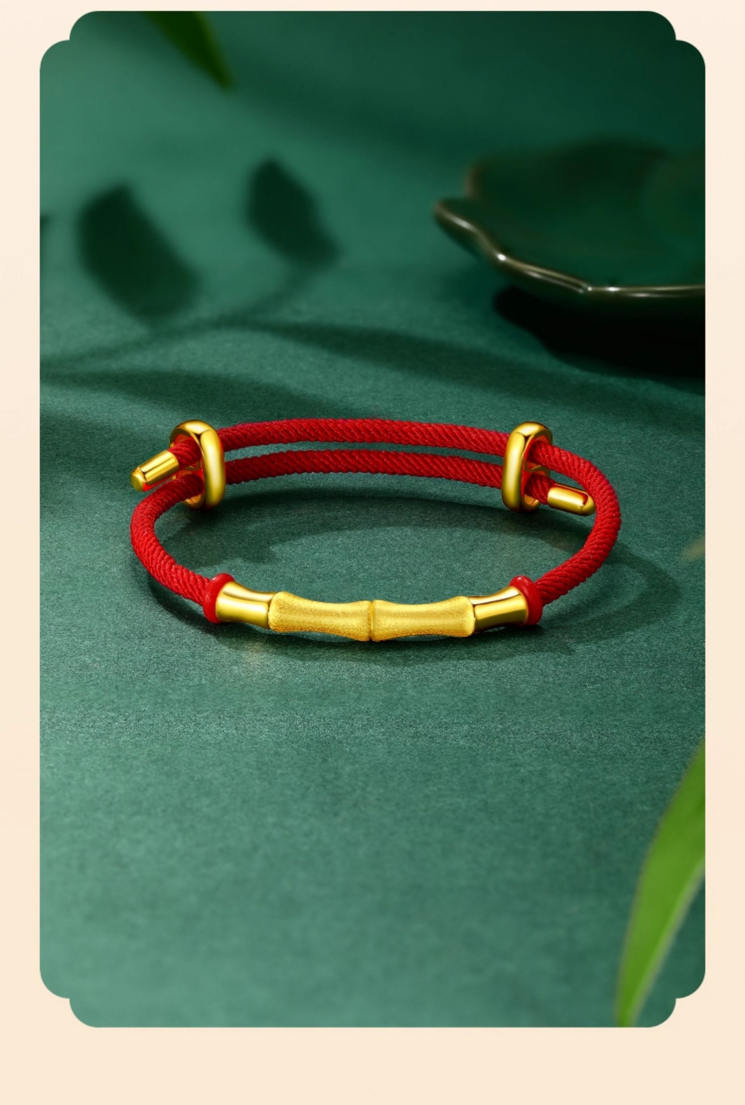 Loving Gold Bamboo Couple Bracelet 999 Pure Gold 3D Hard Gold Bamboo Bring Peace Braided Bracelet for Men and Women