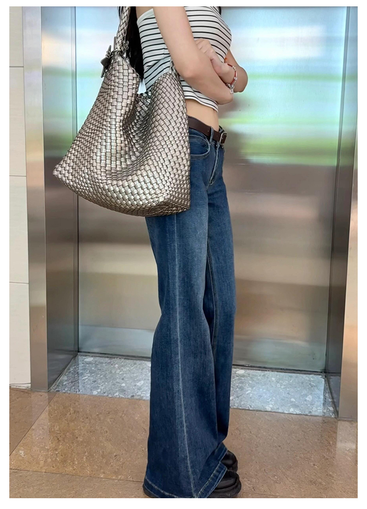 Dark Blue Low-Waisted Flared Jeans for Women, Autumn Fleece-Lined, American Retro, Non-Tight, Stretchy, Straight-Leg Bell-Bottom Pants