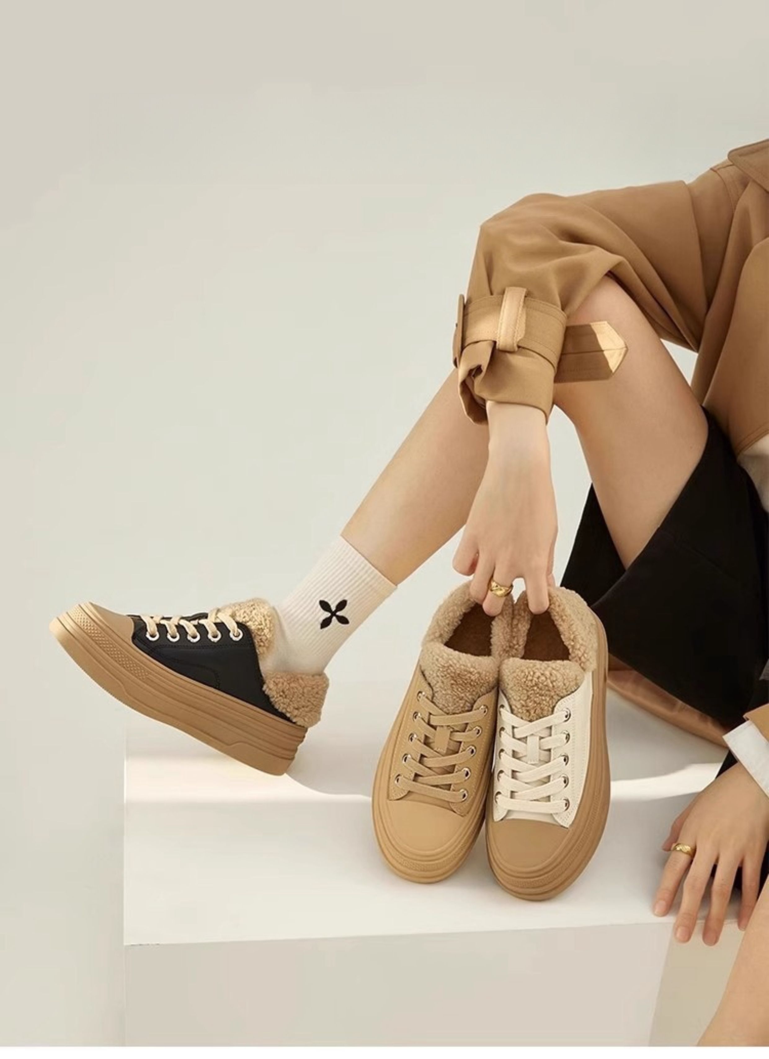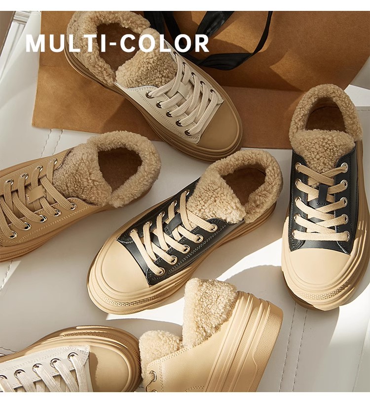 Hong Kong 2025 Spring and Autumn New Style Women's Trendy Thick-Soled Casual Sneakers with Fleece Lining, Leopard Print Furry Shoes for Outdoor Wear