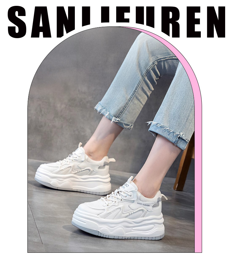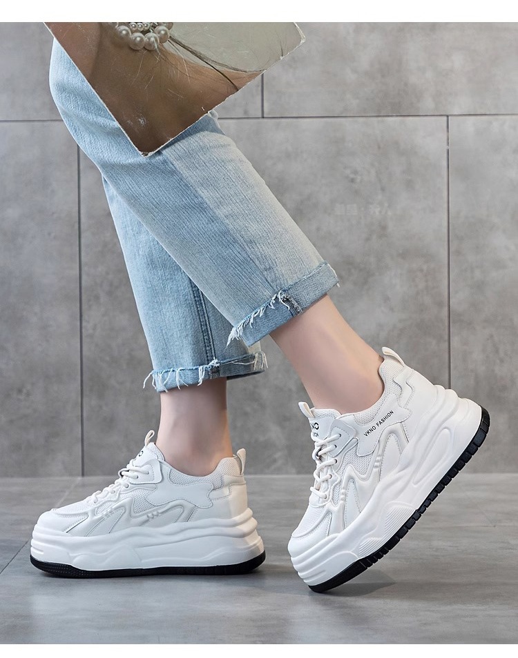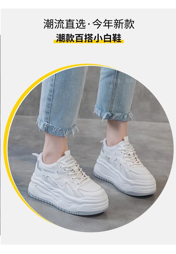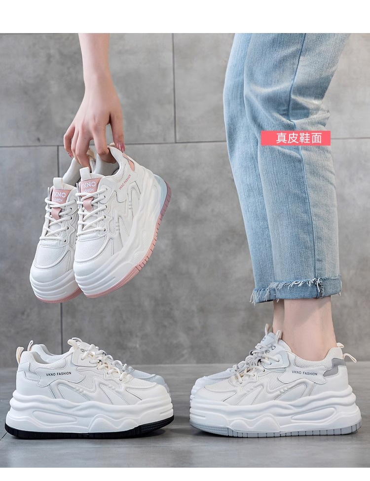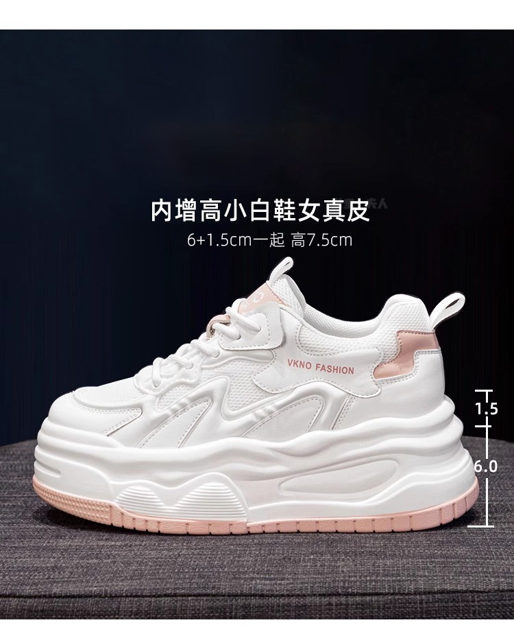 Sanli Genuine Leather Inner Height-Increasing White Sneakers for Women 2025 Summer New Breathable Thick-Soled Casual Sneakers Lightweight Sports Shoes