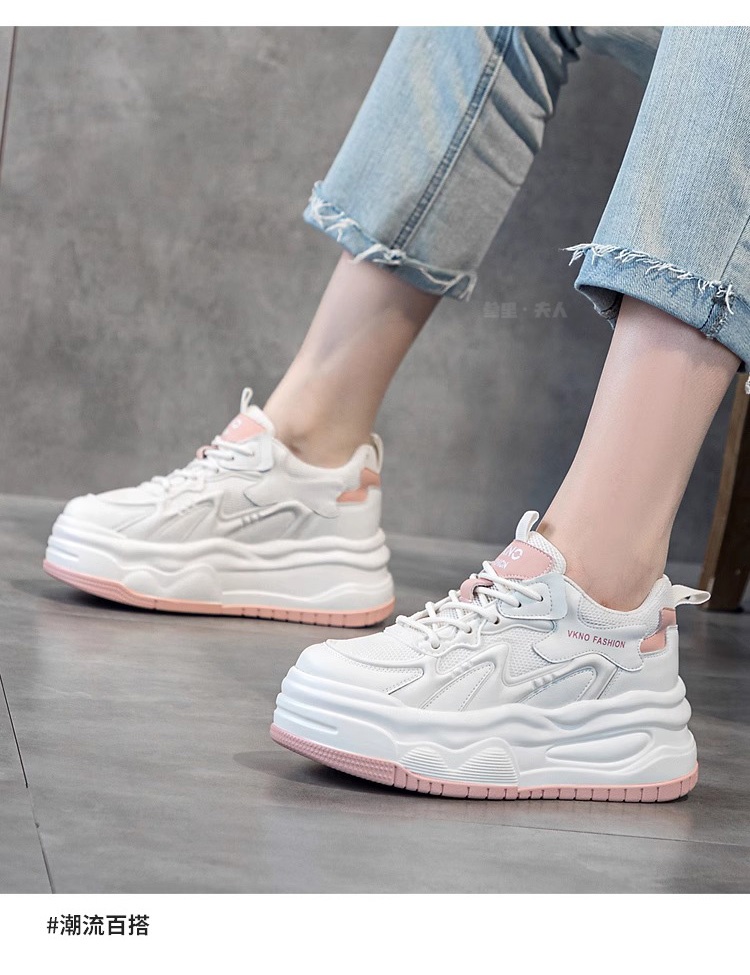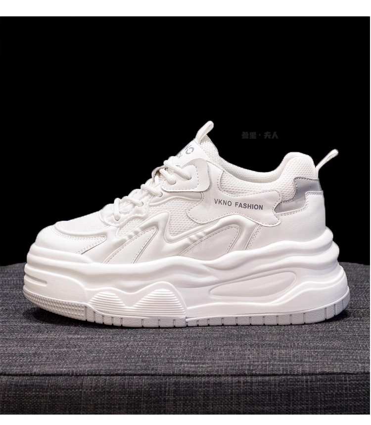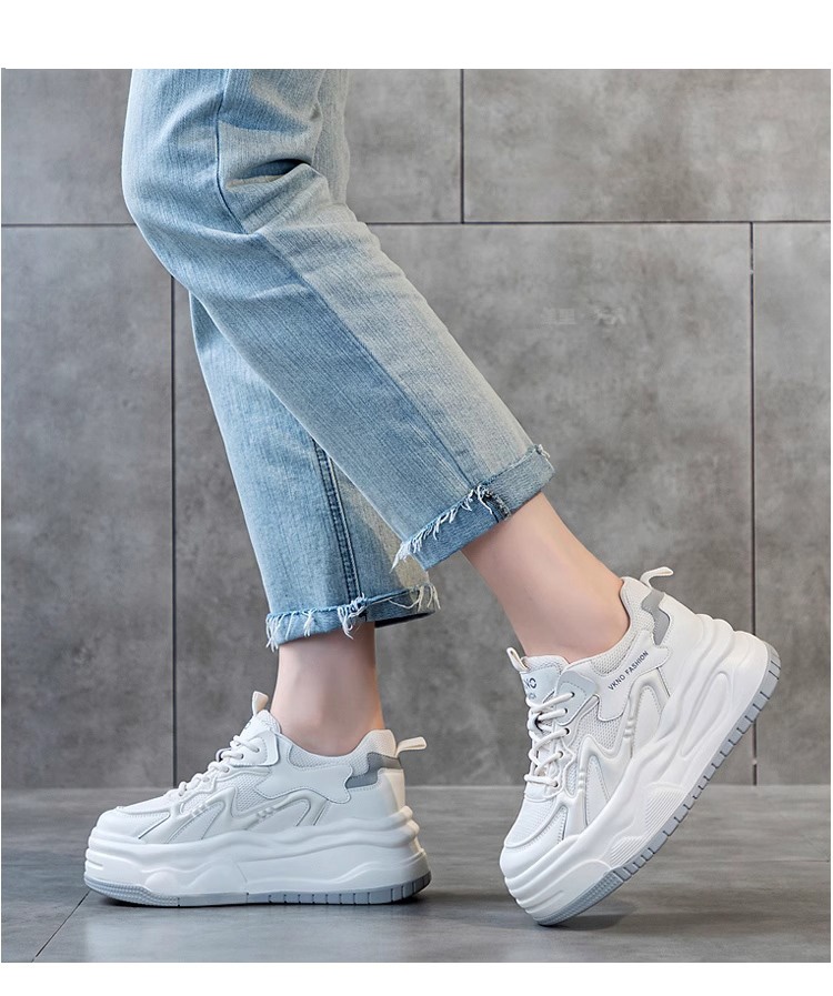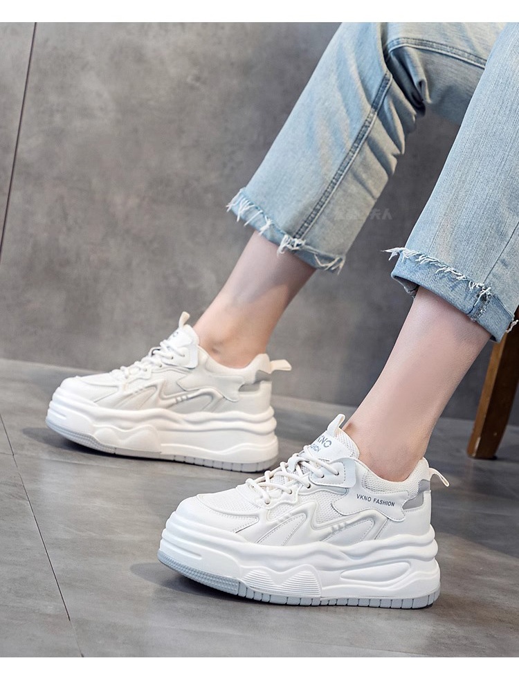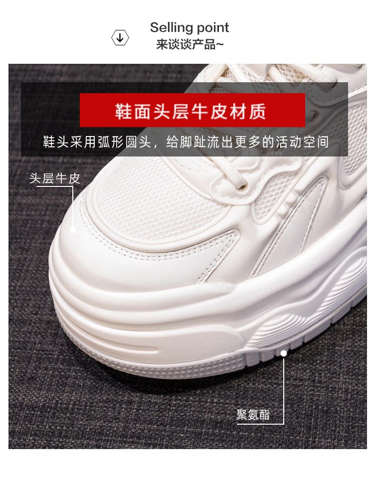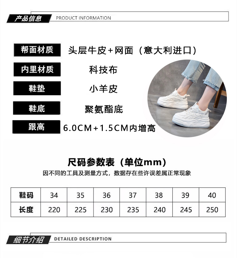 Sanli Genuine Leather Inner Height-Increasing White Sneakers for Women 2025 Summer New Breathable Thick-Soled Casual Sneakers Lightweight Sports Shoes