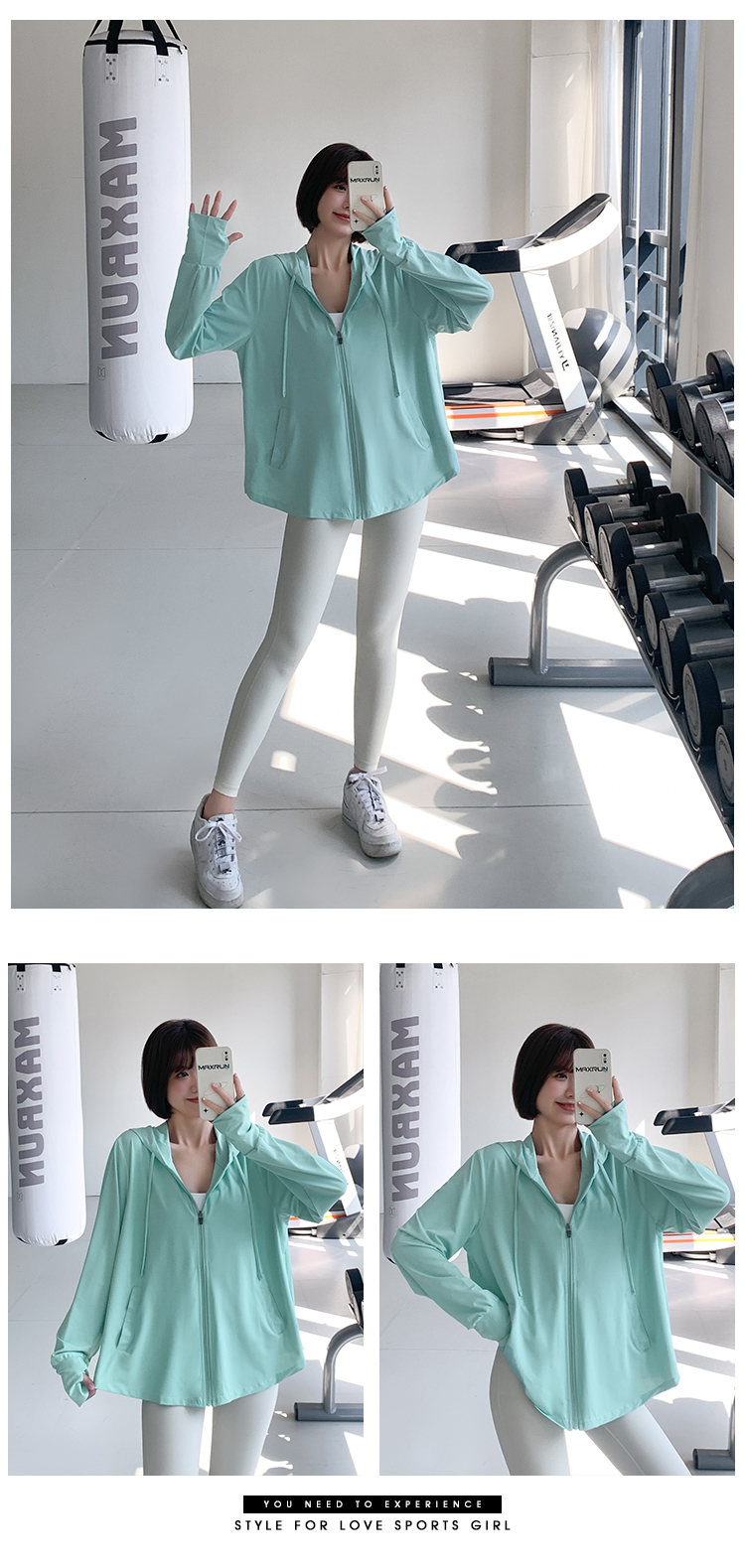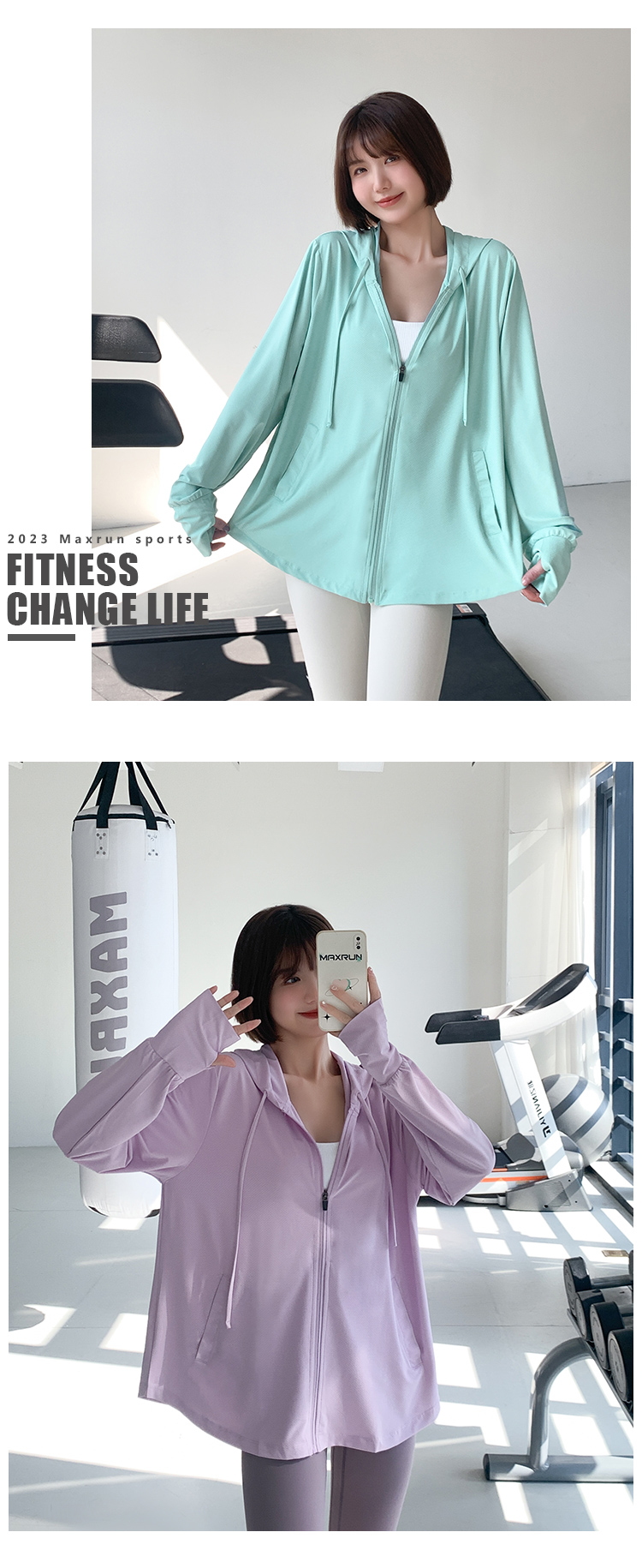 Maxrun Hooded Sports Jacket Women's Loose Running Cover-Up Large Size Fitness Wear Quick-Drying Top Long-Sleeved Sun Protection Clothing