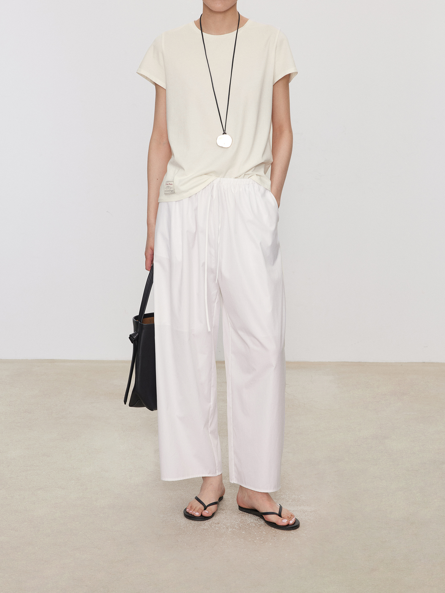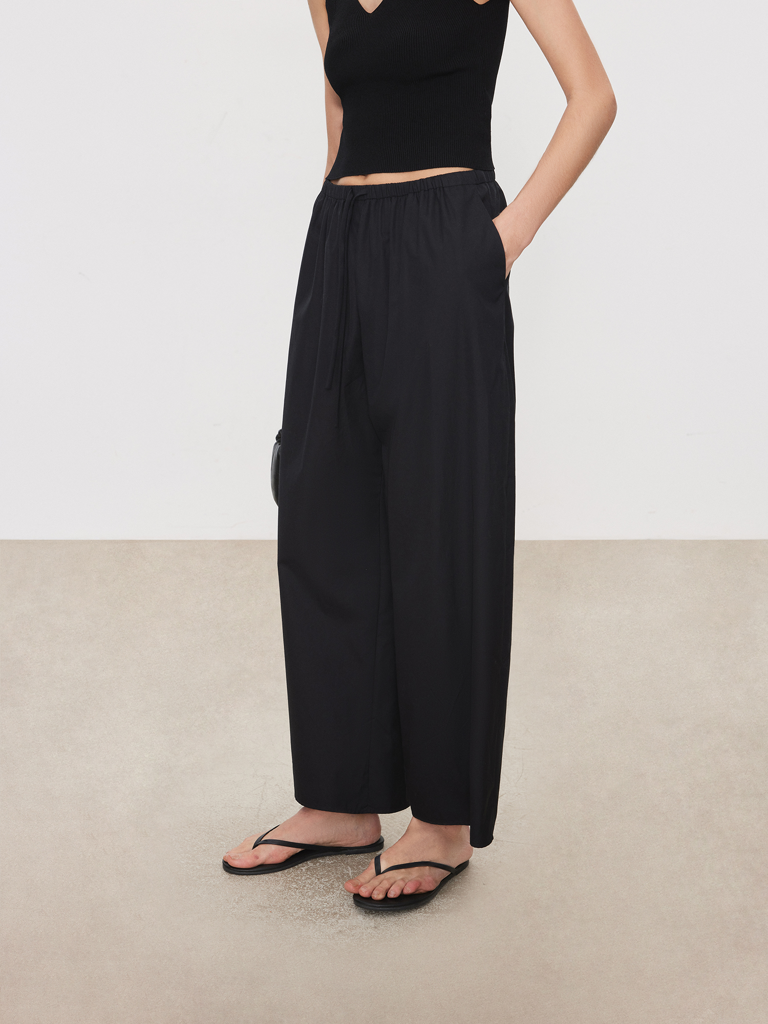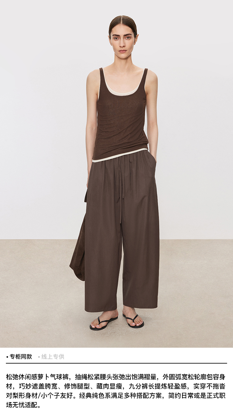 Chicjoc Nine-Point Length Walking Pants_ Lightweight Wrinkle-Resistant Supima Cotton Hip-Covering Slimming Elastic Waist Carrot Balloon Pants
