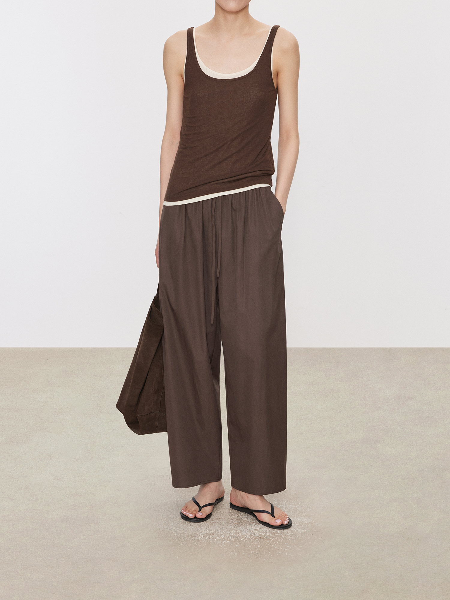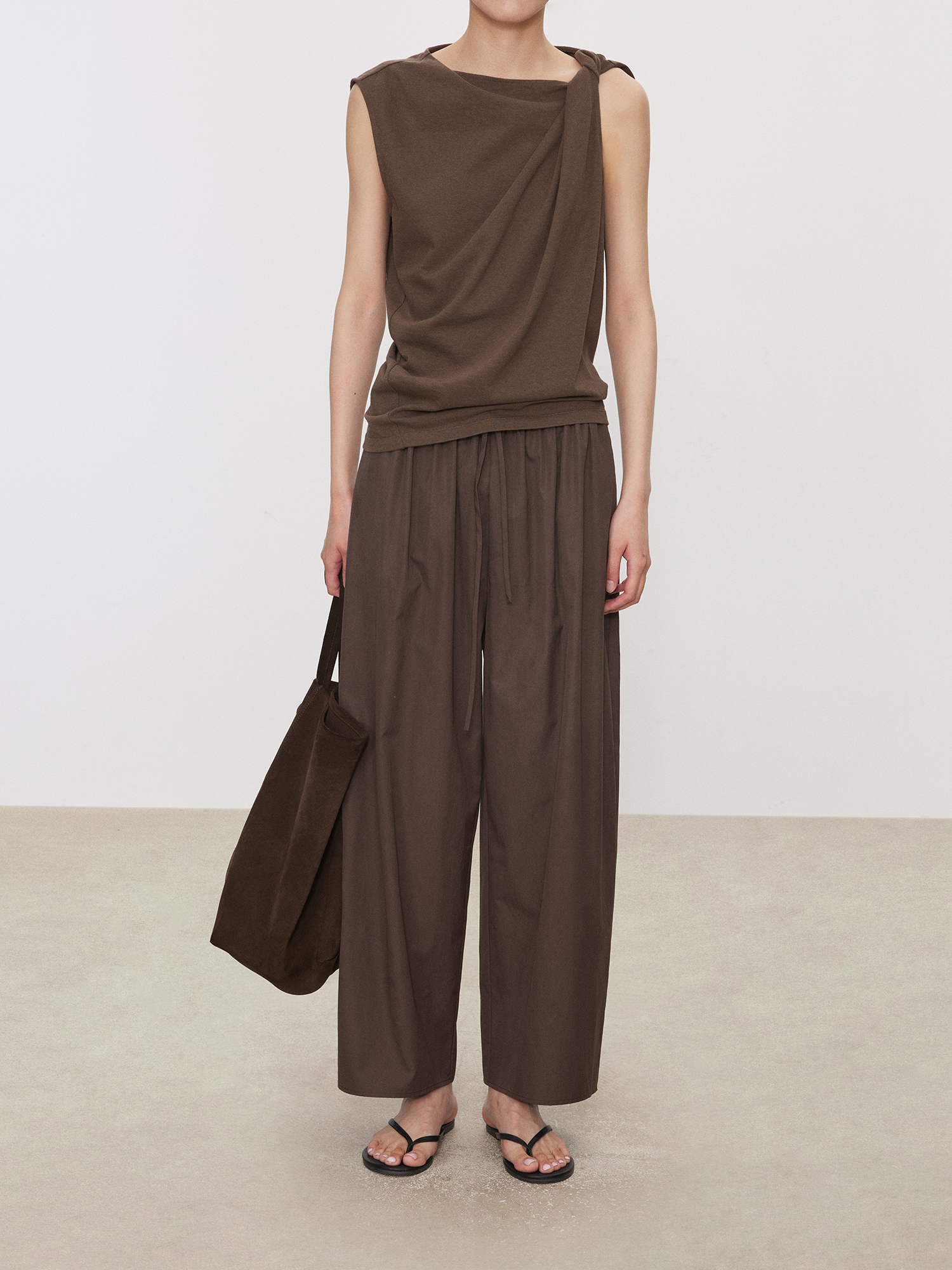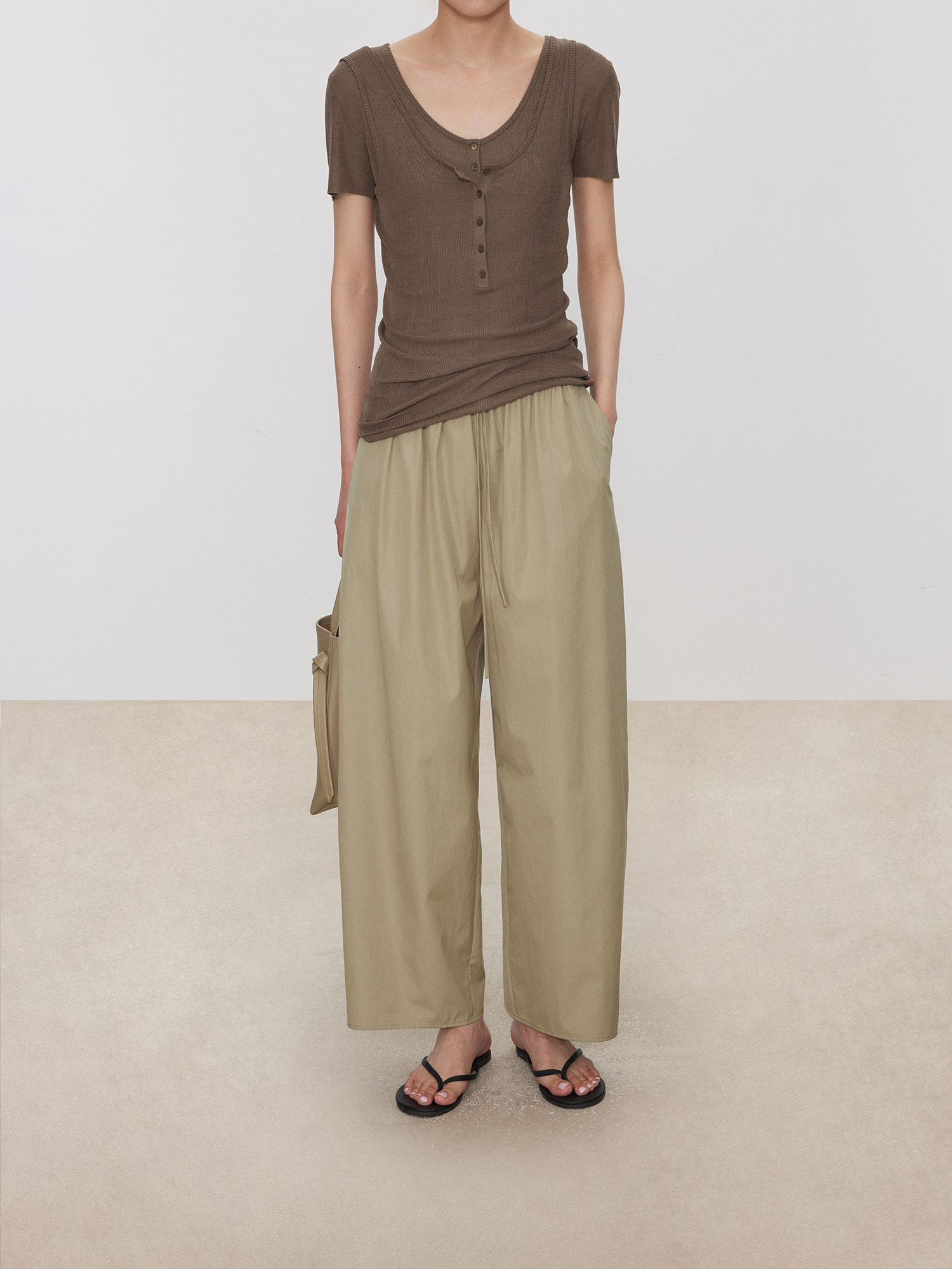 Chicjoc Nine-Point Length Walking Pants_ Lightweight Wrinkle-Resistant Supima Cotton Hip-Covering Slimming Elastic Waist Carrot Balloon Pants