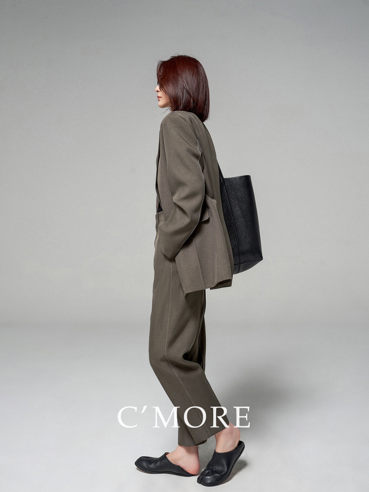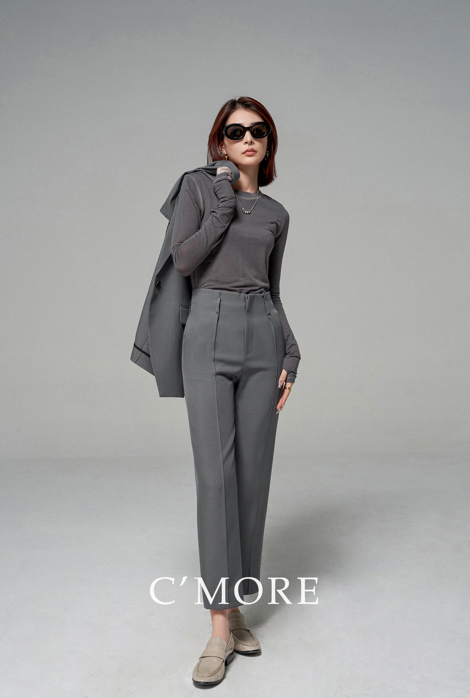 Cmore Spring and Autumn Japanese Toray Waltz Yarn Commuter Waist-Cinching Tapered Pants Cigarette Pants Suit Pants for Women