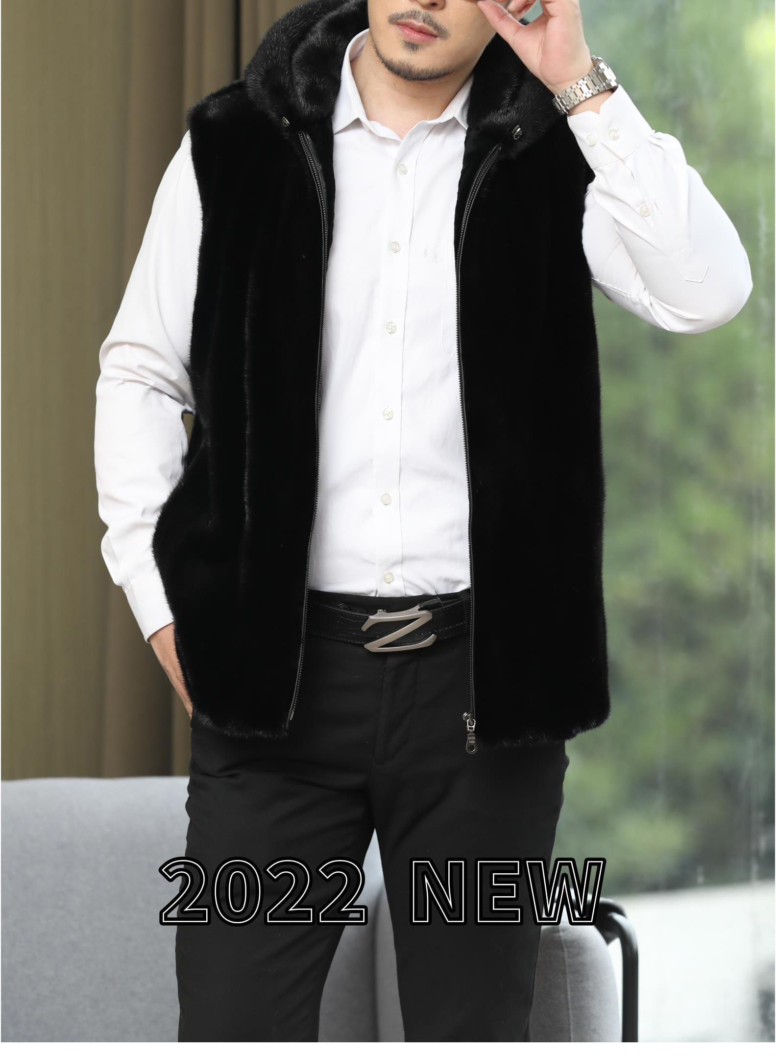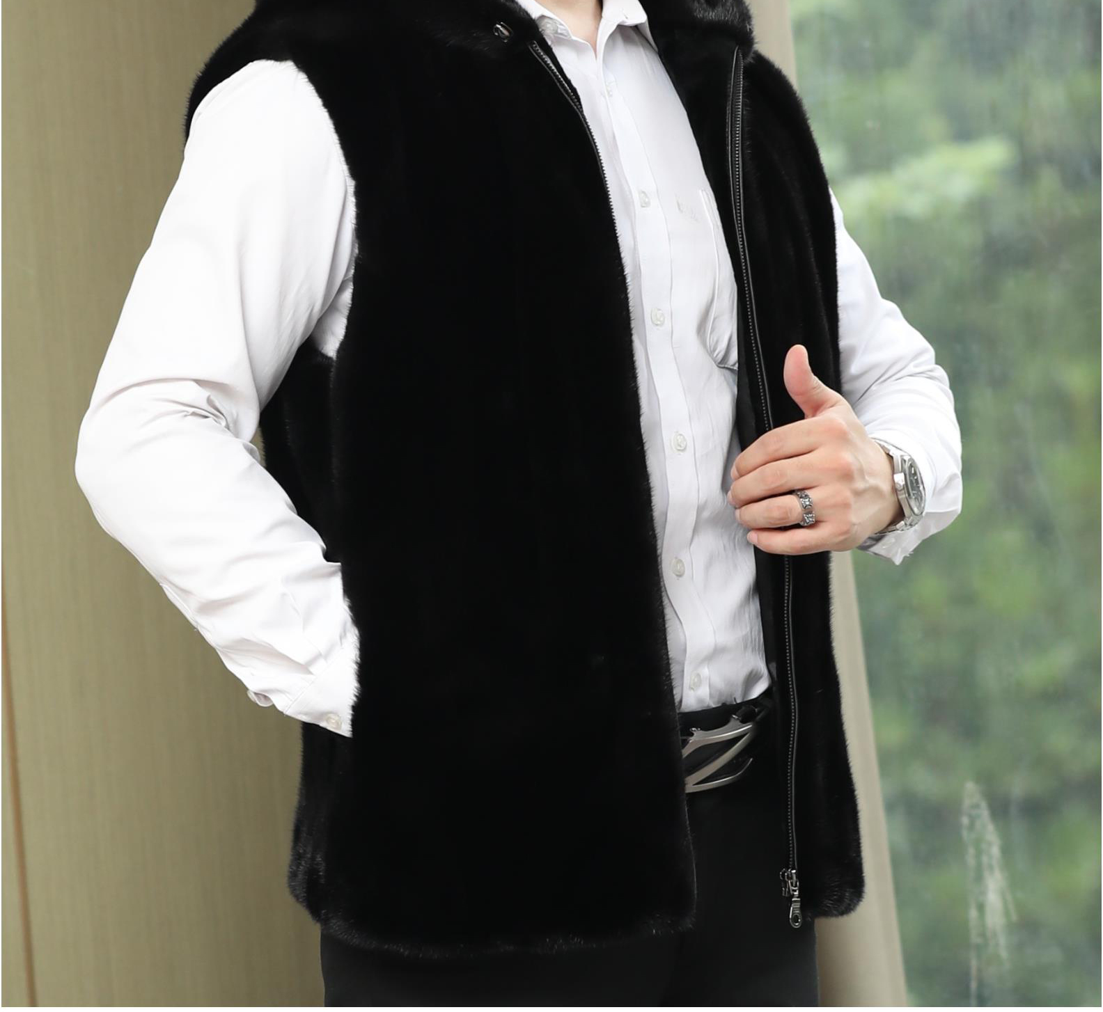 Mink Fur Vest for Men, New Fur Vest, Men's American Baojia Mei Vest, 2025 New Large Size Hooded Winter Vest
