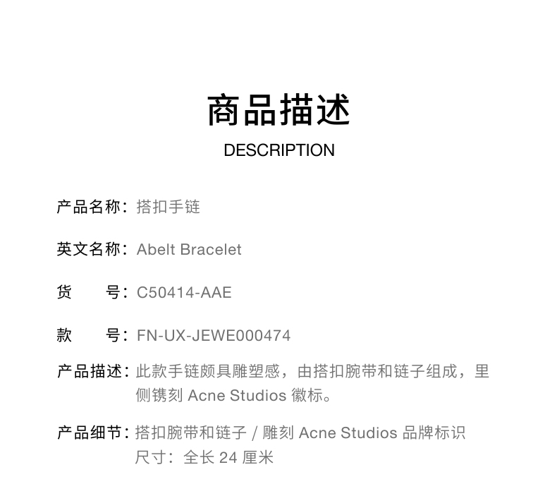 Acne Studios Unisex Retro Patchwork Sculptural Buckle Metal Bracelet Accessory Gift