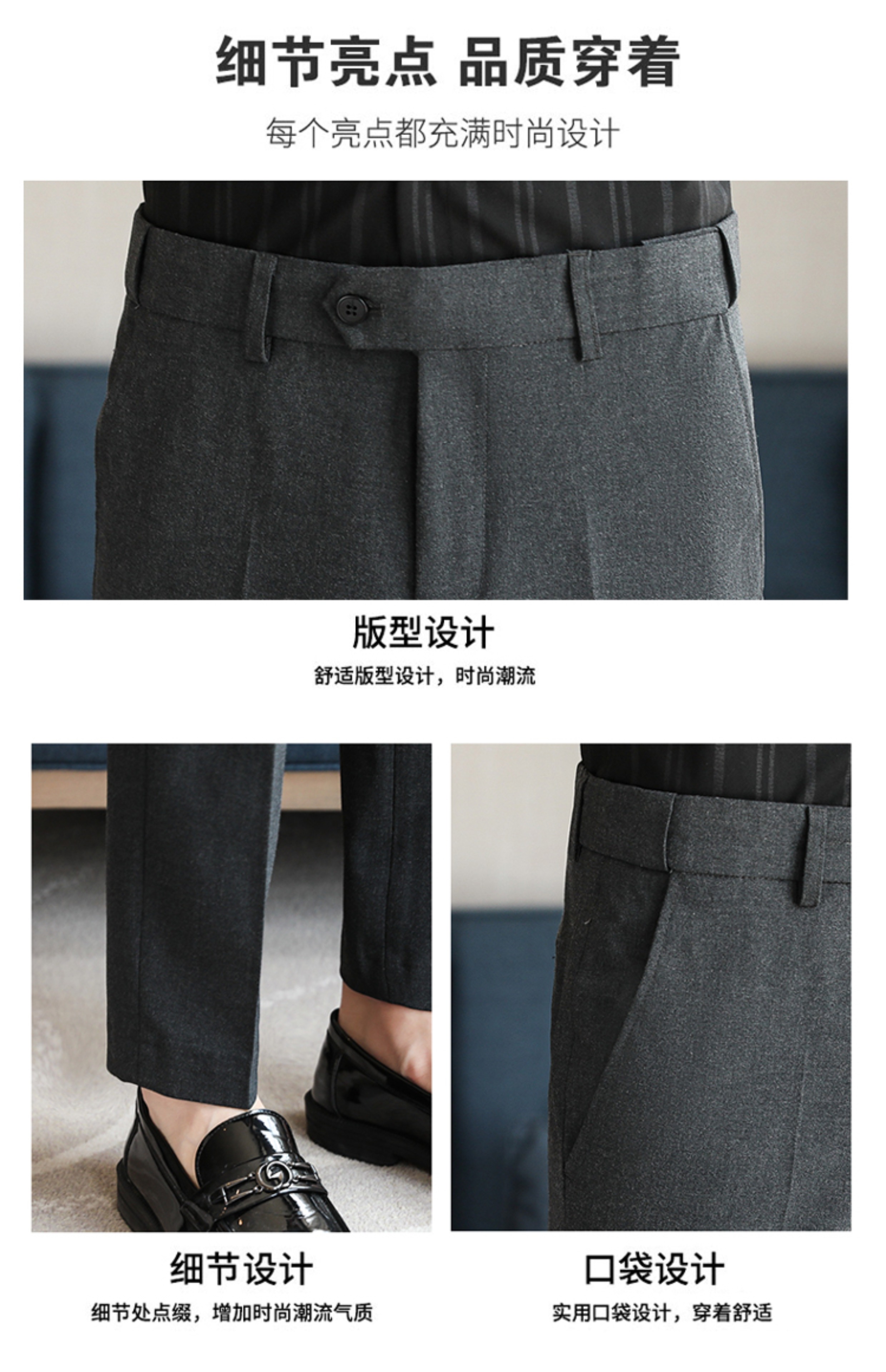 Elastic Waist Men's Dress Pants, Autumn and Winter Fleece-Lined Casual Trousers, High-End Slim Fit Tapered Business Formal Commuting Suit Pants